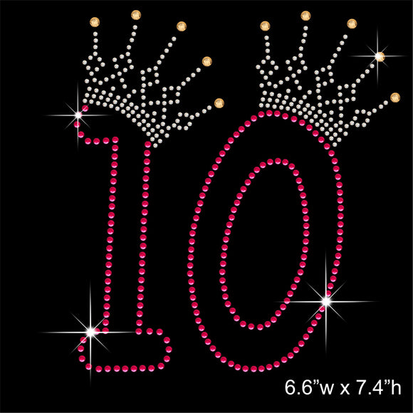 10 and Crown - Birthday Hotfix Rhinestone Transfer Diamante Motif, Iron on Applique