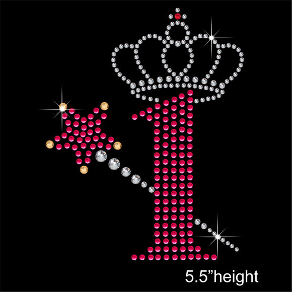 1 with Crown and Wand - Birthday Hotfix Rhinestone Transfer Diamante Motif, Iron on Applique