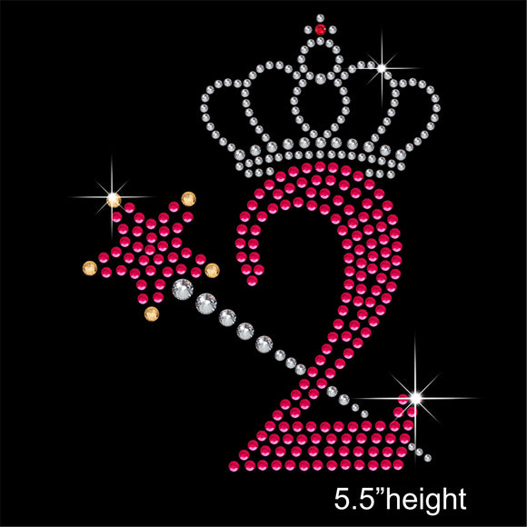 2 with Crown and Wand - Birthday Hotfix Rhinestone Transfer Diamante Motif, Iron on Applique