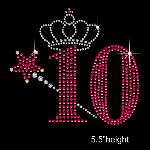 10 with Crown and Wand - Birthday Hotfix Rhinestone Transfer Diamante Motif, Iron on Applique