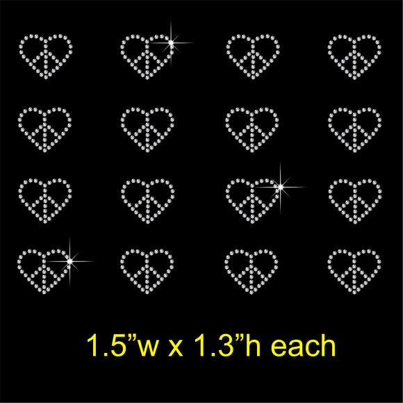 16 Small Love and Peace Hotfix Rhinestone Transfer Diamante Motif, Iron-on Applique