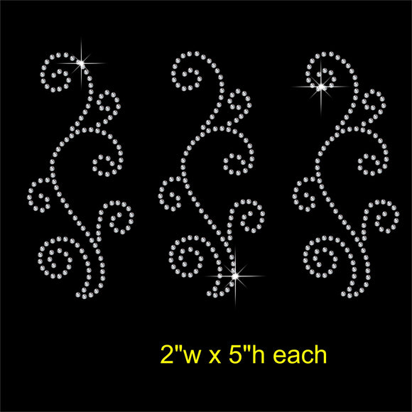 3 x Swirl Hotfix Rhinestone Transfer Diamante Motif, Iron-on Applique
