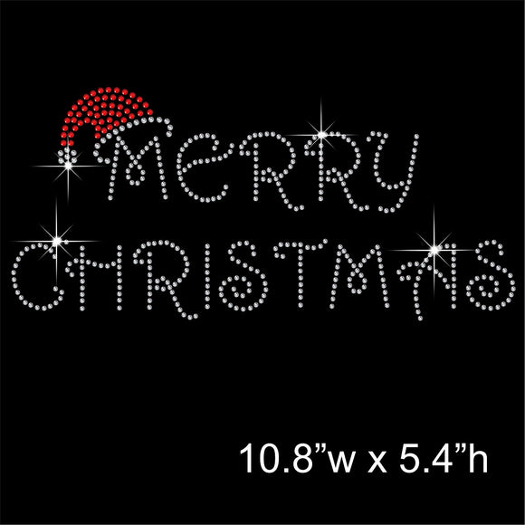 Merry Christmas Hotfix Rhinestone Transfer Diamante Motif, Iron-on Applique