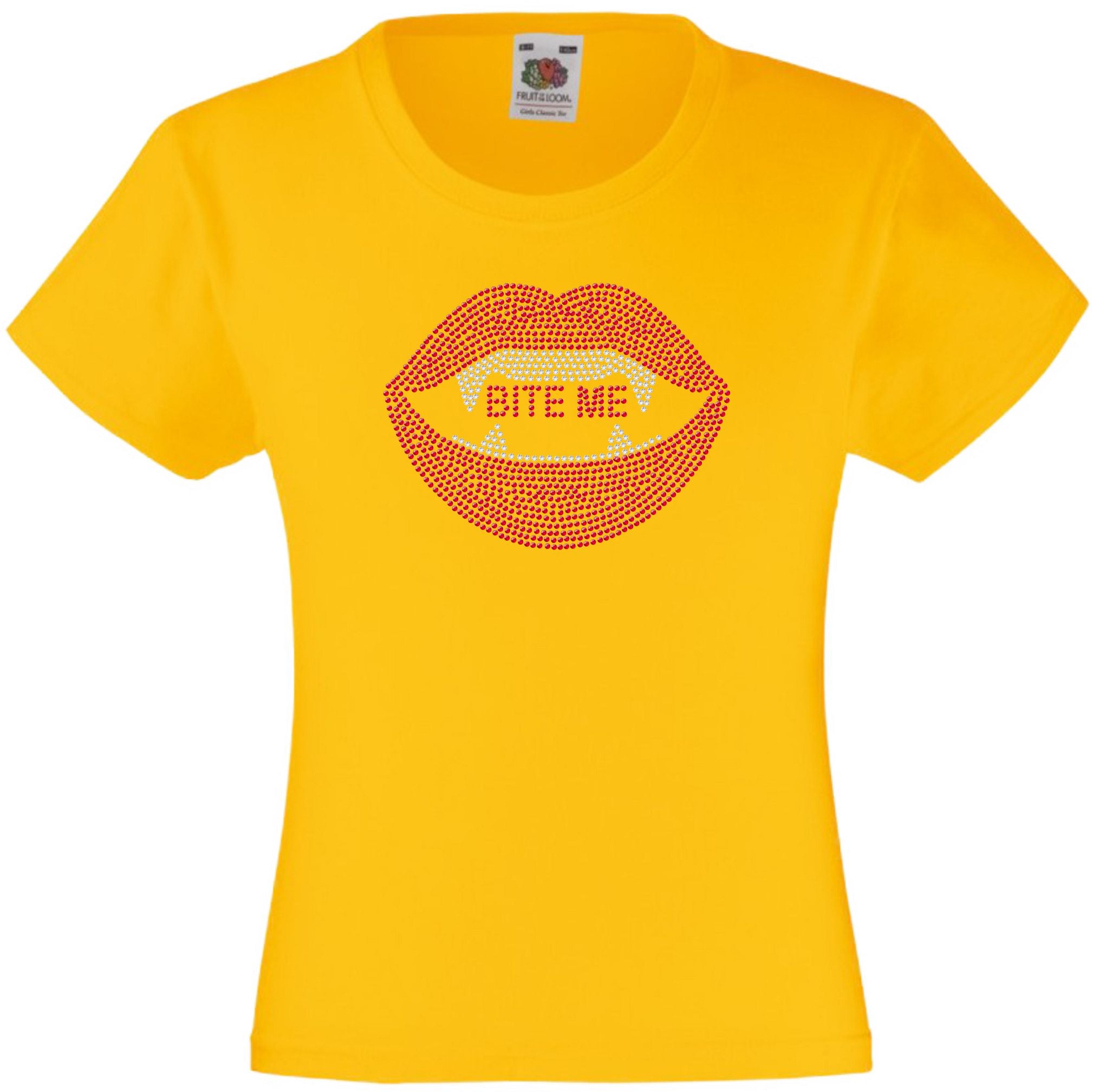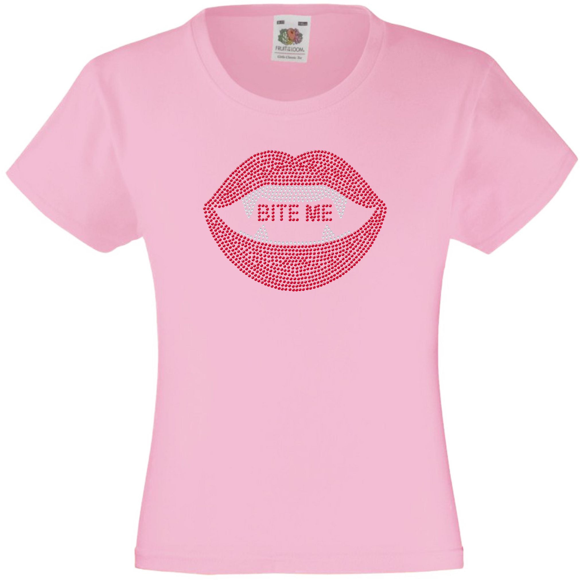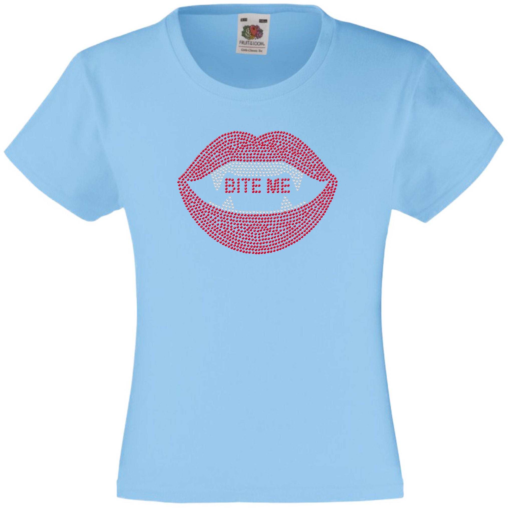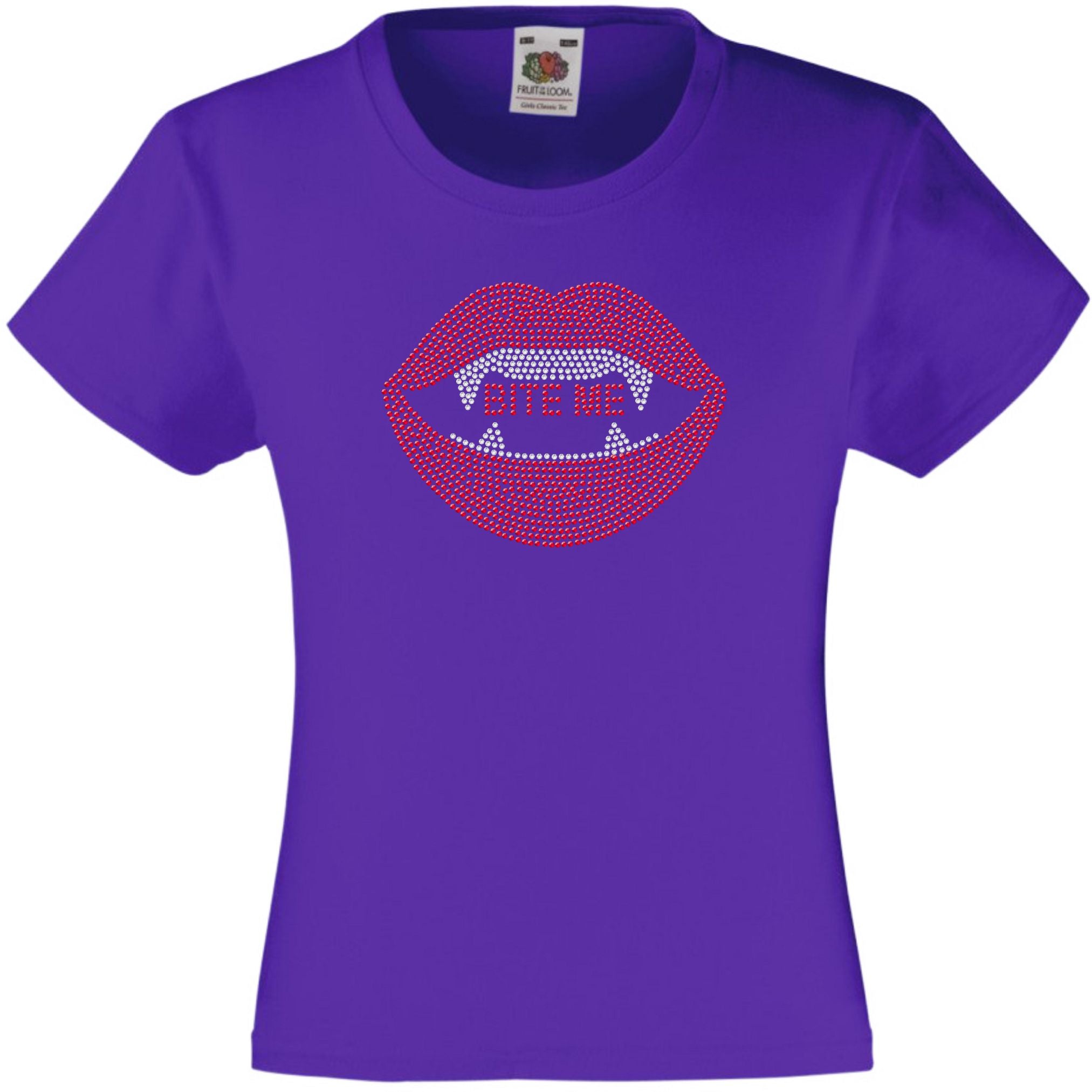 BITE ME LIPS HALLOWEEN SCARY RHINESTONE EMBELLISHED T-SHIRT ELEGANT GIFT FOR GIRLS