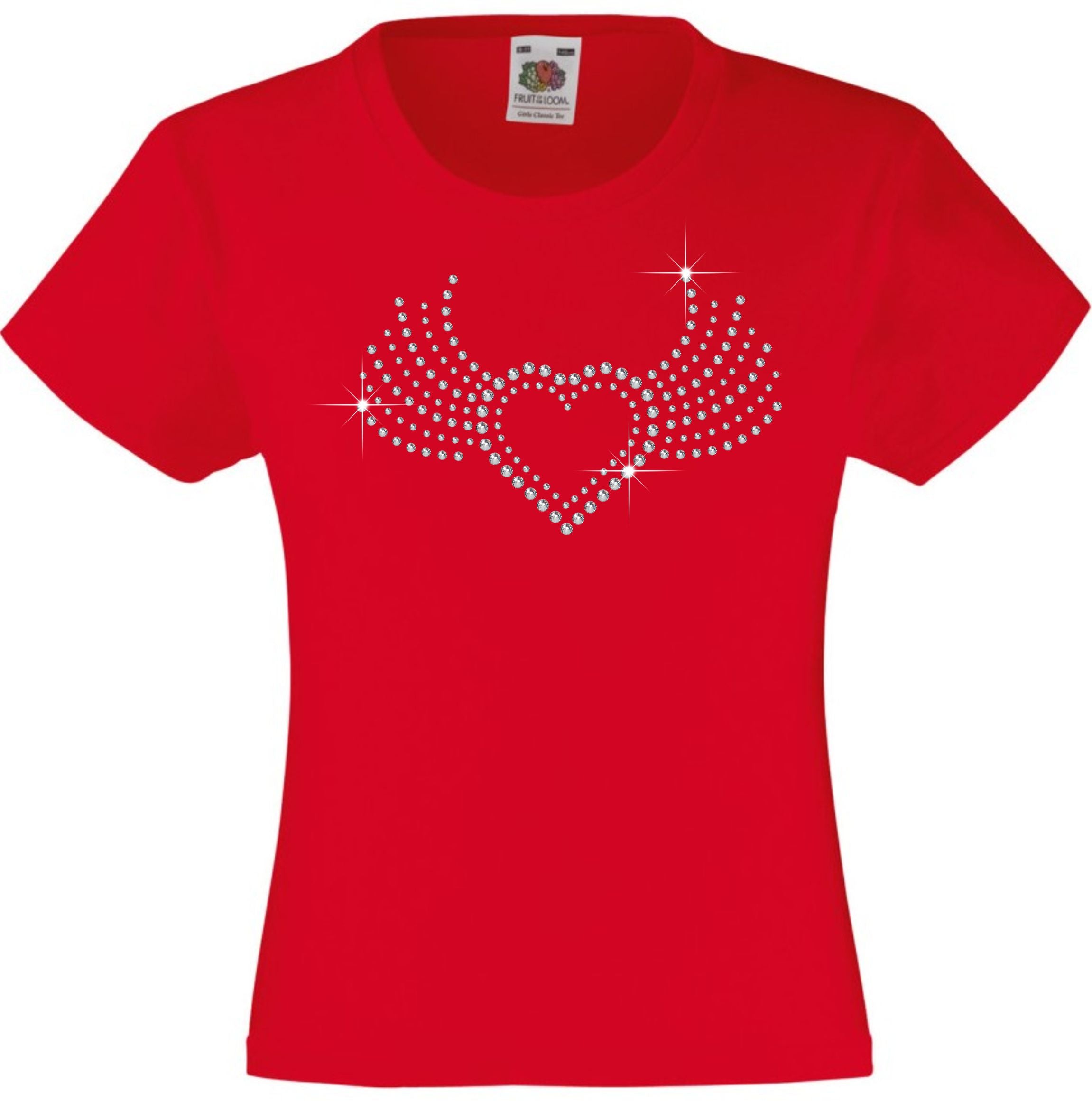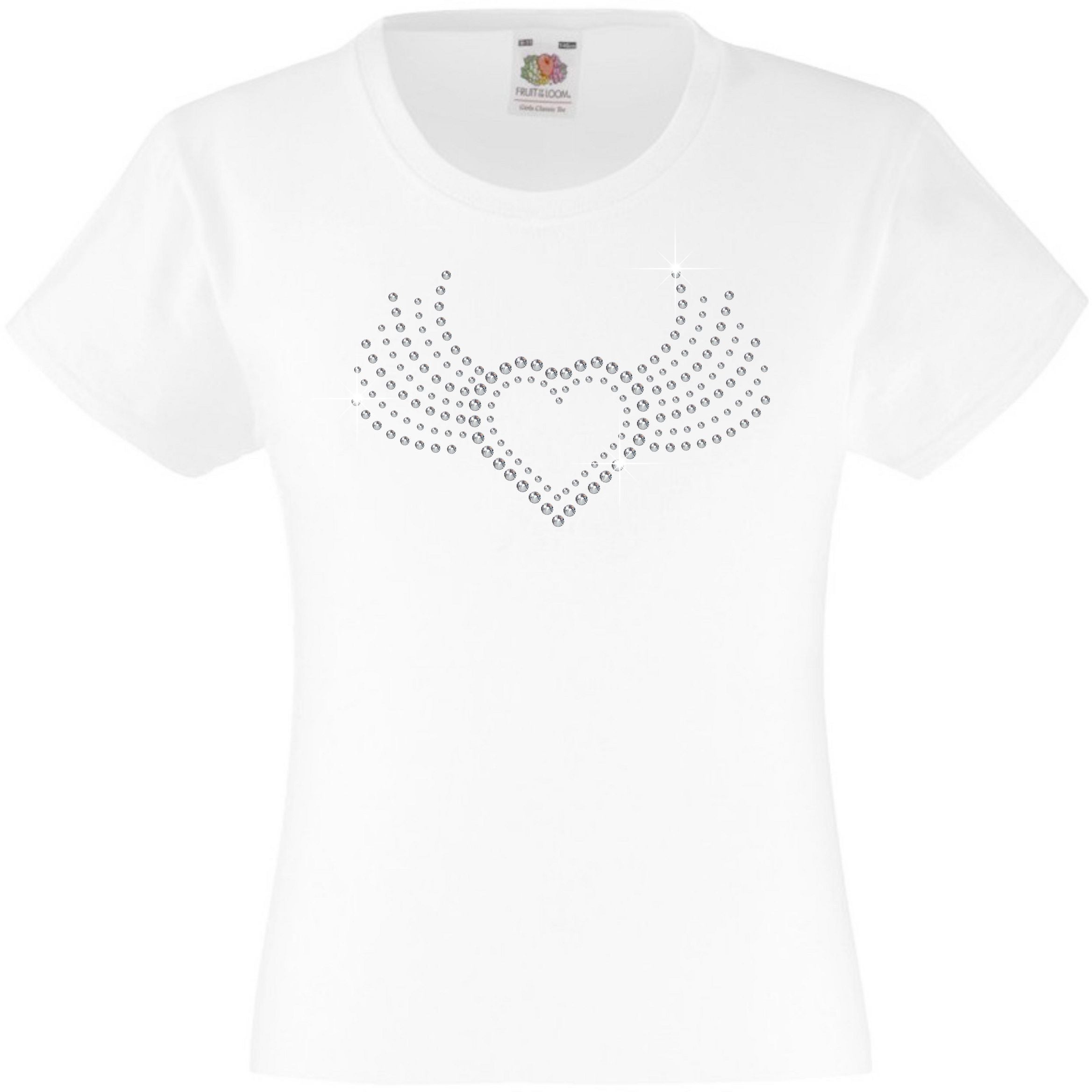 HEART WITH WINGS RHINESTONE EMBELLISHED T-SHIRT ELEGANT GIFT FOR GIRLS