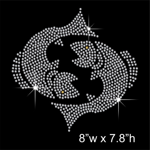 Pisces Zodiac Sign Hotfix Rhinestone Transfer Diamante Motif, Iron-on Applique