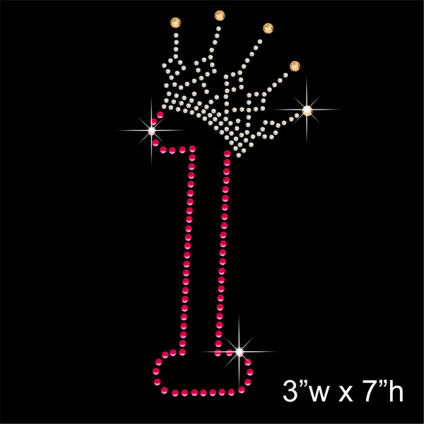 1 and Crown - Birthday Hotfix Rhinestone Diamante Motif, Iron on Applique