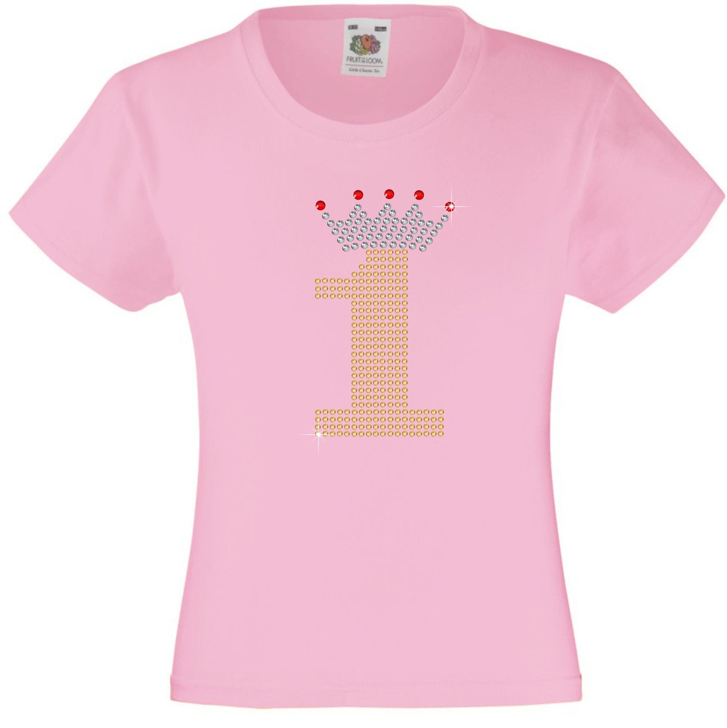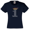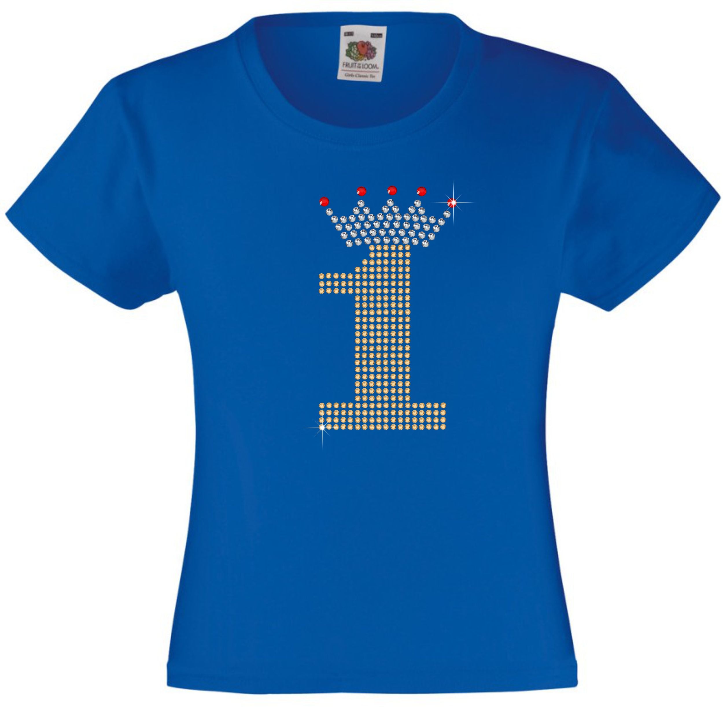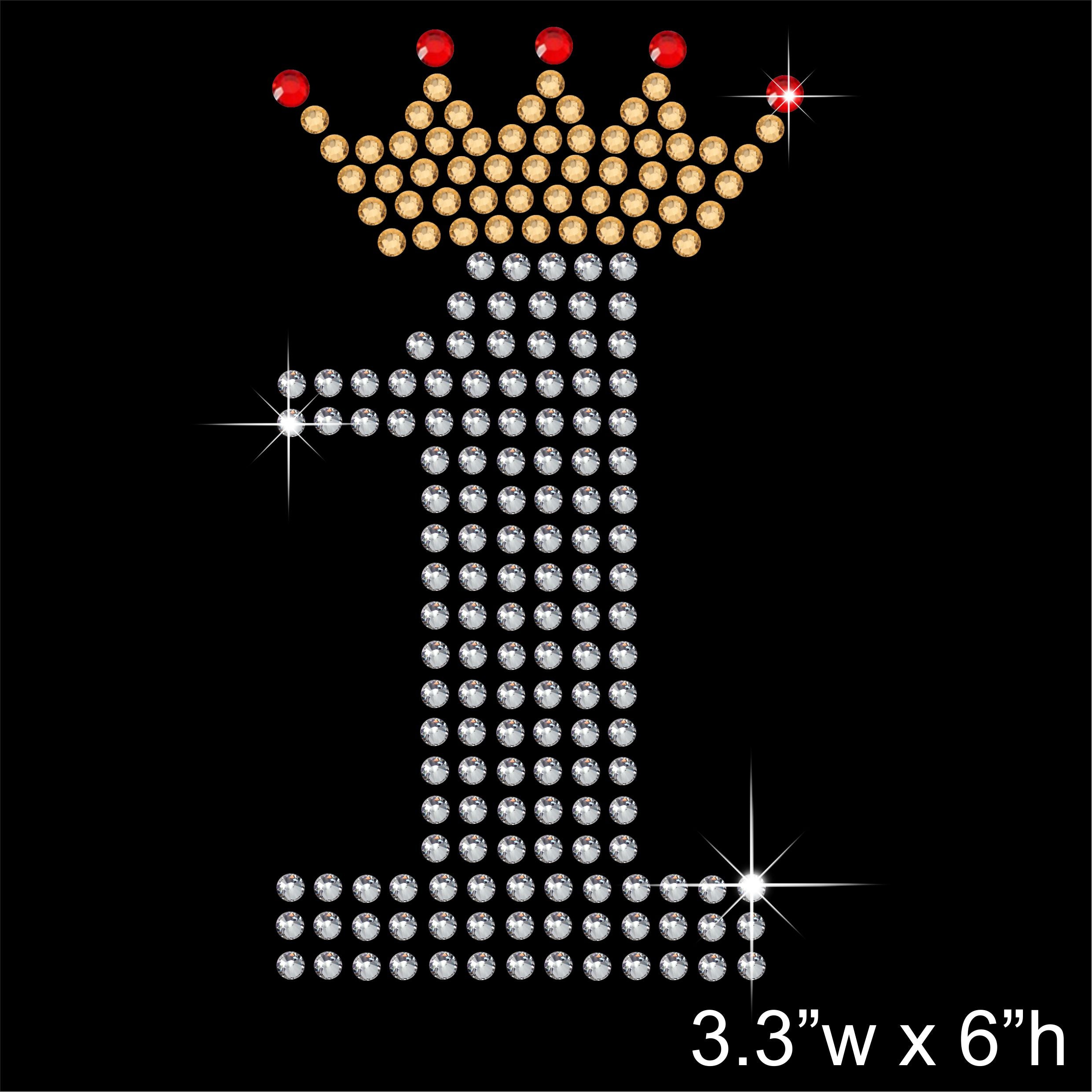 1 with Crown - Birthday Hotfix Rhinestone Transfer Diamante Motif, Iron on Applique