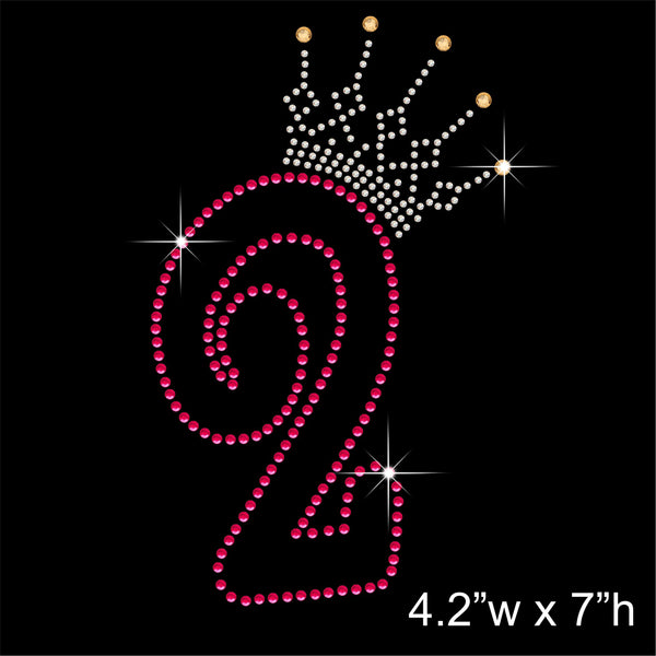 2 and Crown - Birthday Hotfix Rhinestone Transfer Diamante Motif, Iron on Applique