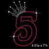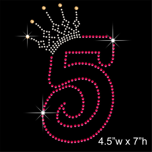 5 and Crown - Birthday Hotfix Rhinestone Transfer Diamante Motif, Iron on Applique