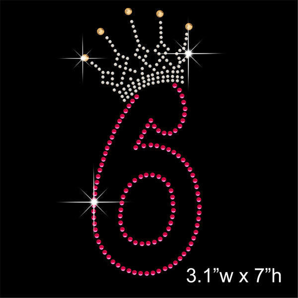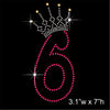 6 and Crown - Birthday Hotfix Rhinestone Transfer Diamante Motif, Iron on Applique