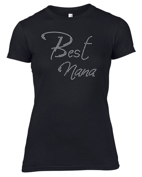 BEST NANA RHINESTONE EMBELLISHED HEN DO PARTY T-SHIRT FOR LADIES