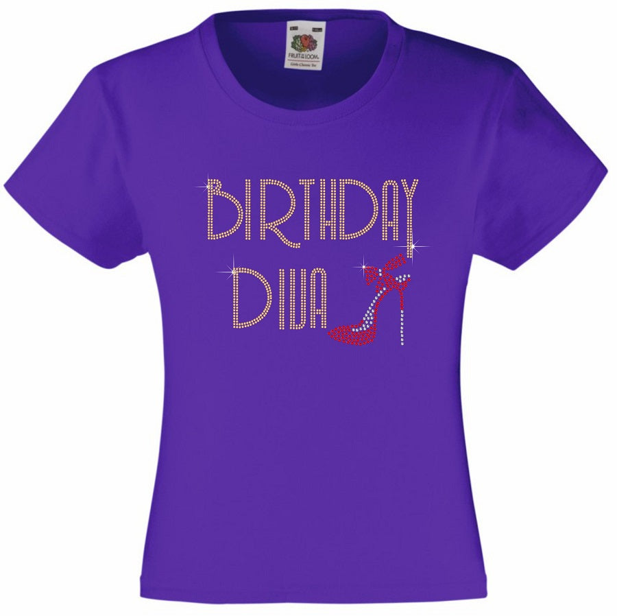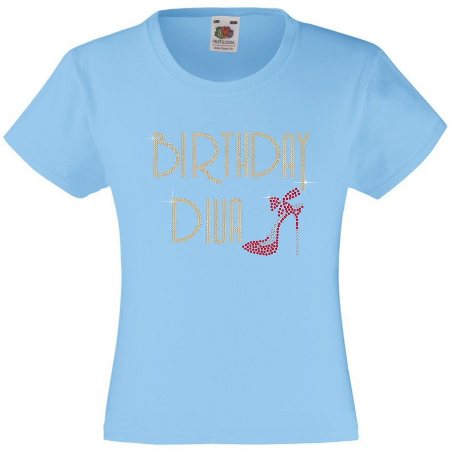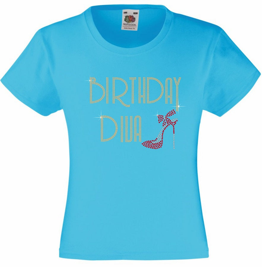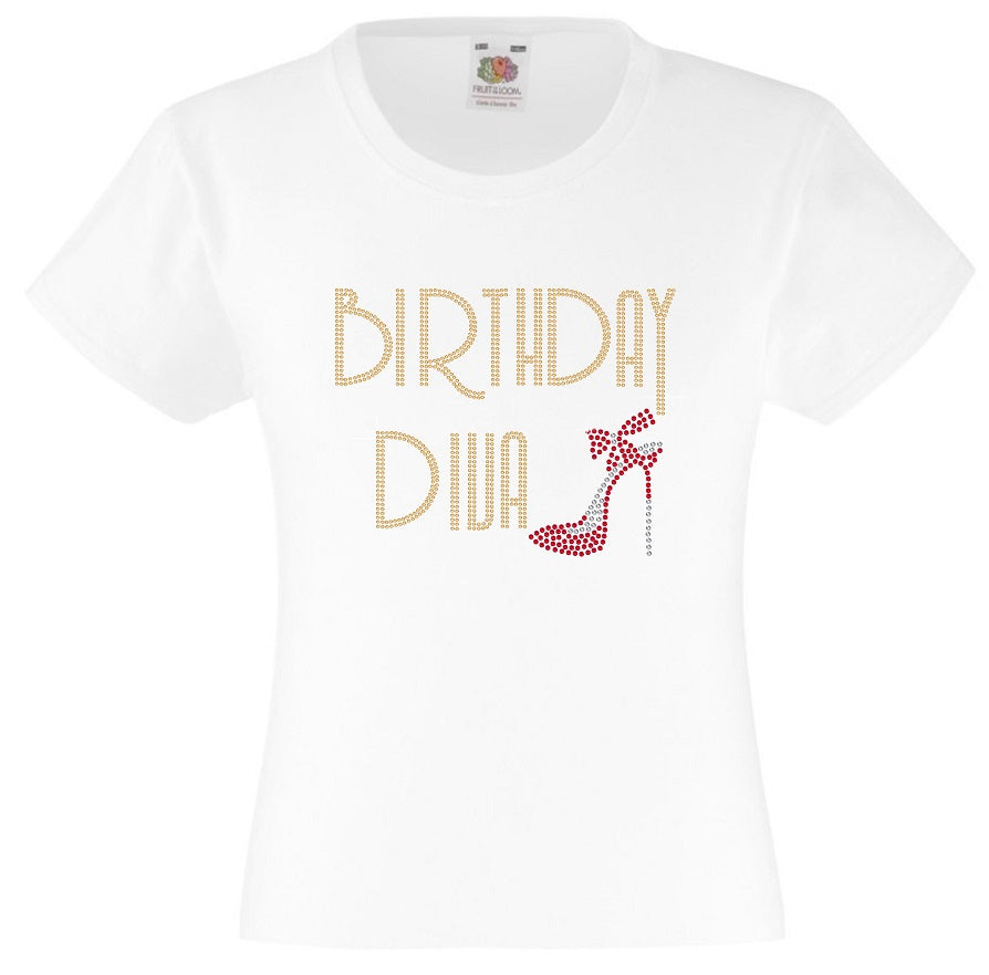 BIRTHDAY DIVA GIRLS T SHIRT RHINESTONE EMBELLISHED BIRTHDAY T SHIRT ELEGANT GIFT FOR THEIR BIG DAY