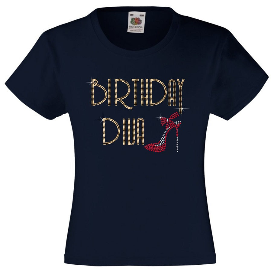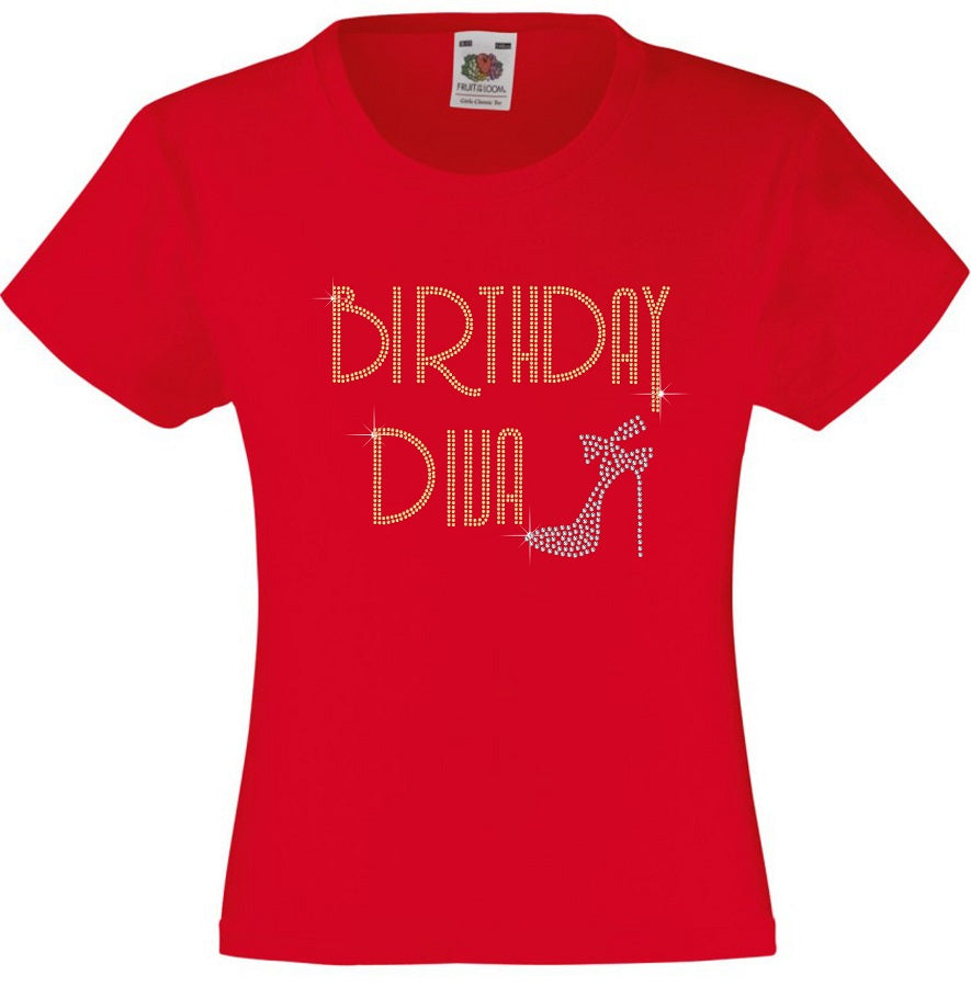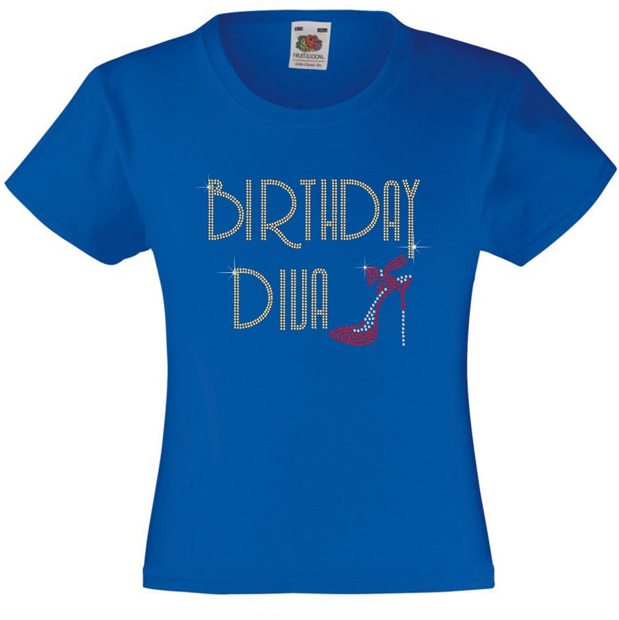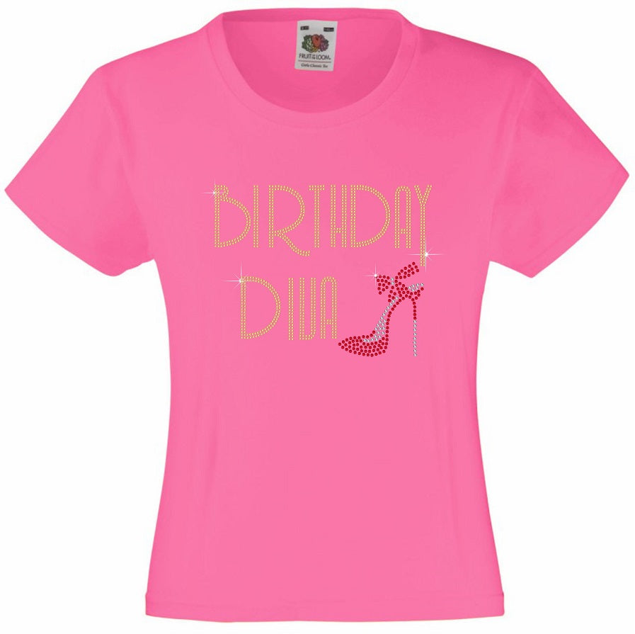 BIRTHDAY DIVA GIRLS T SHIRT RHINESTONE EMBELLISHED BIRTHDAY T SHIRT ELEGANT GIFT FOR THEIR BIG DAY
