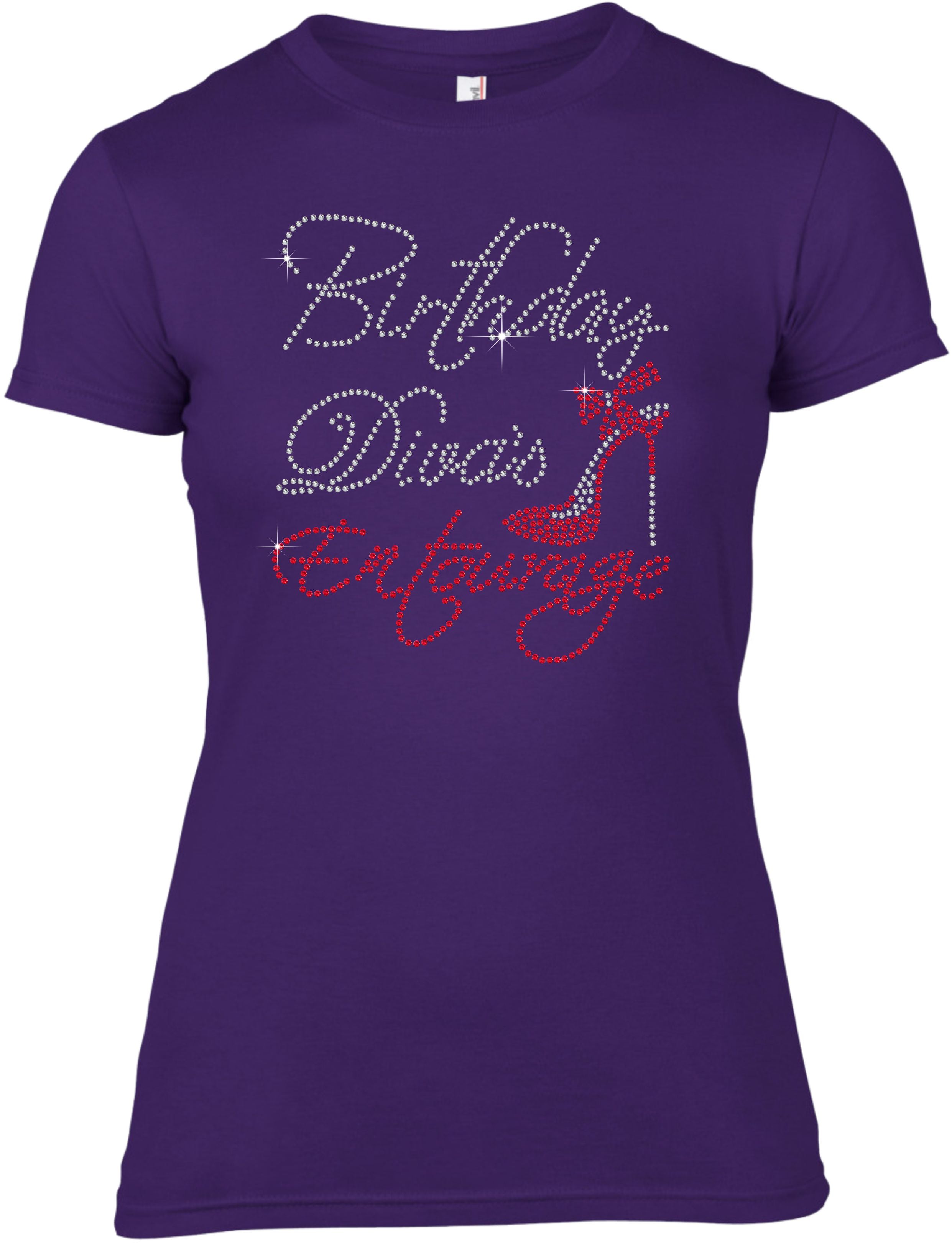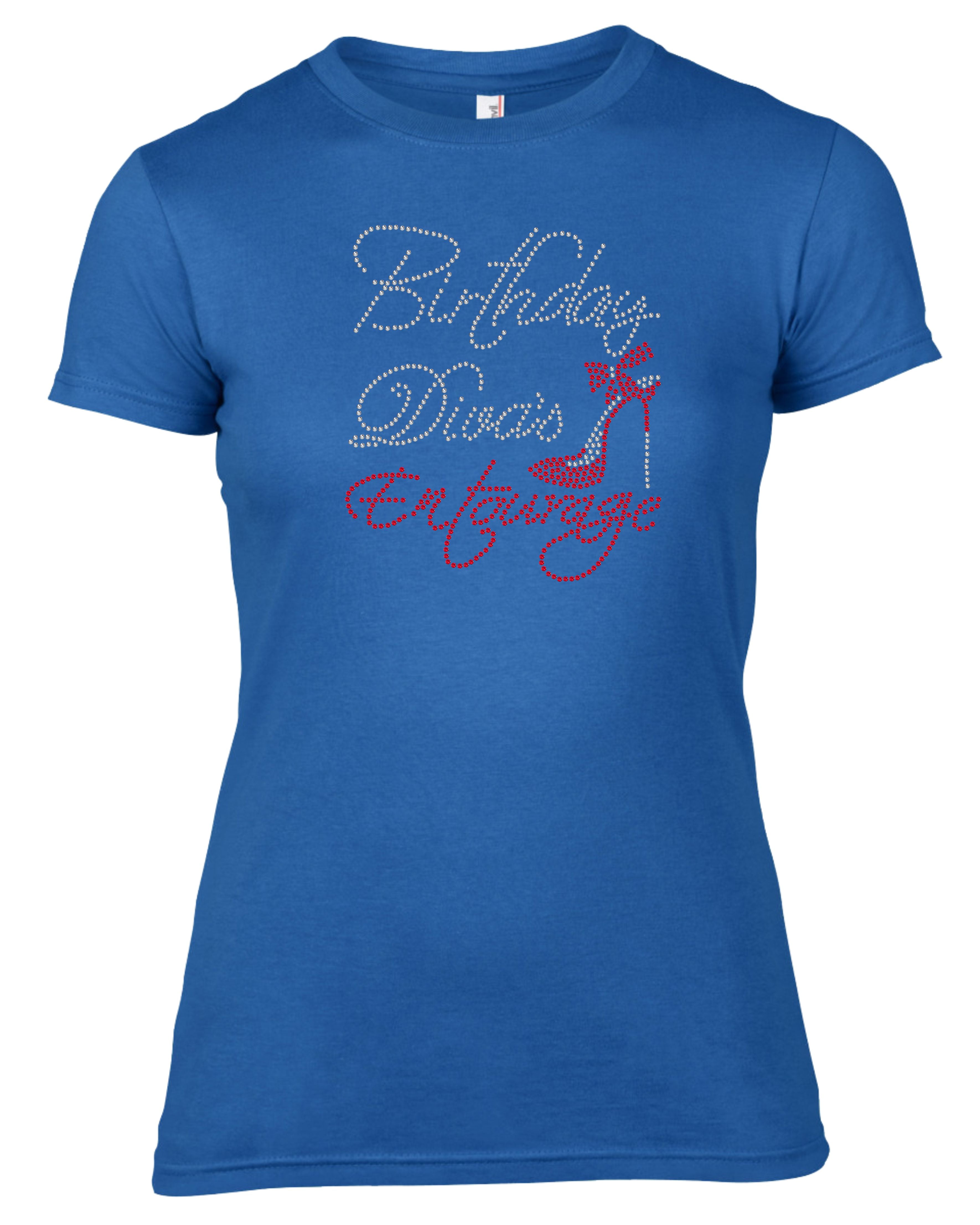 BIRTHDAY DIVA'S ENTOURAGE RHINESTONE EMBELLISHED T-SHIRT FOR LADIES