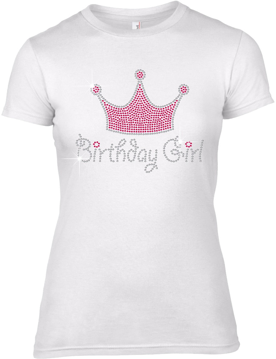 BIRTHDAY GIRL AND TIARA RHINESTONE EMBELLISHED T-SHIRT FOR LADIES