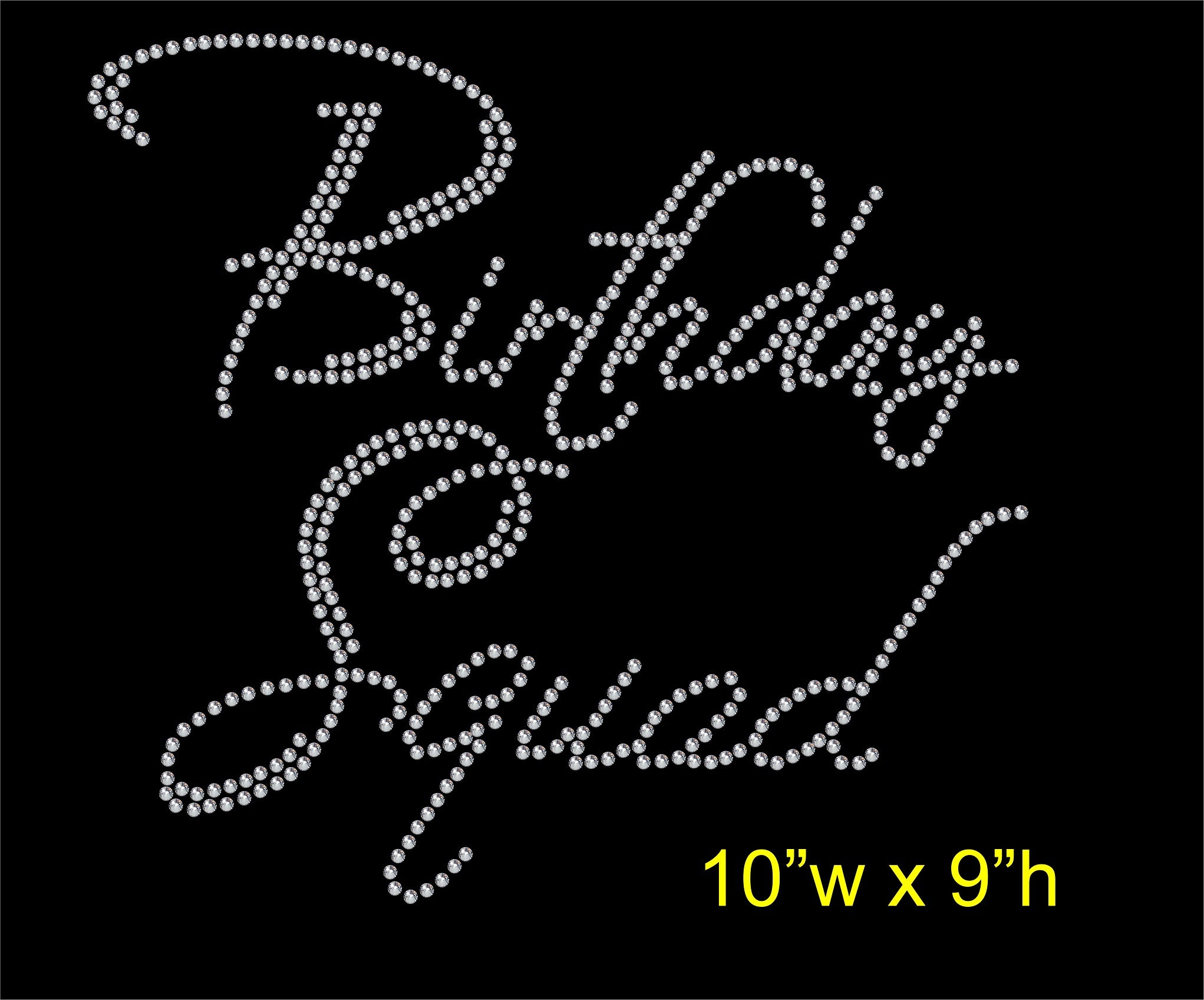 Birthday Squad Hotfix Rhinestone Transfer Diamante Motif Iron on Applique