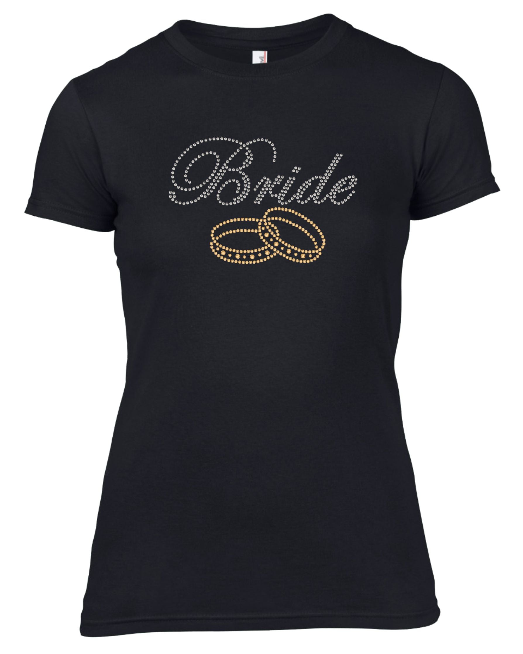 BRIDE AND BANGLES RHINESTONE EMBELLISHED HEN STAG DO PARTY T-SHIRT FOR LADIES