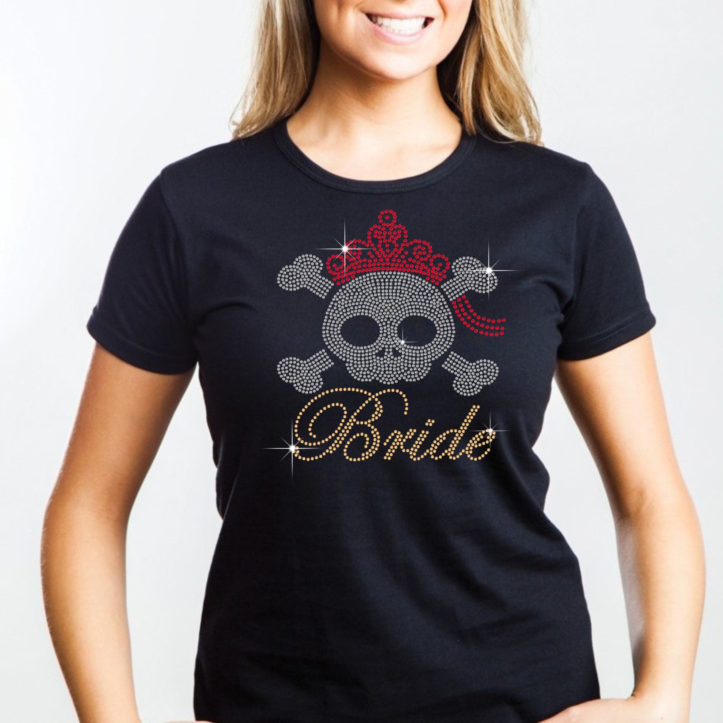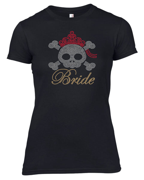 BRIDE AND SKULL RHINESTONE EMBELLISHED HEN STAG DO PARTY T-SHIRT FOR LADIES