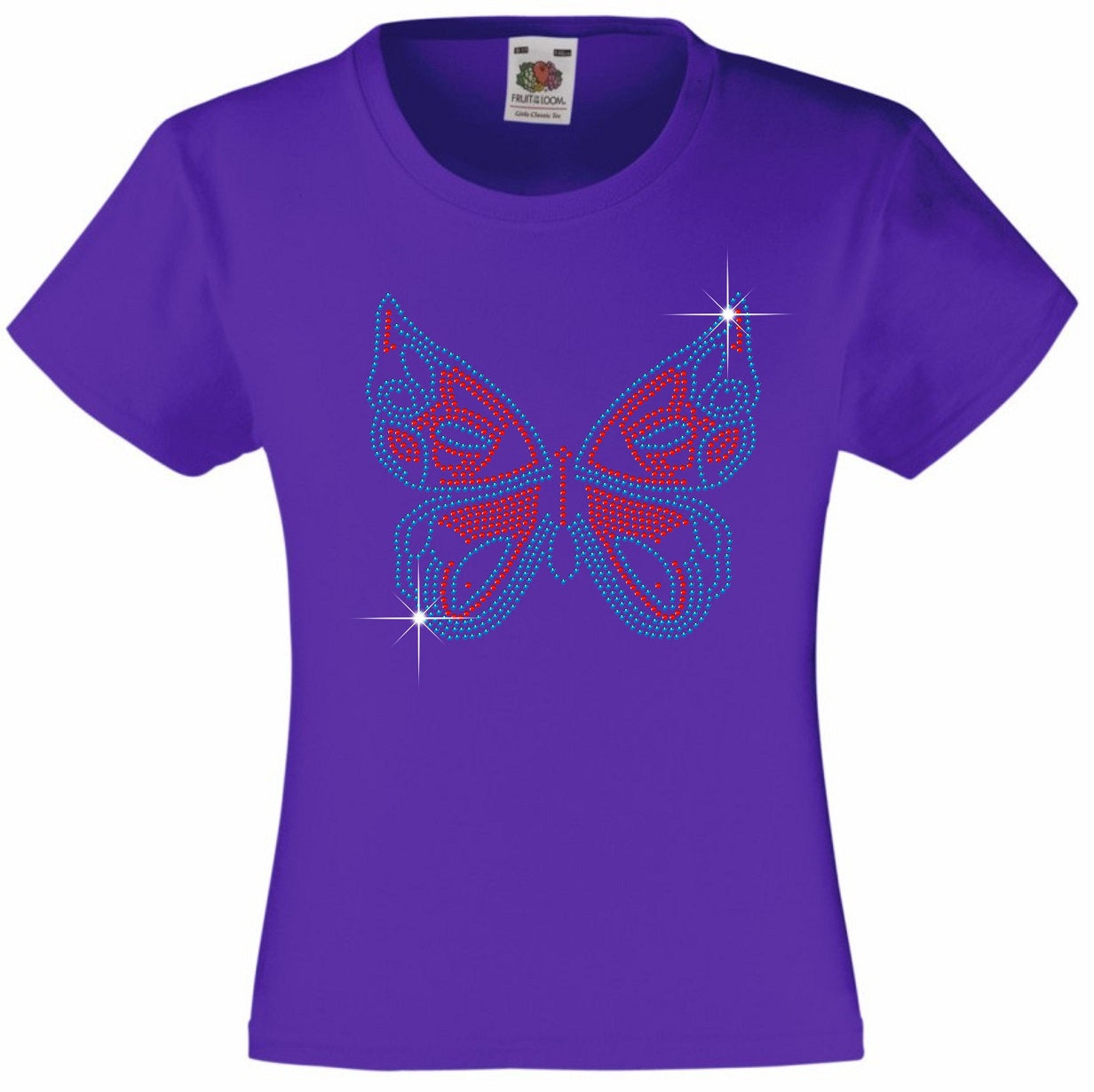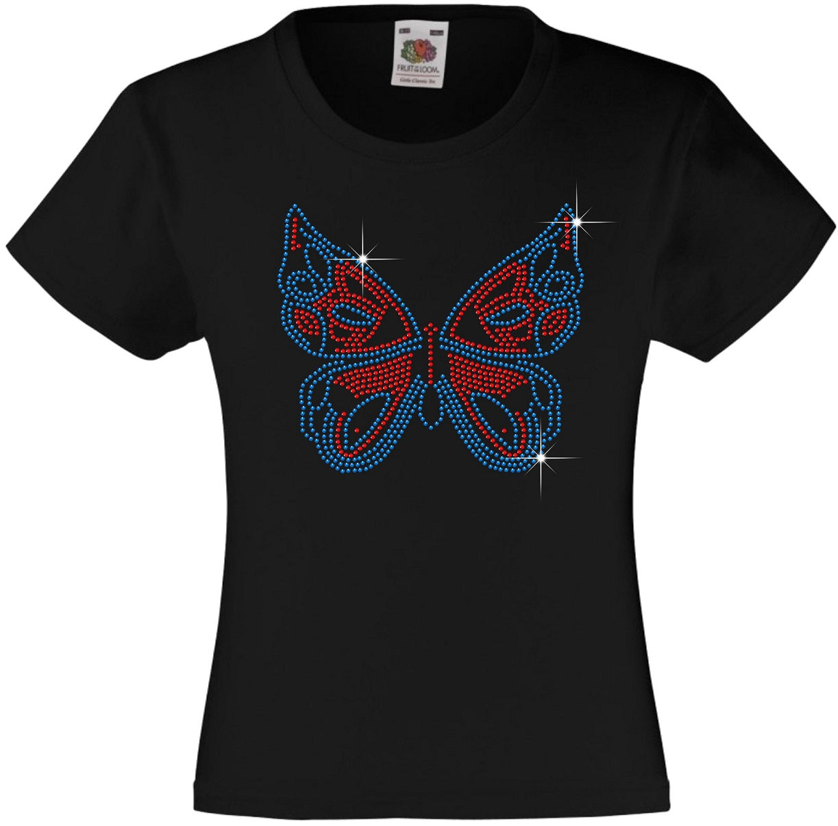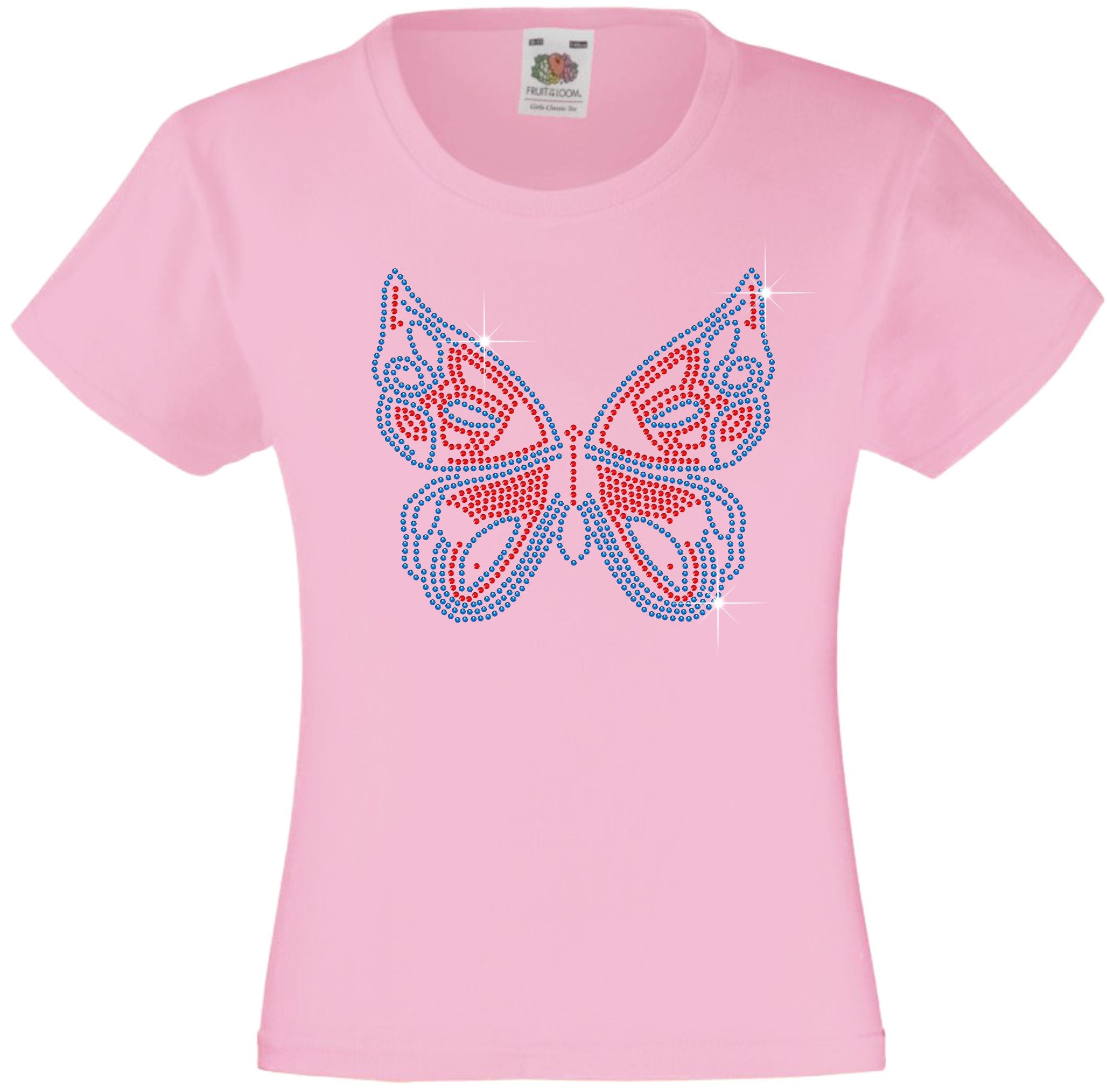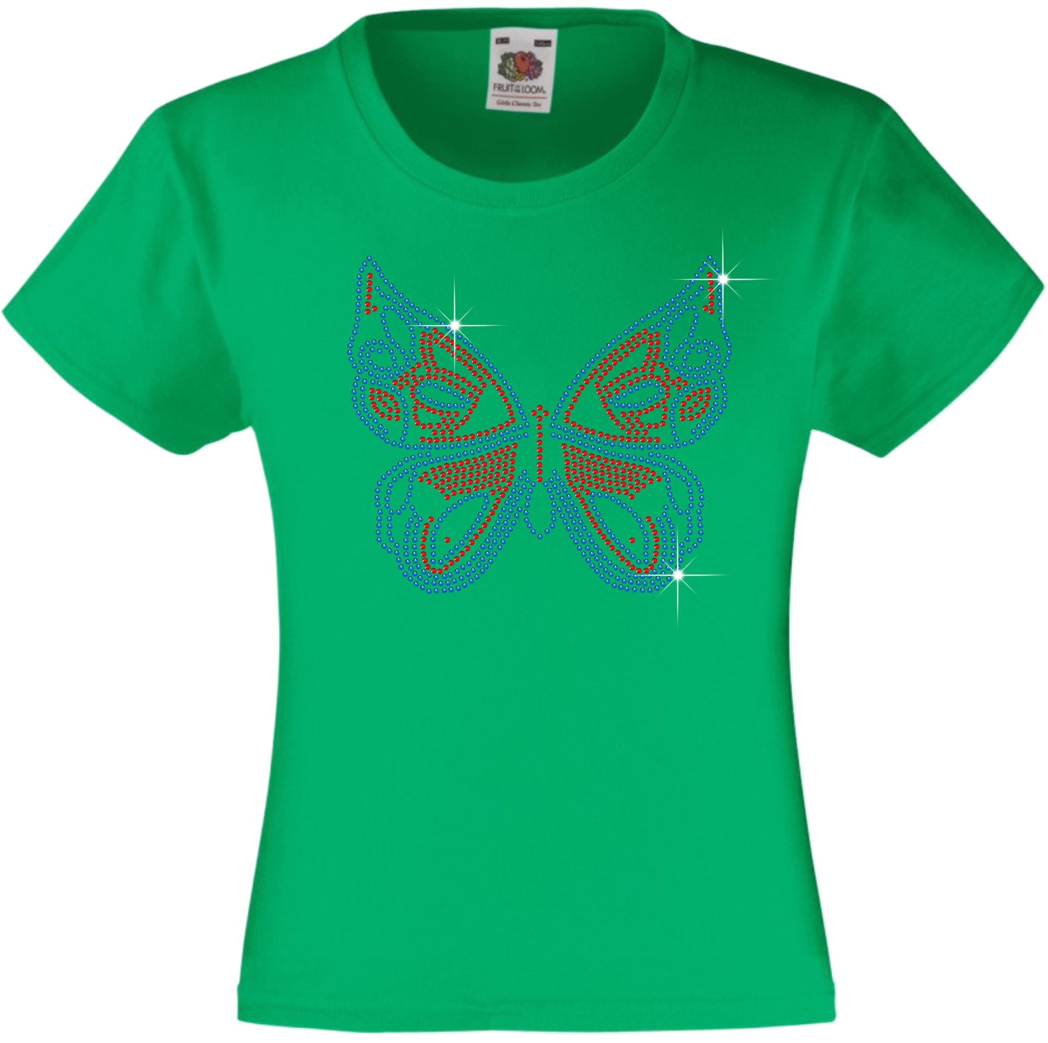 BUTTERFLY GIRLS' T SHIRT RHINESTONE EMBELLISHED T-SHIRT ELEGANT GIFT FOR ANIMAL LOVING GIRLS