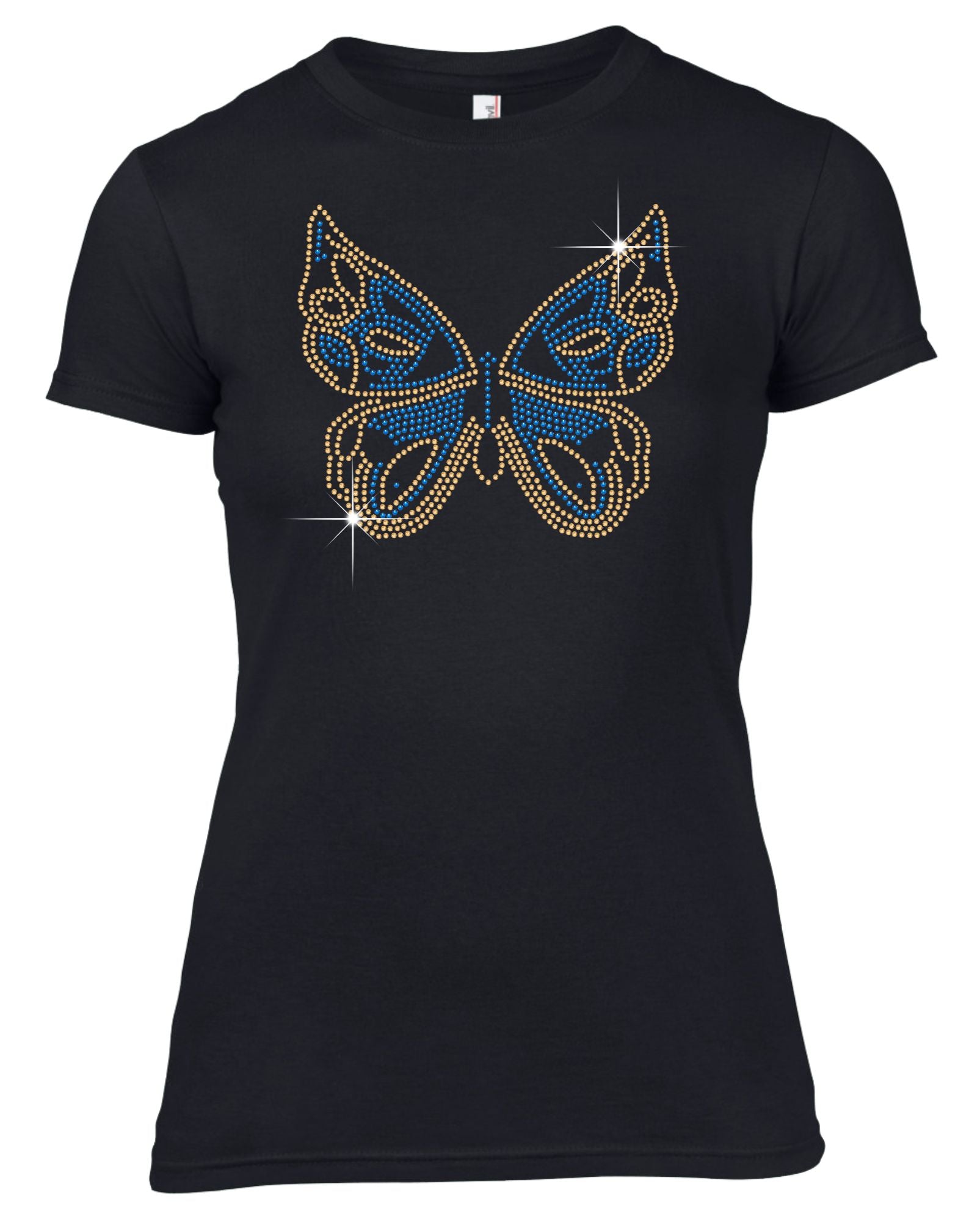 BUTTERFLY RHINESTONE EMBELLISHED T SHIRT FOR LADIES