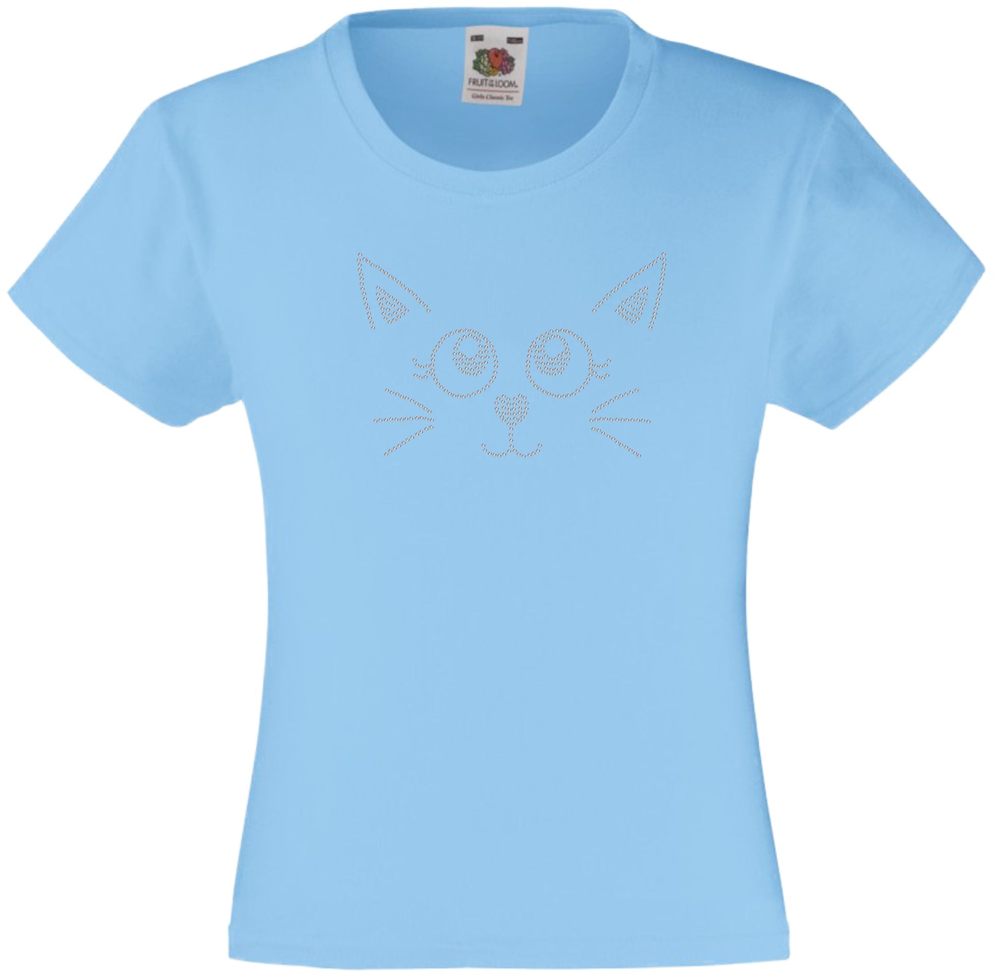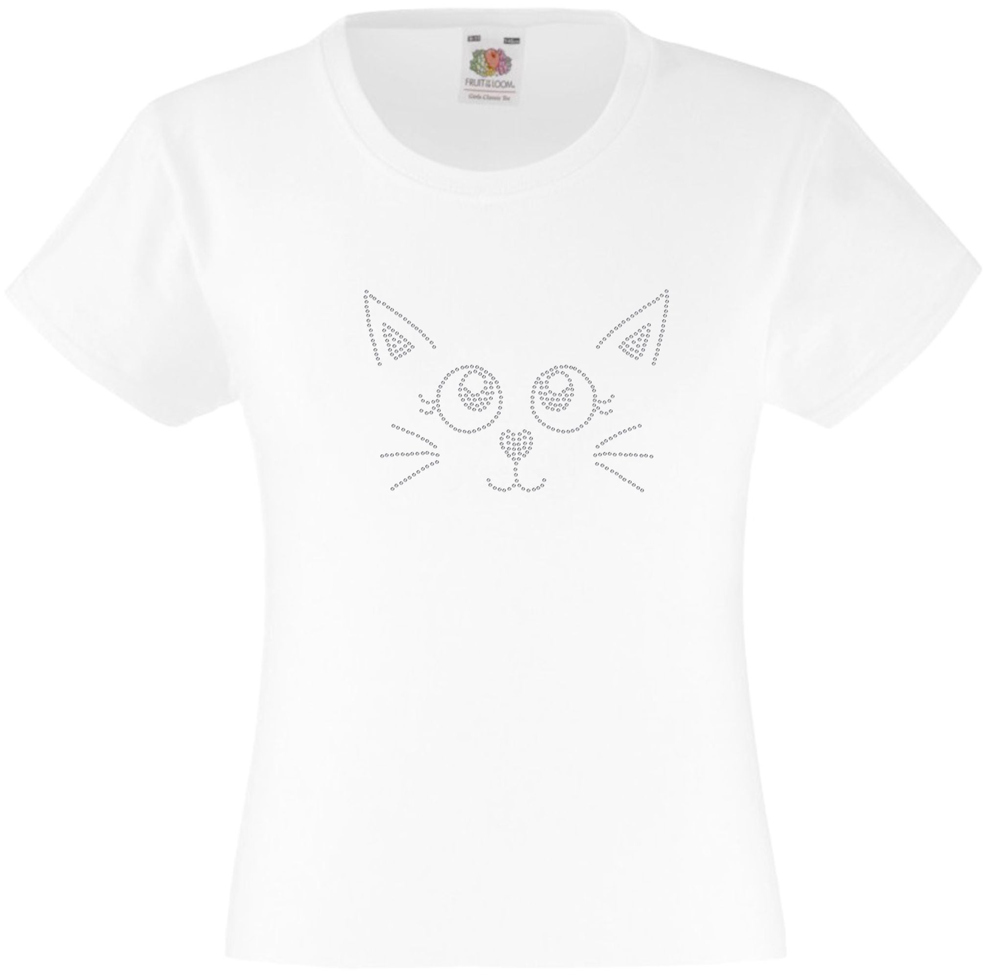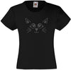 CATFACE RHINESTONE EMBELLISHED T SHIRT ELEGANT GIFT FOR ANIMAL LOVING GIRLS