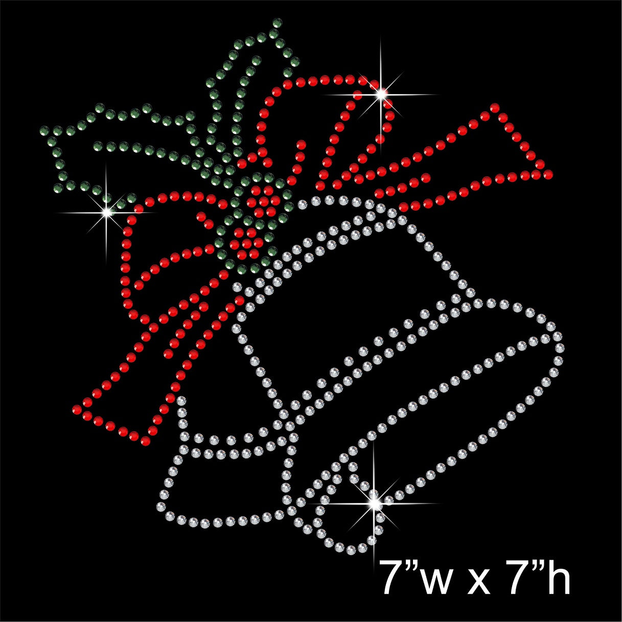 Christmas Bells Hotfix Rhinestone Transfer Diamante Motif, Iron on Applique