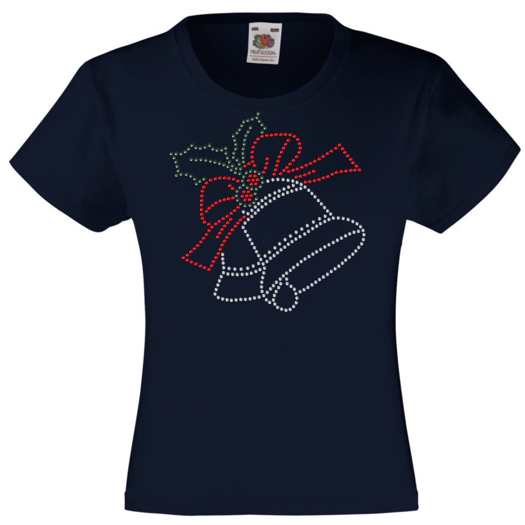 CHRISTMAS BELLS RHINESTONE EMBELLISHED T-SHIRT FOR GIRLS, ELEGANT GIFT FOR CHRISTMAS