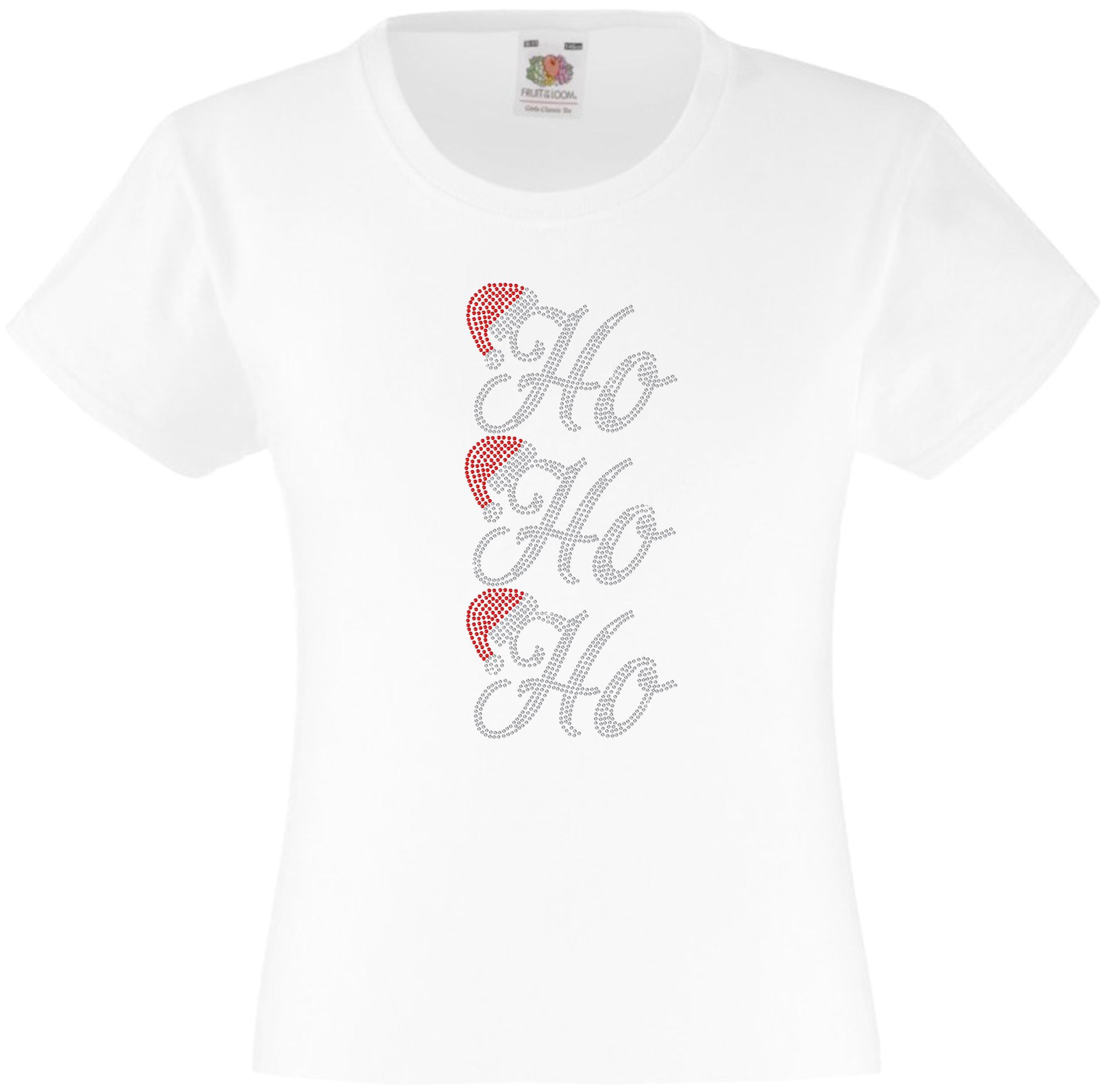 CHRISTMAS HO HO HO RHINESTONE EMBELLISHED T-SHIRT FOR GIRLS, ELEGANT GIFT FOR CHRISTMAS
