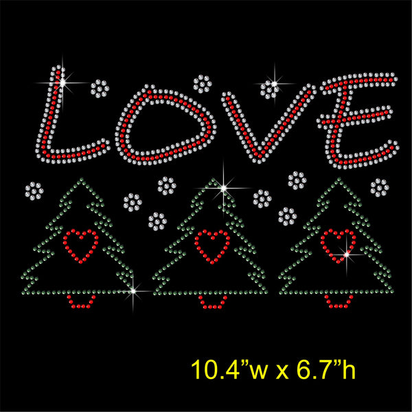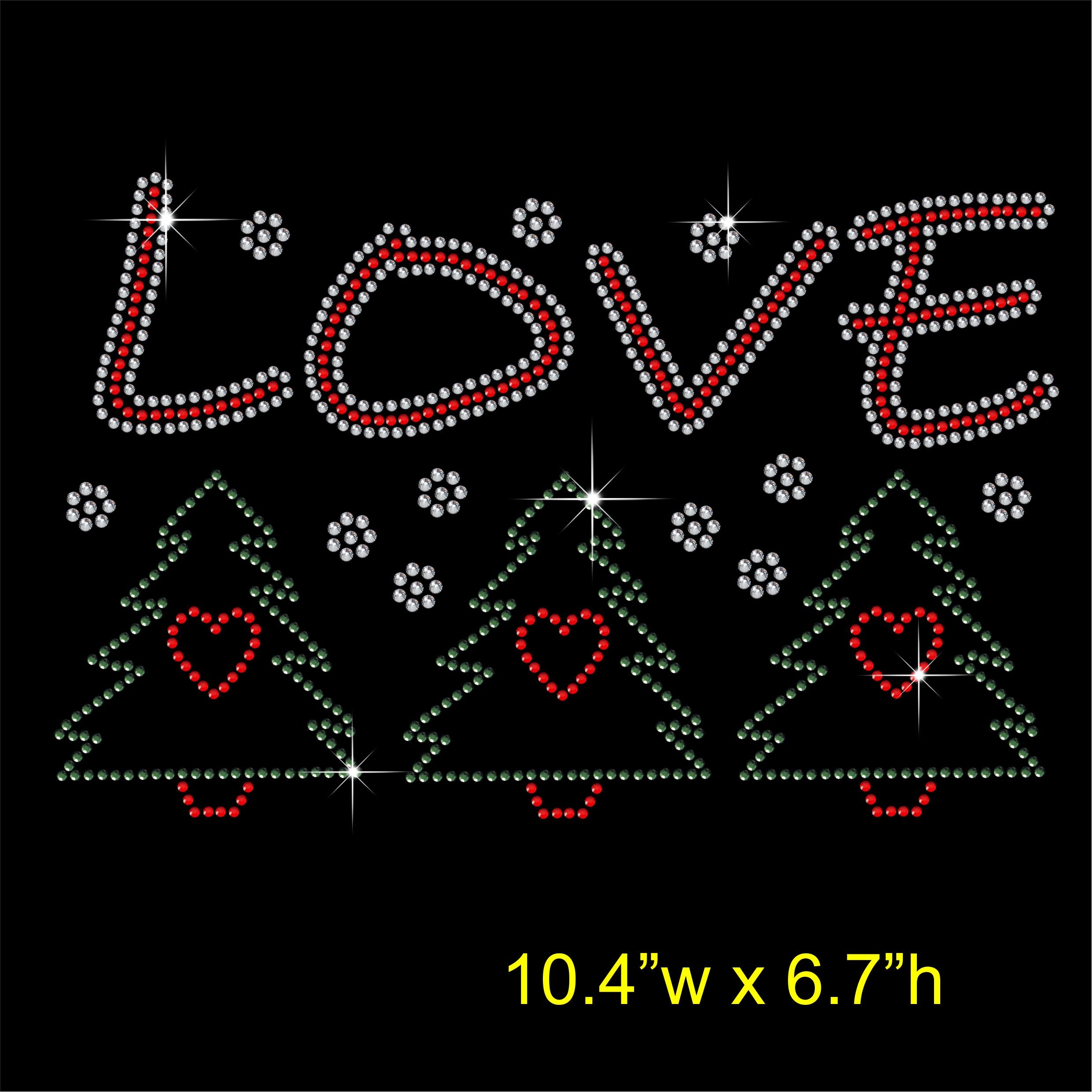 Christmas LOVE and Trees Hotfix Rhinestone Transfer Diamante Motif, Iron-on Applique