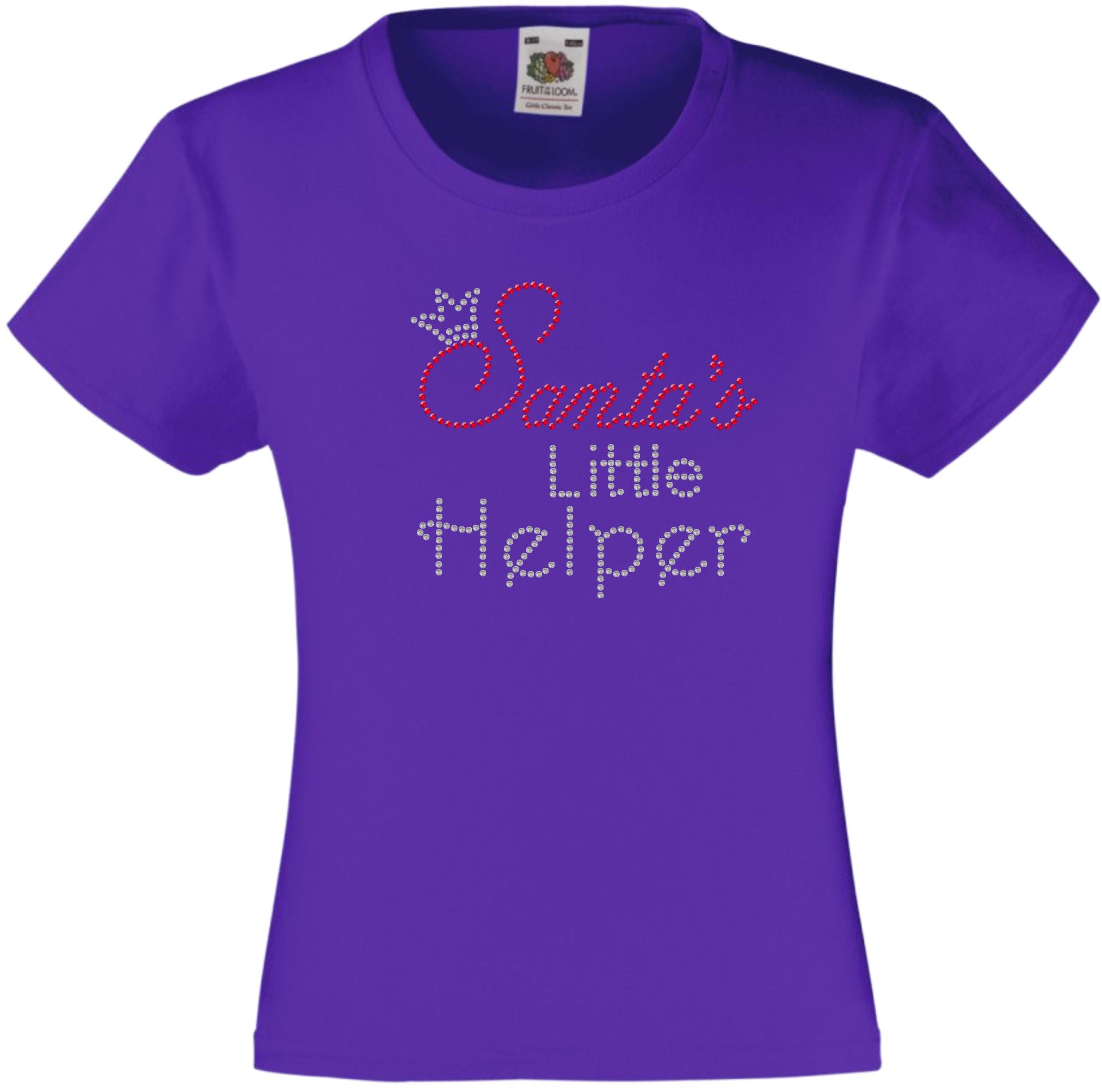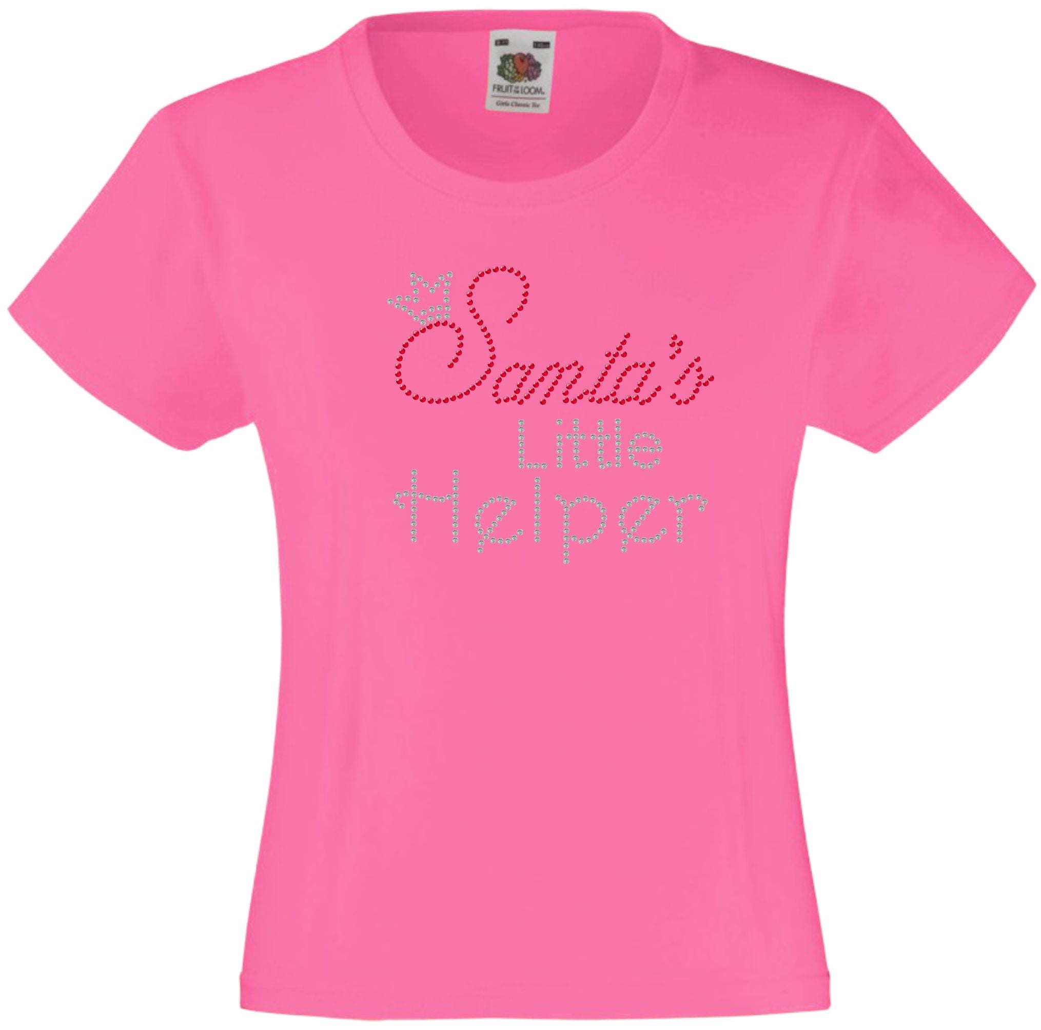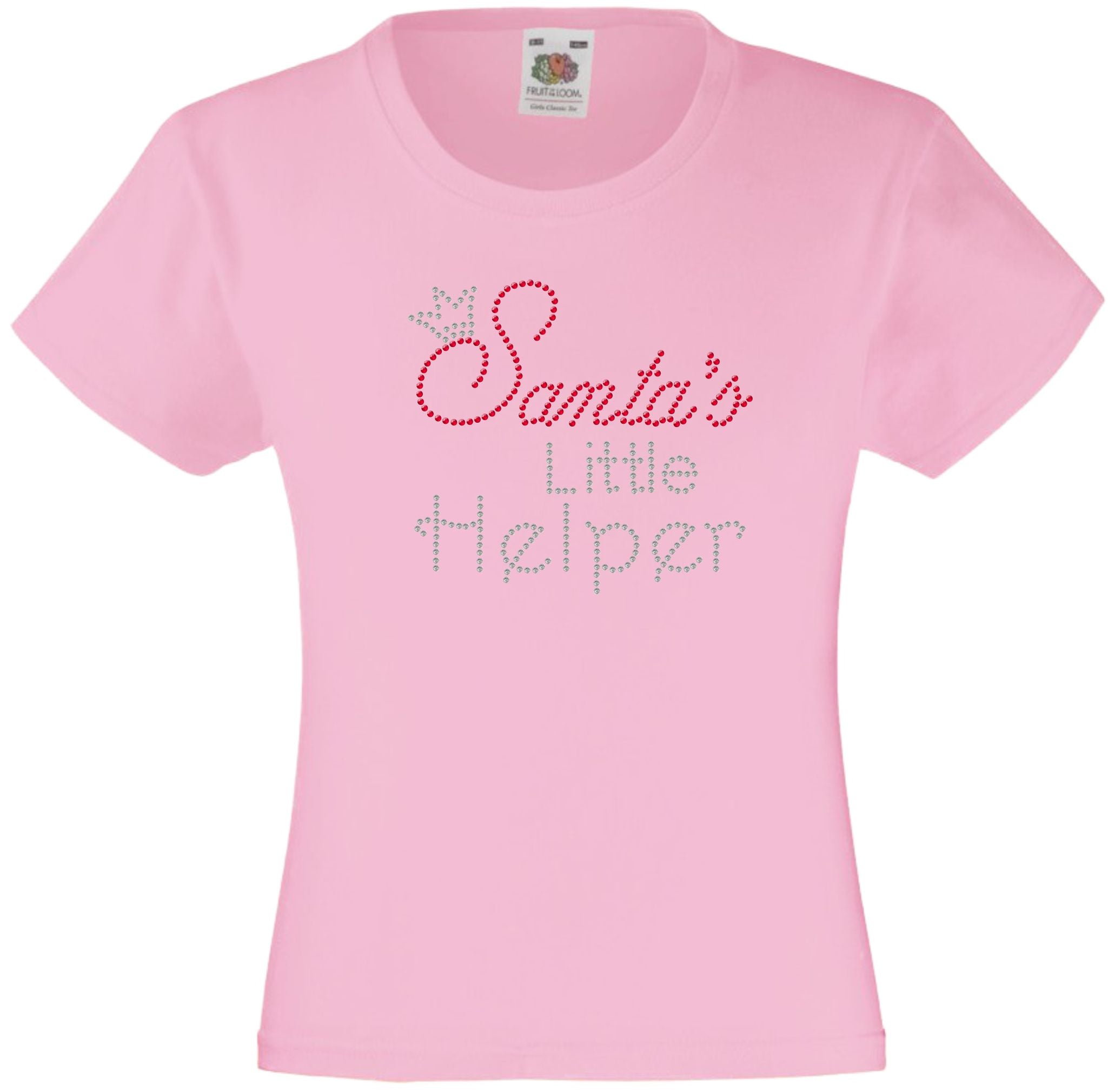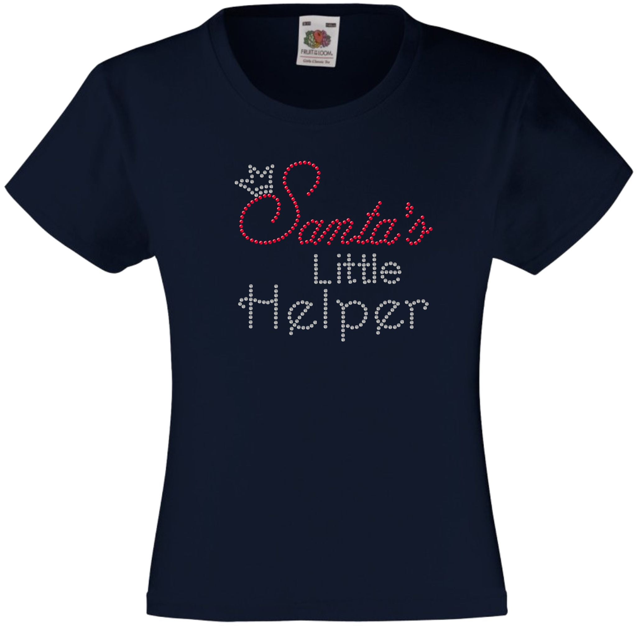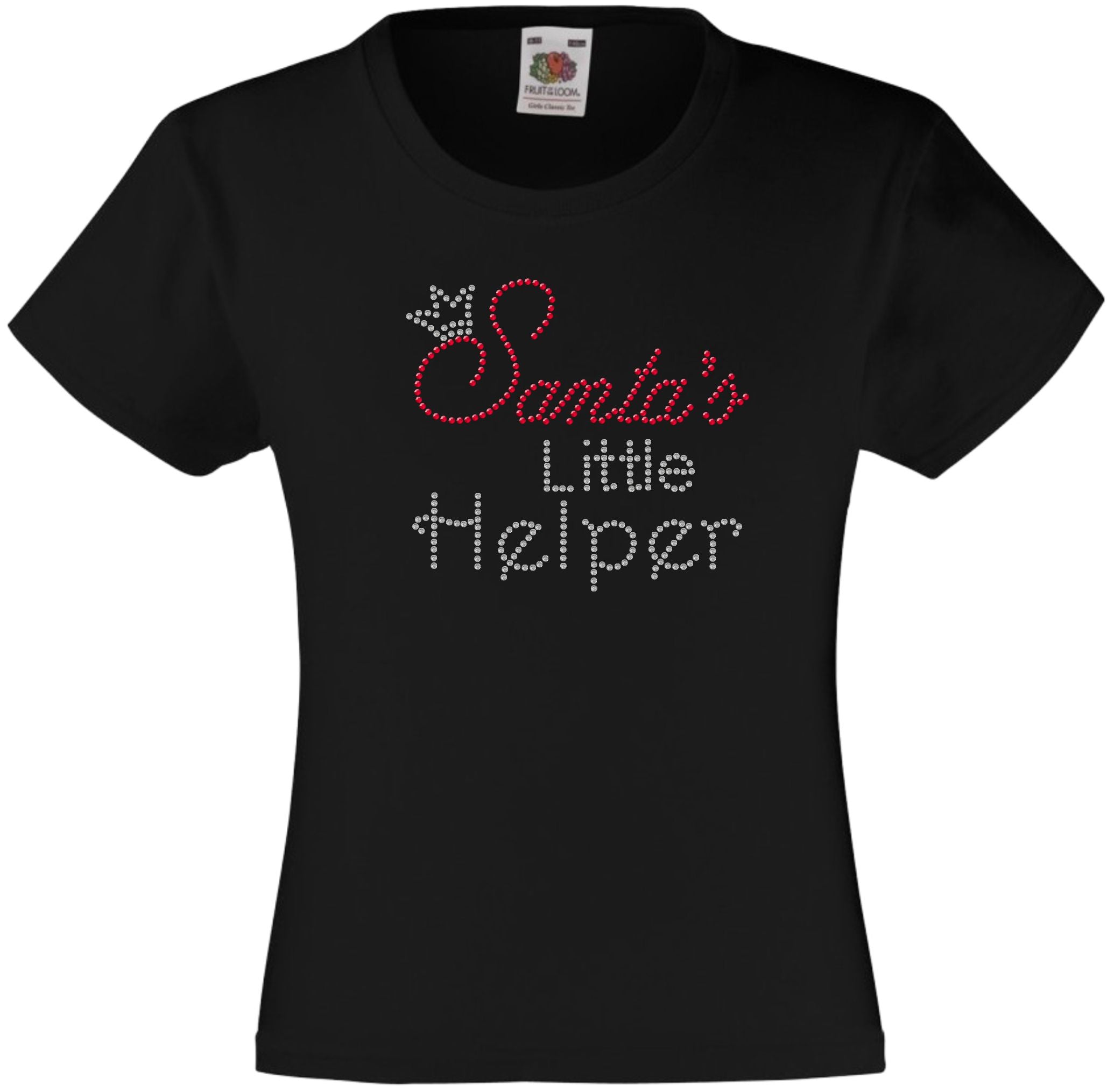 CHRISTMAS SANTA'S LITTLE HELPER RHINESTONE EMBELLISHED T SHIRT FOR GIRLS, ELEGANT GIFT FOR CHRISTMAS