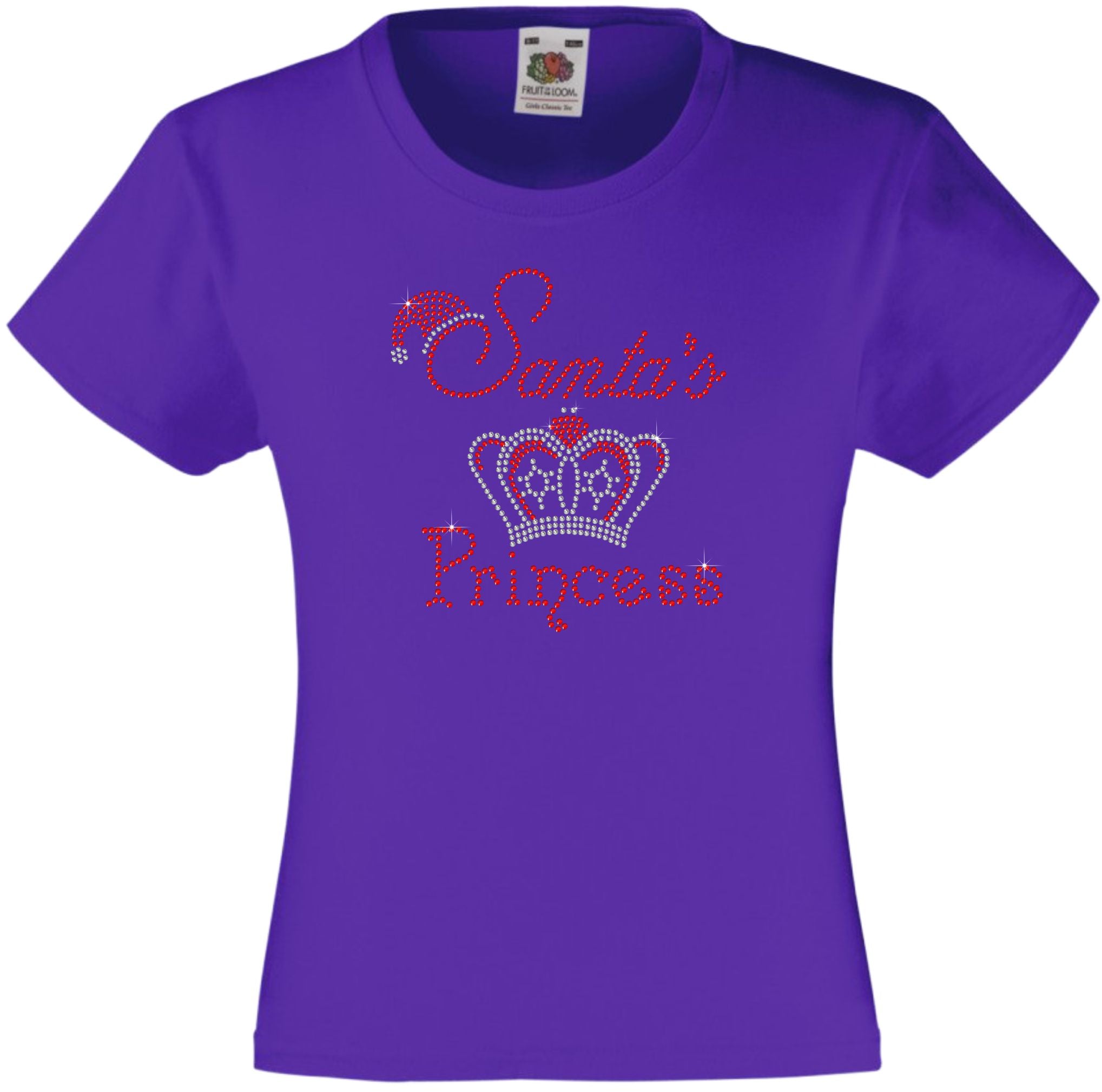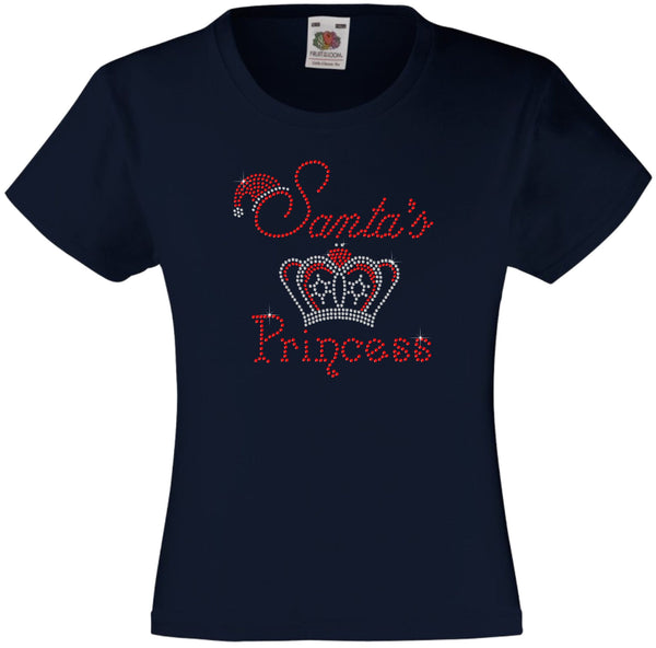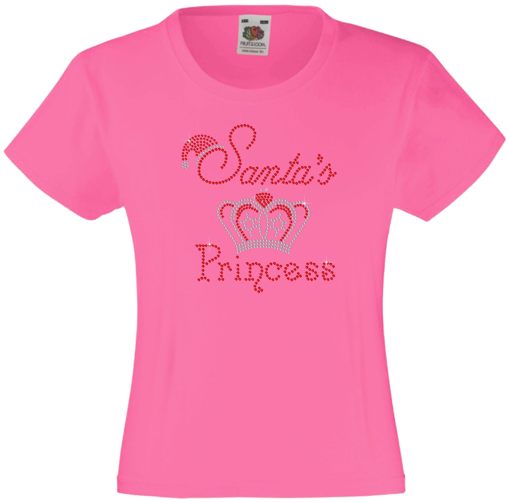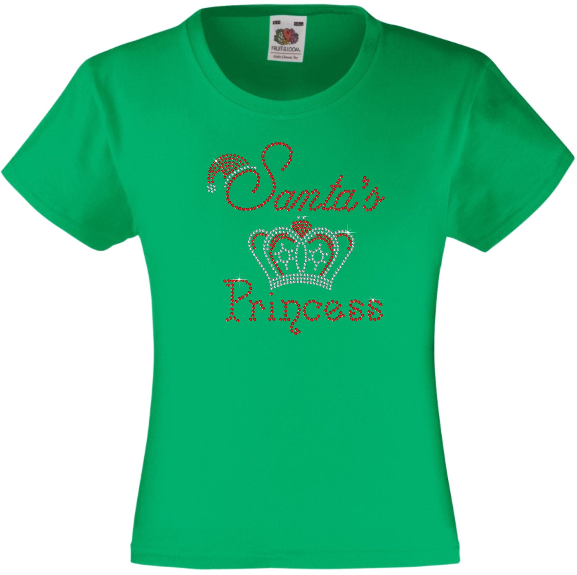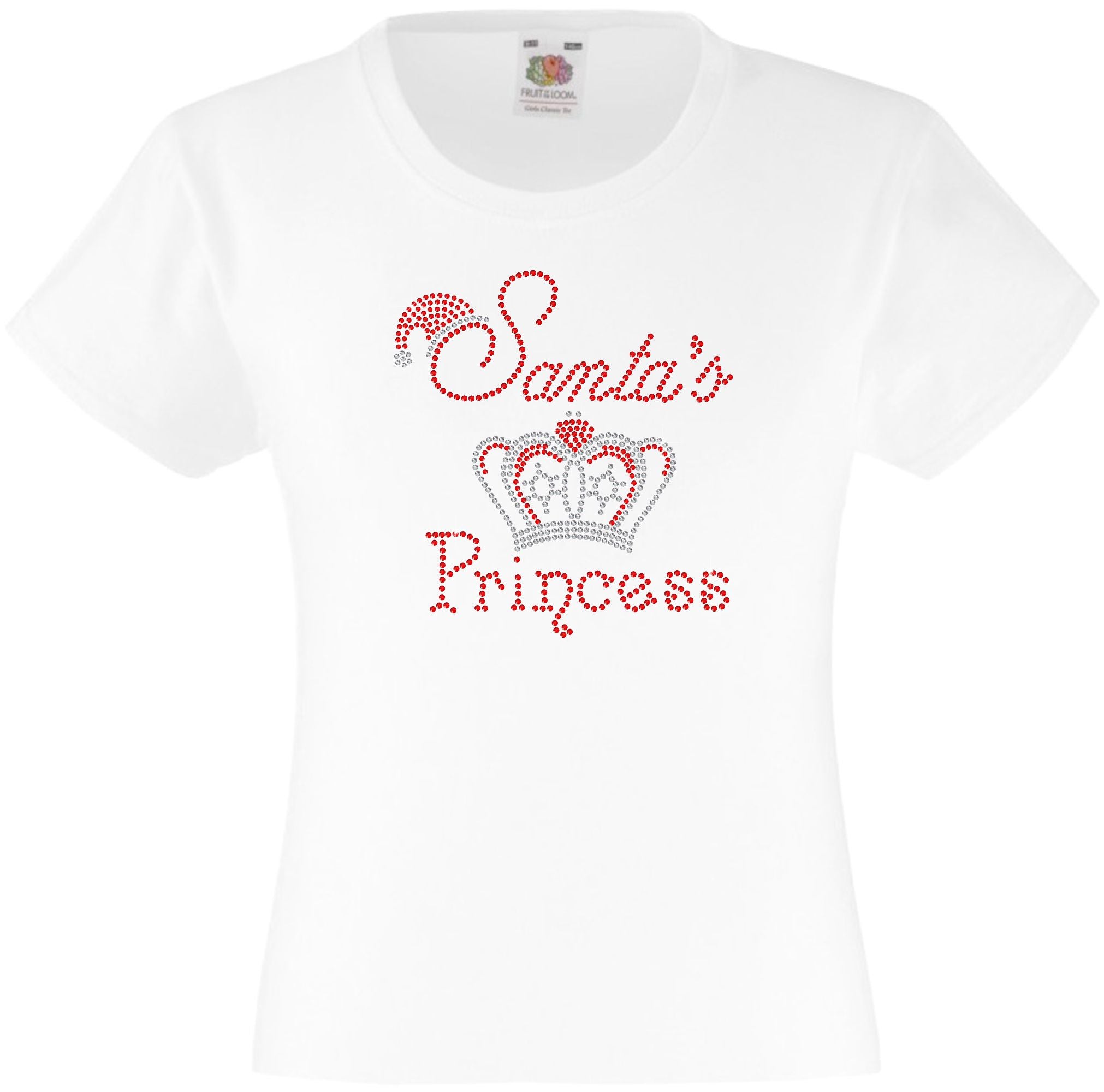 CHRISTMAS SANTA'S PRINCESS RHINESTONE EMBELLISHED T SHIRT FOR GIRLS, ELEGANT GIFT FOR CHRISTMAS