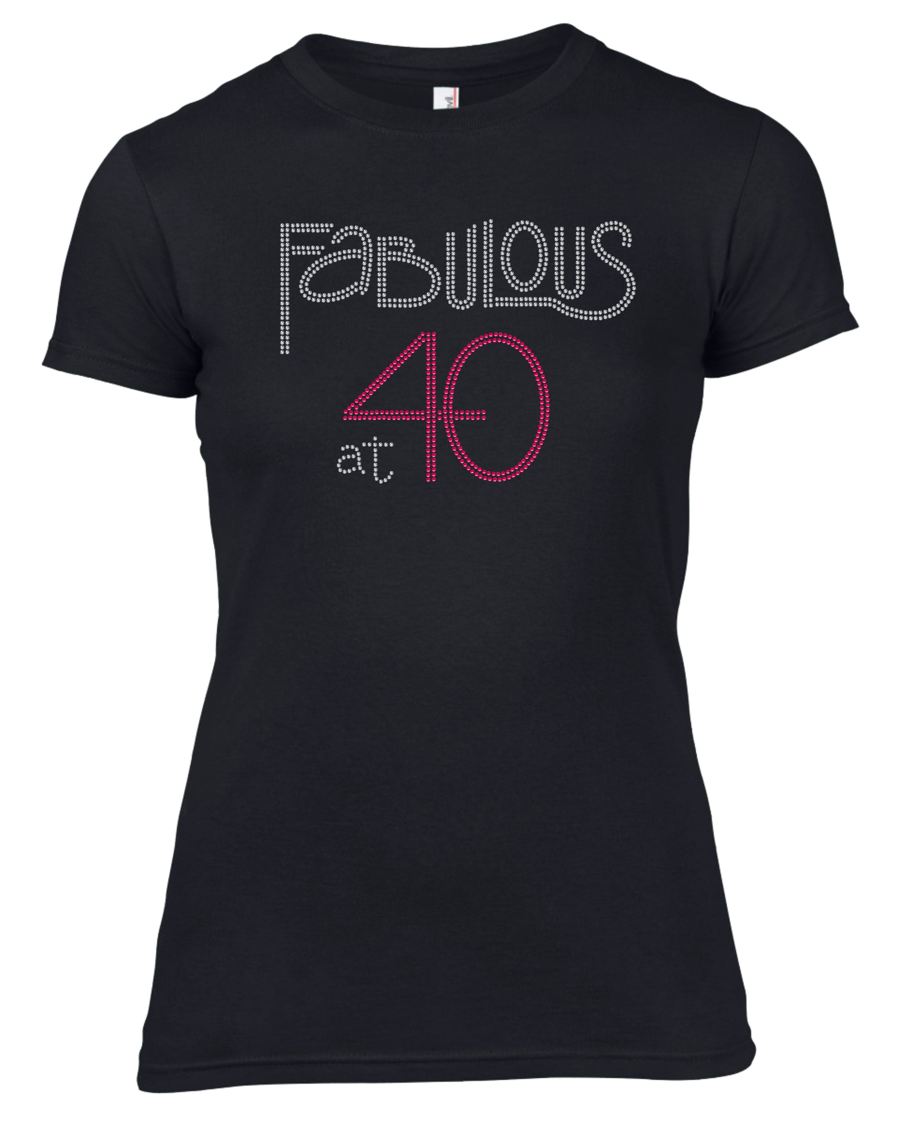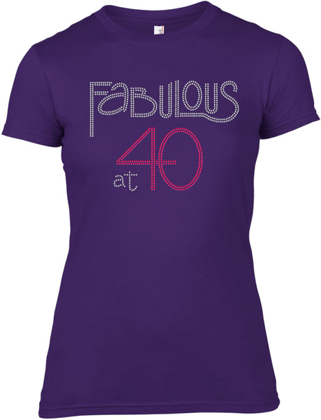 FABULOUS AT 40 BIRTHDAY RHINESTONE EMBELLISHED T-SHIRT FOR LADIES