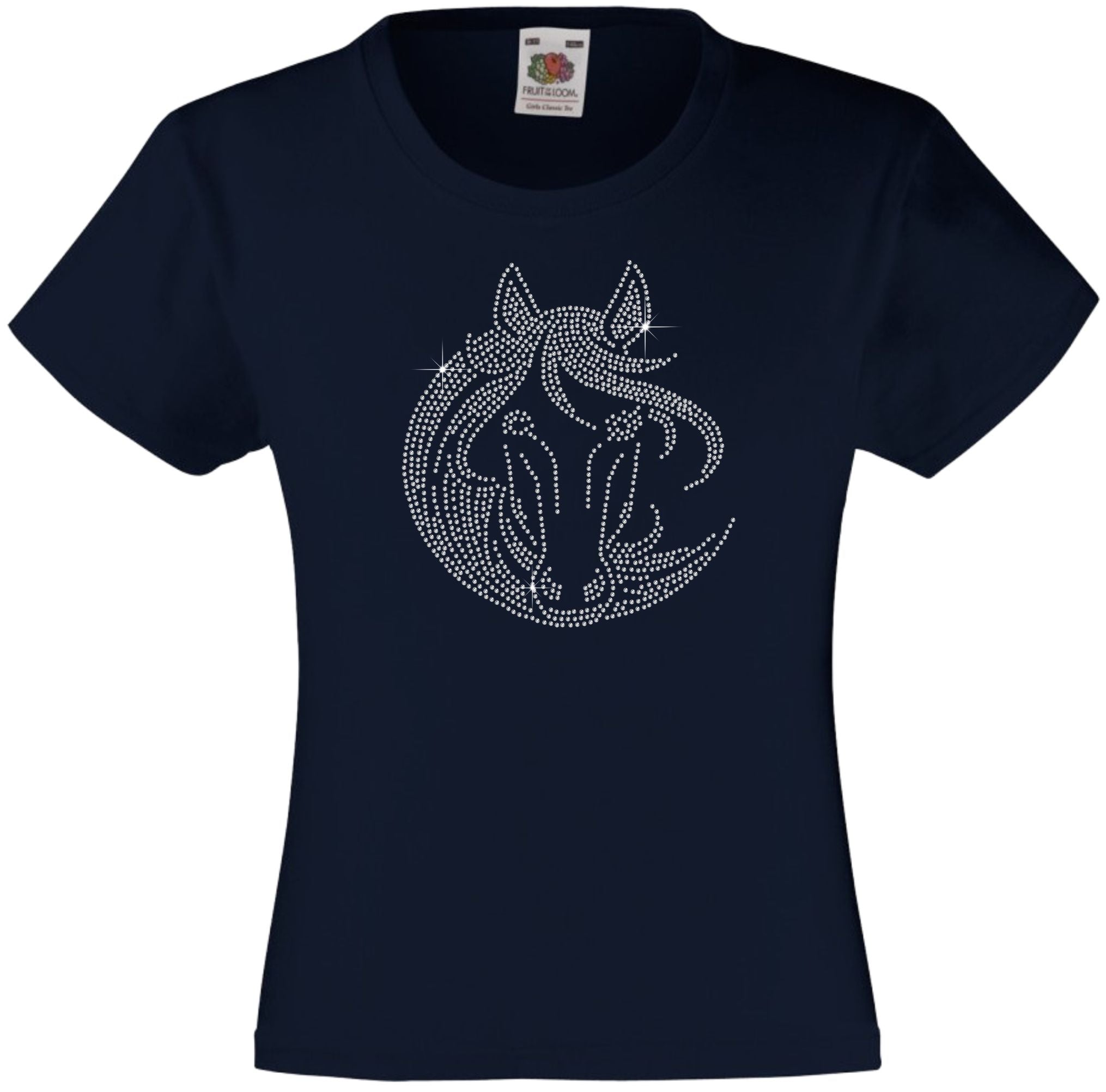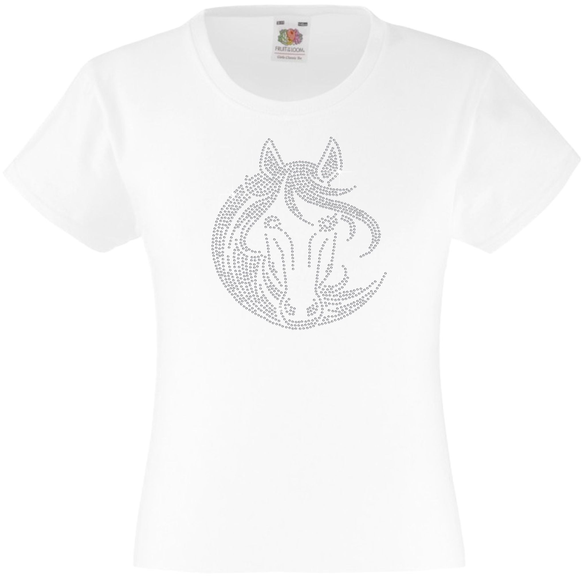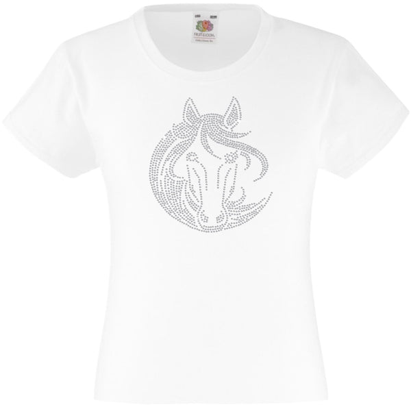 HORSE FACE RHINESTONE EMBELLISHED T-SHIRT ELEGANT GIFT FOR ANIMAL LOVING GIRLS