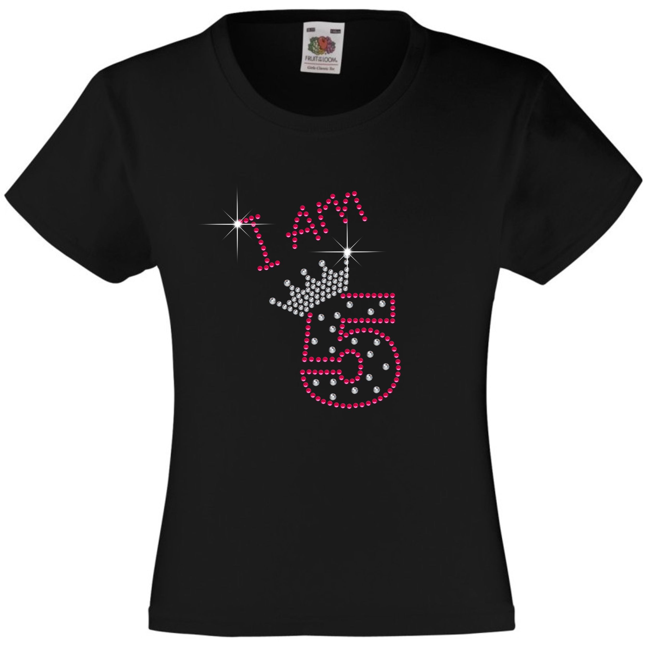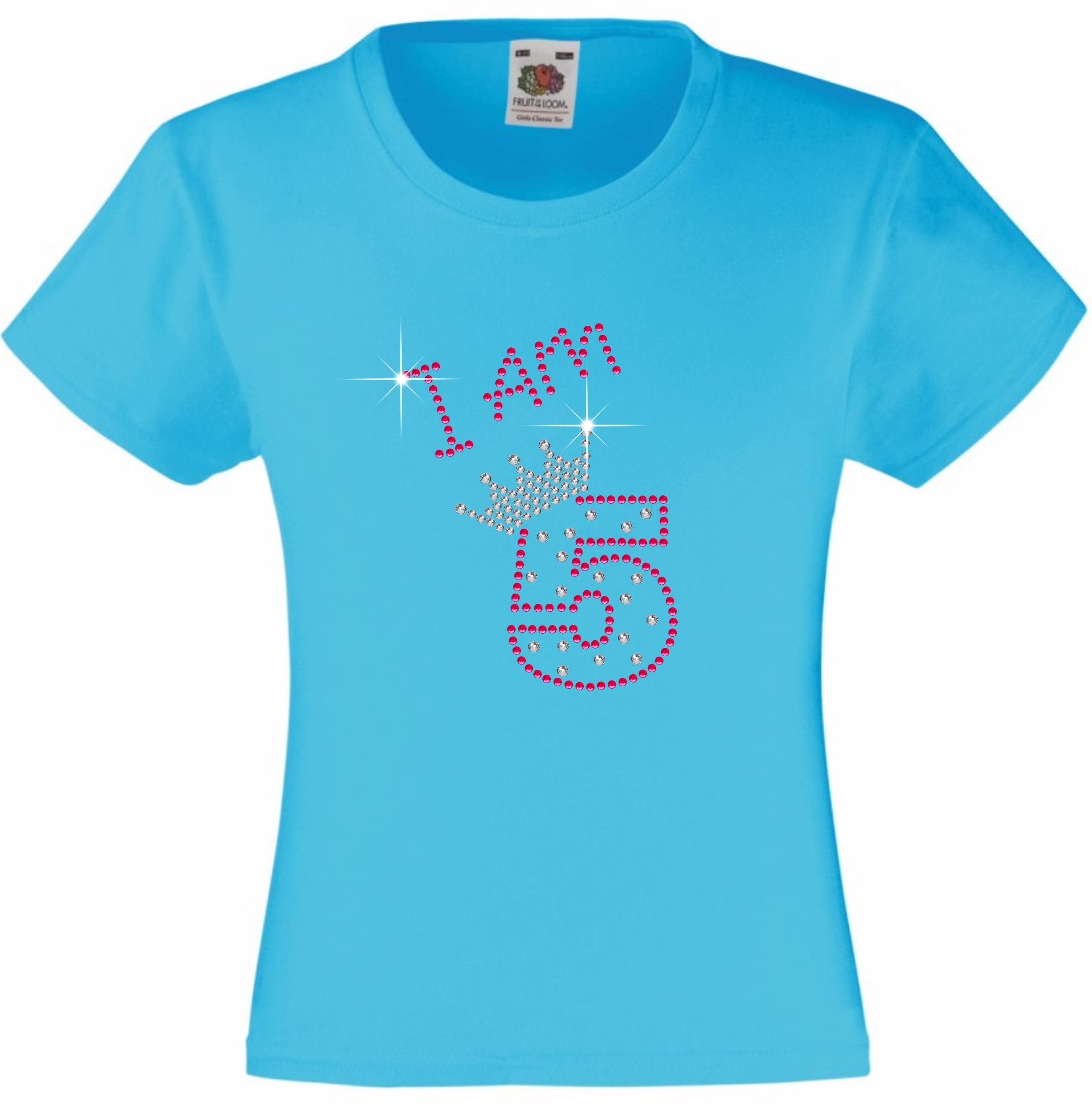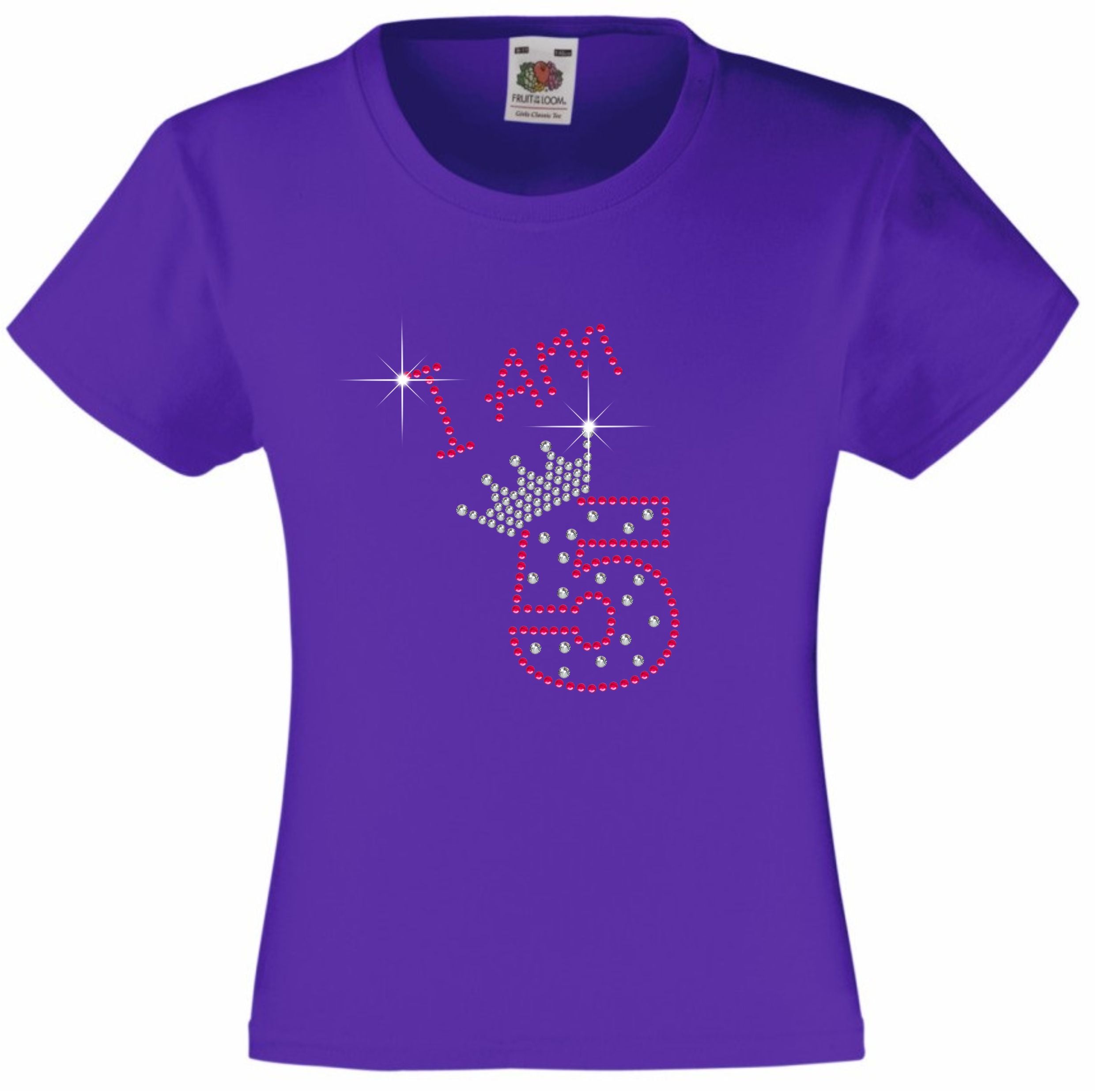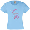 I am 5 Girls T Shirt, Rhinestone Embellished Birthday T Shirt, Elegant Gift for their big day