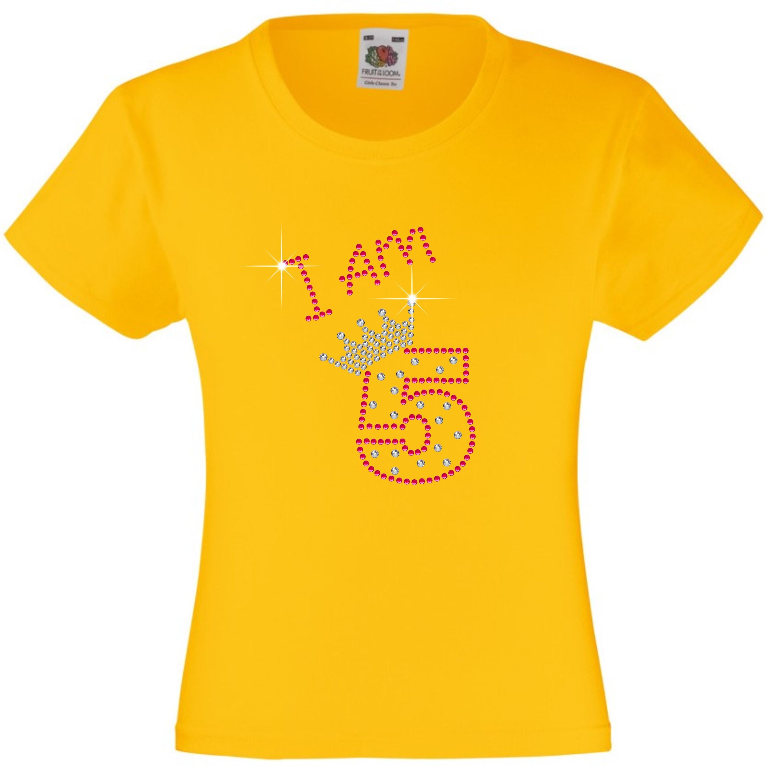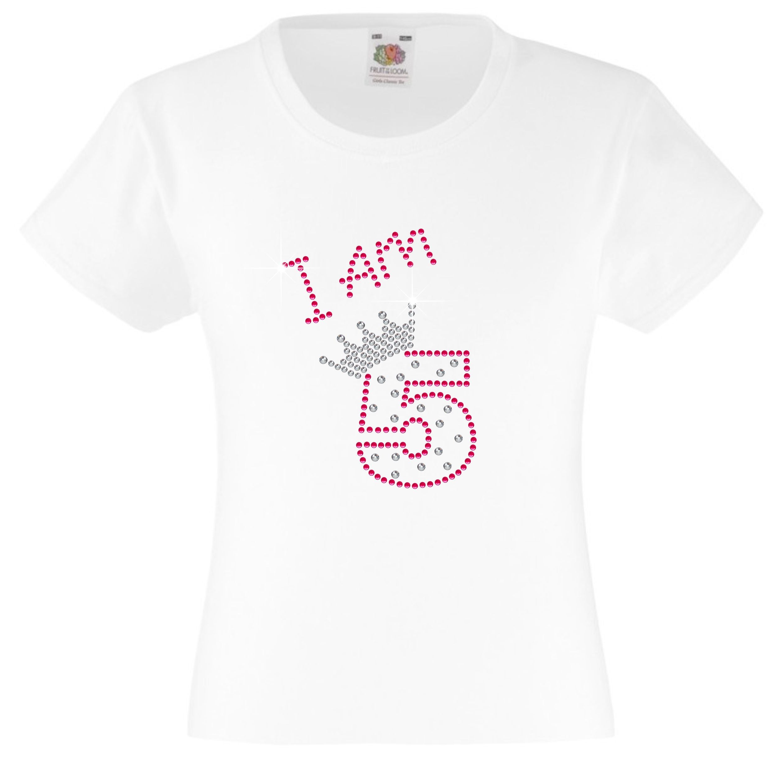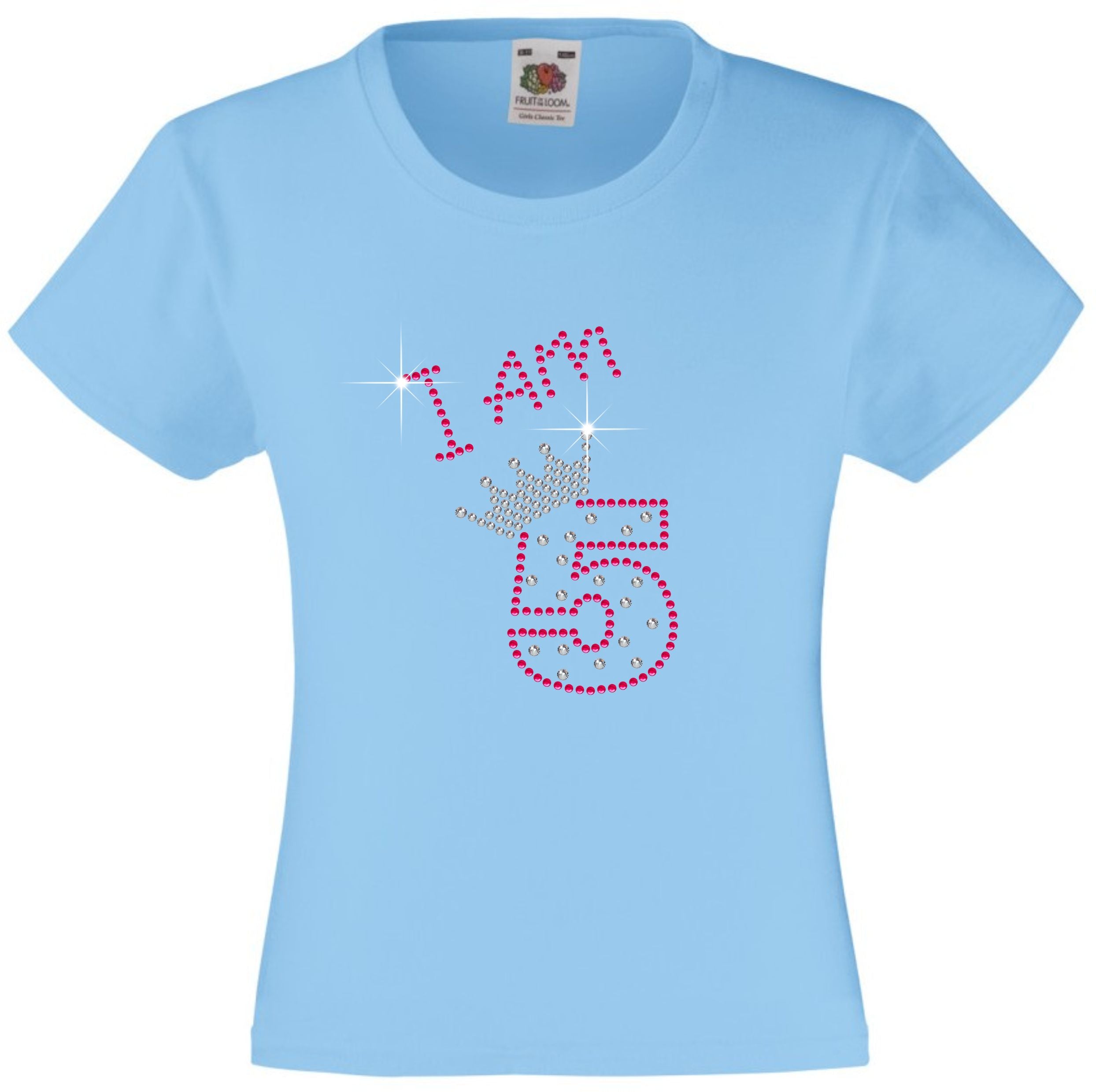 I am 5 Girls T Shirt, Rhinestone Embellished Birthday T Shirt, Elegant Gift for their big day