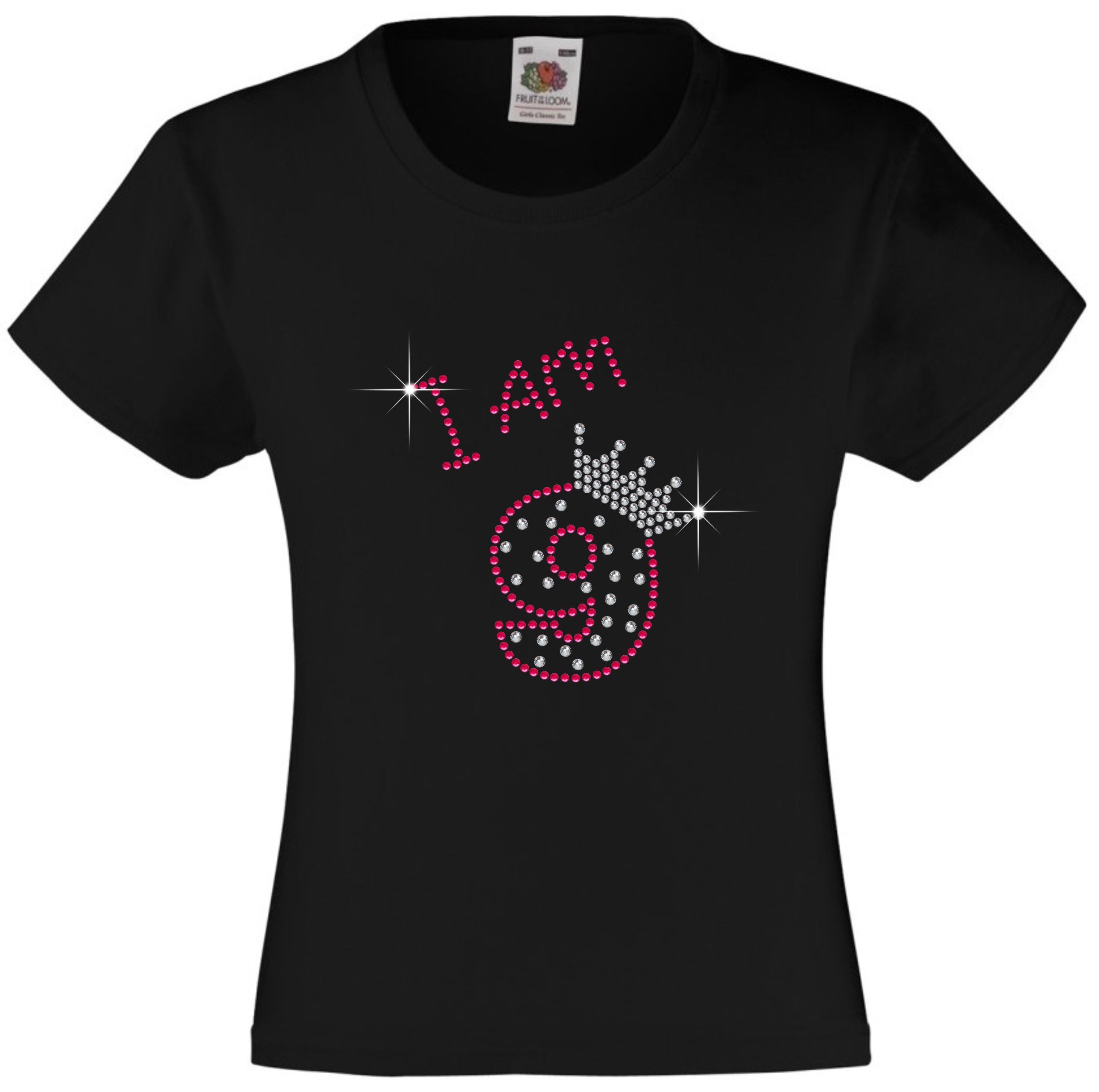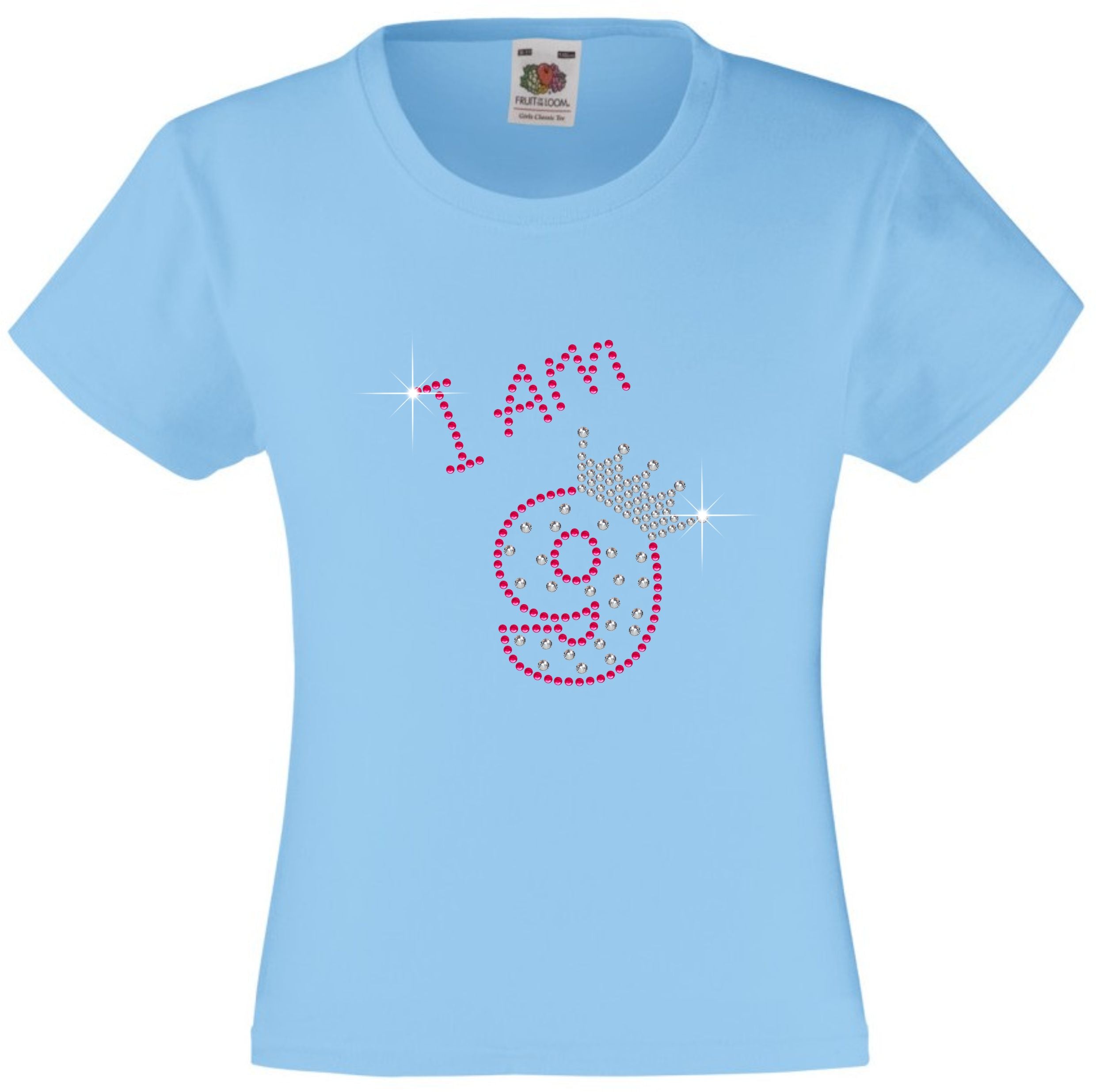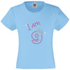 I am 9 Girls T Shirt, Rhinestone Embellished Birthday T Shirt, Elegant Gift for their big day