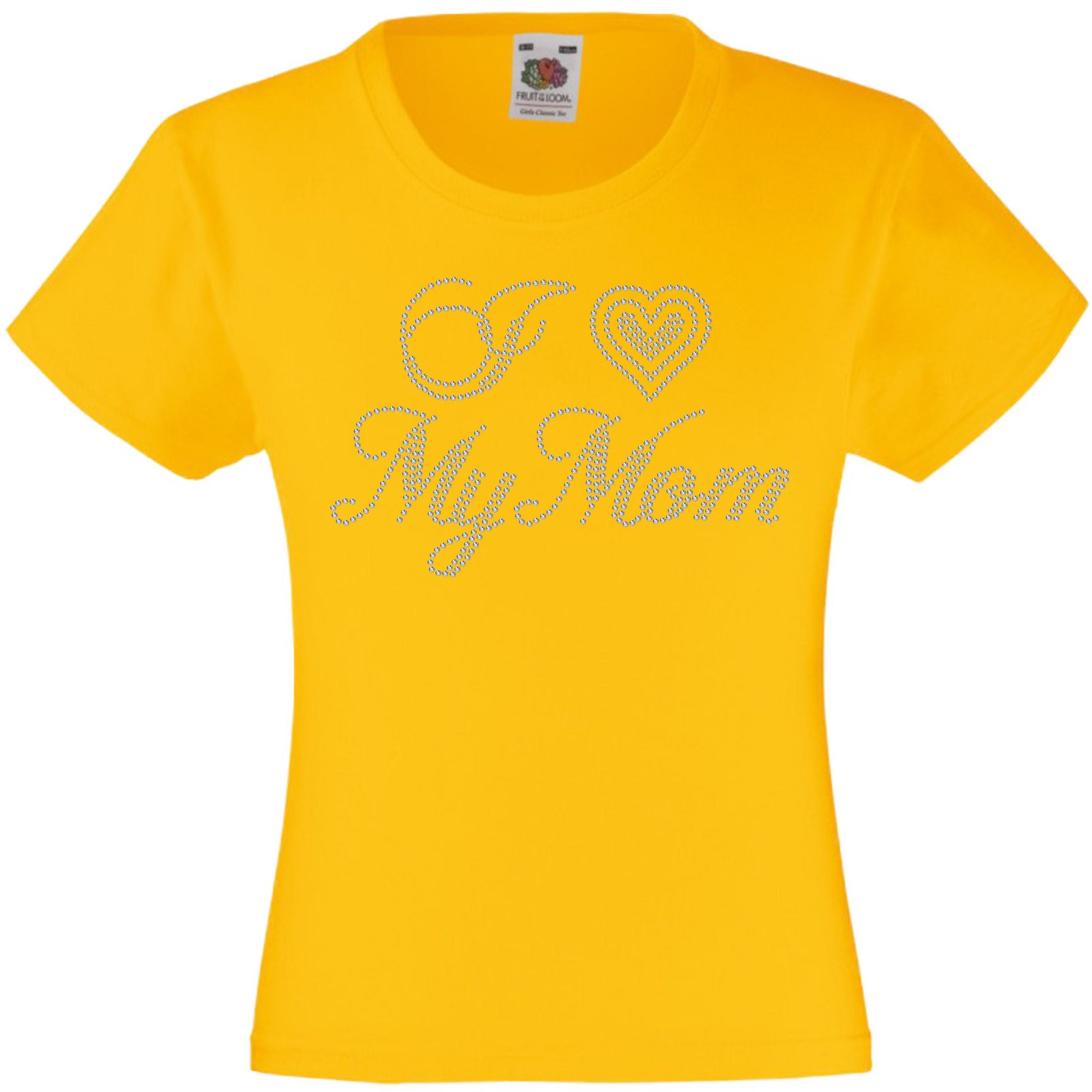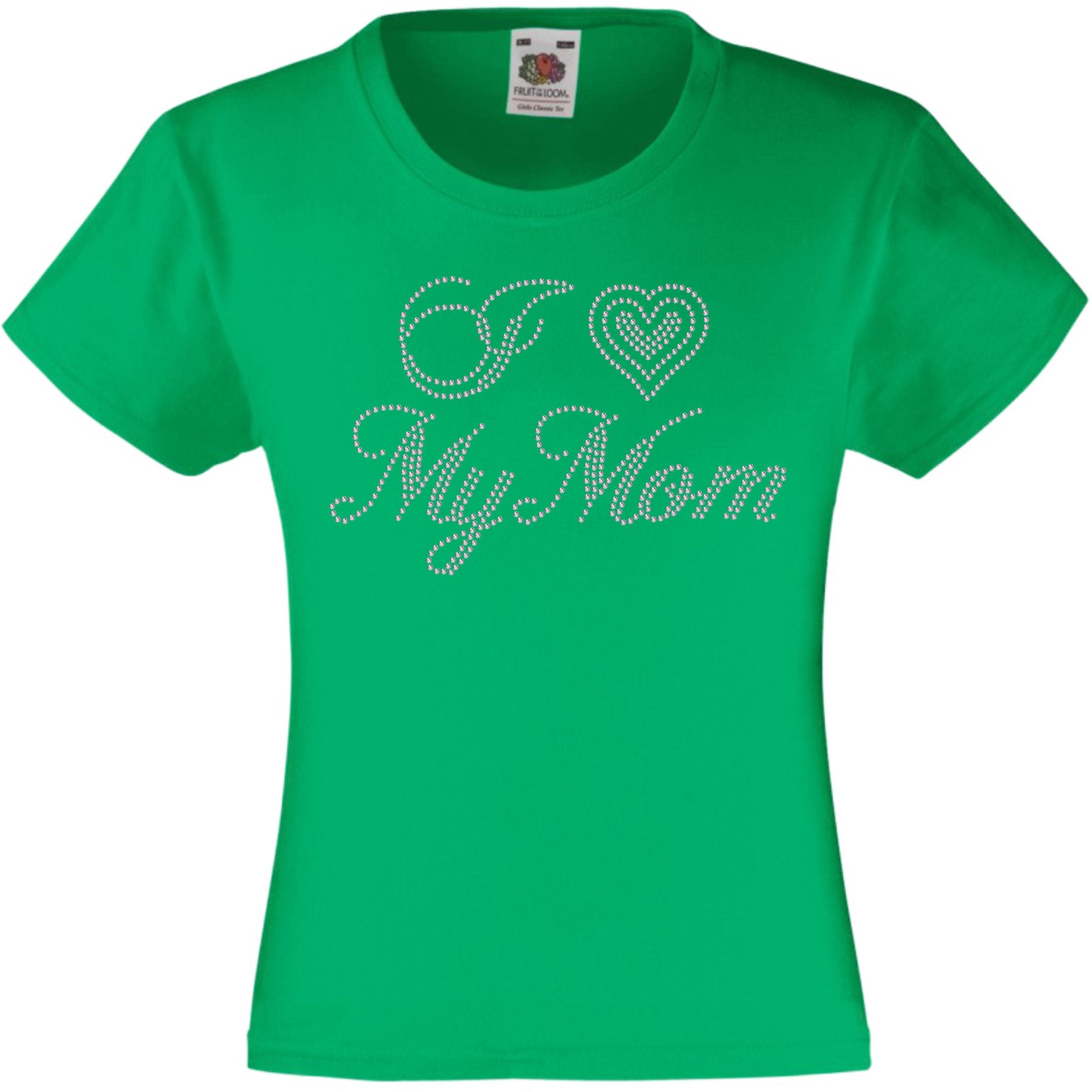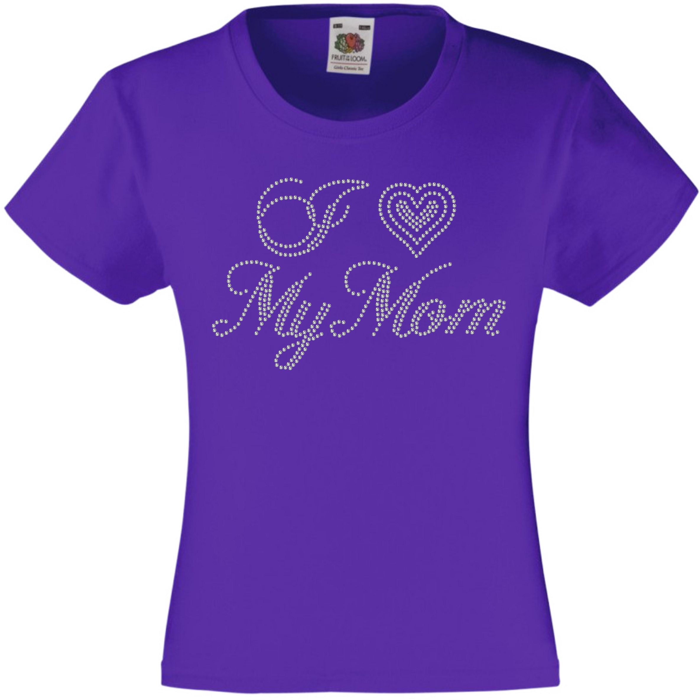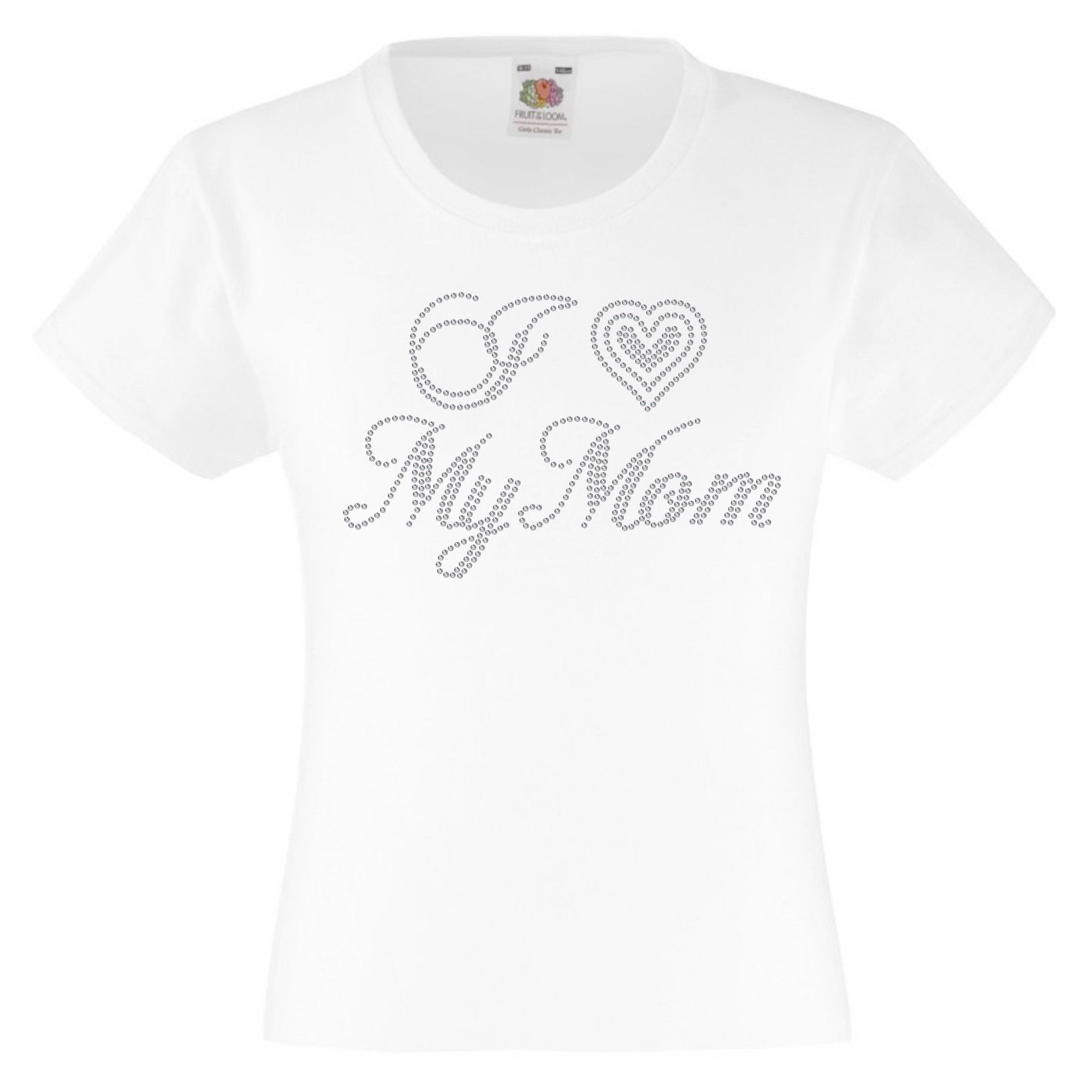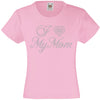 I LOVE MY MOM RHINESTONE EMBELLISHED T SHIRT ELEGANT GIFT FOR GIRLS