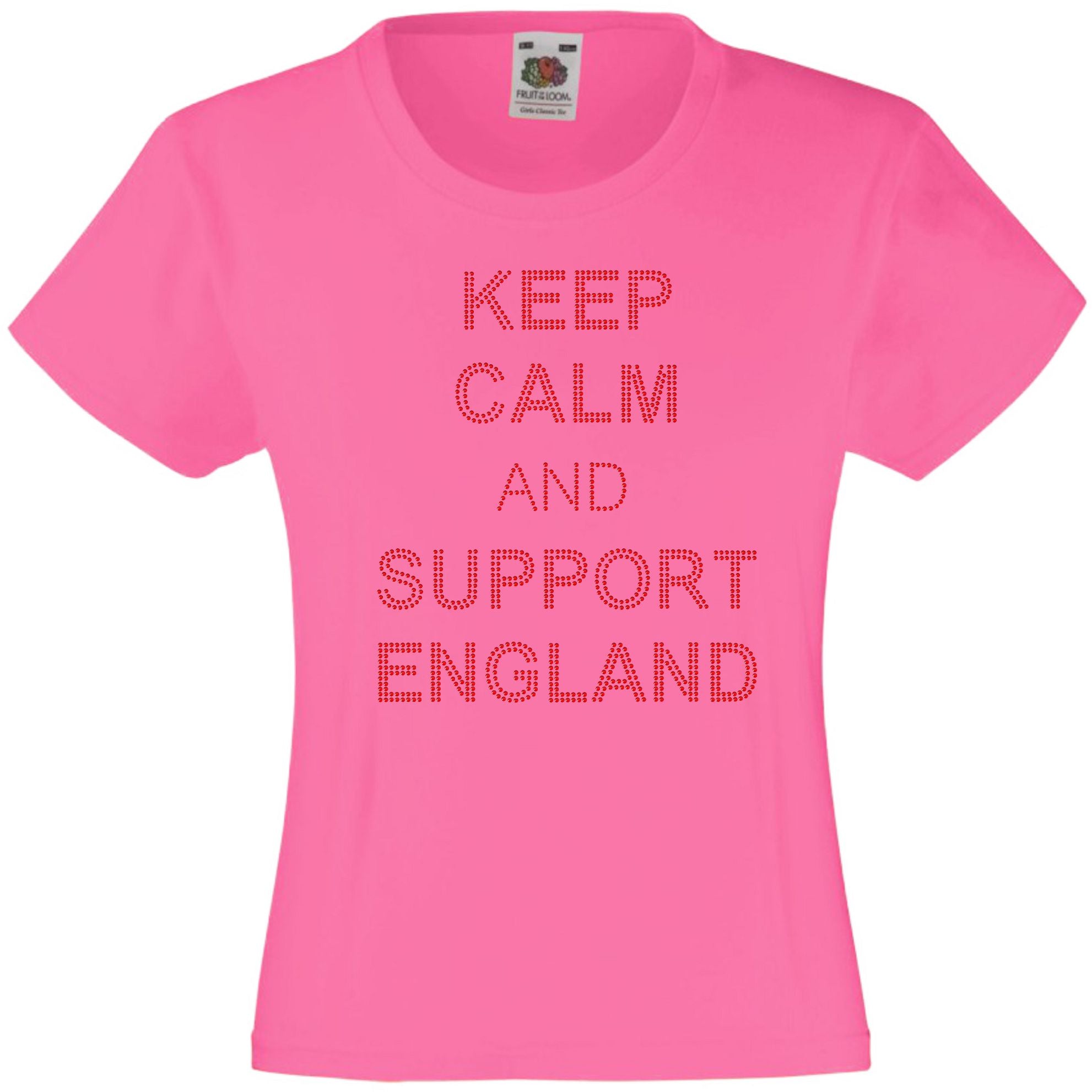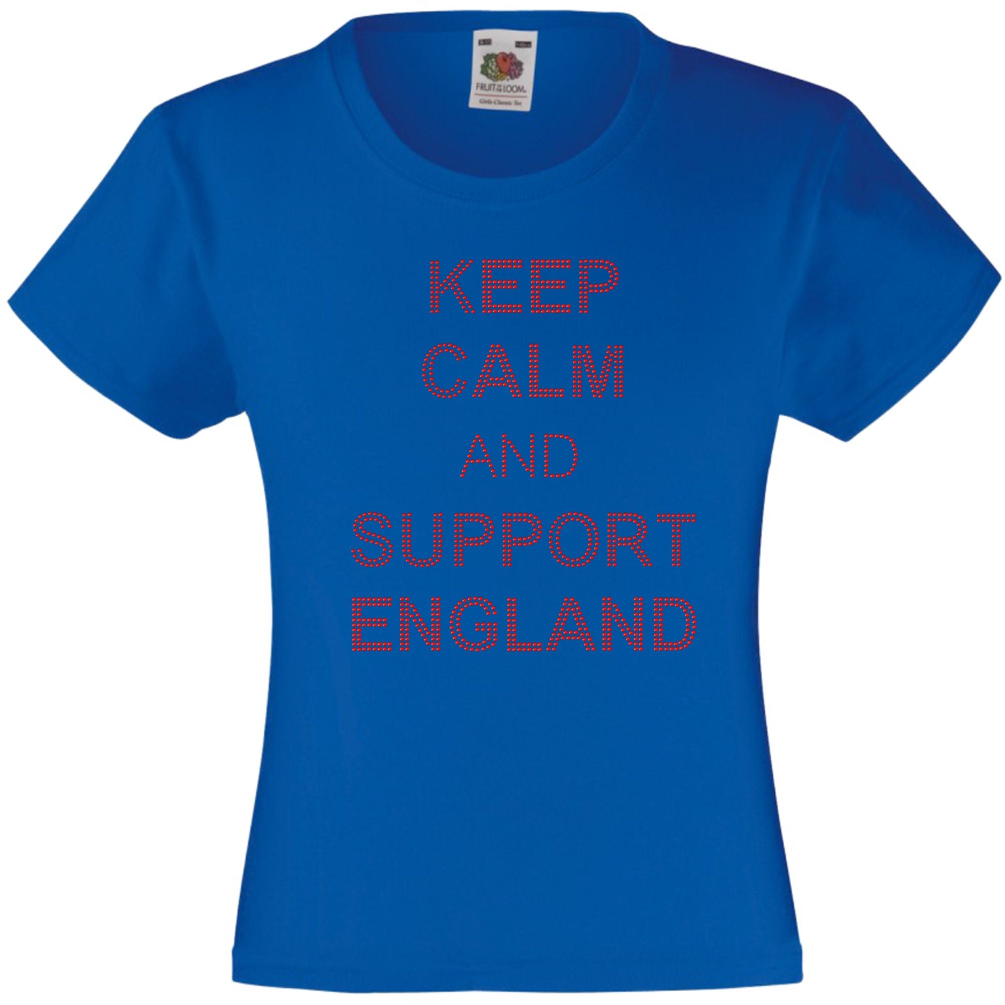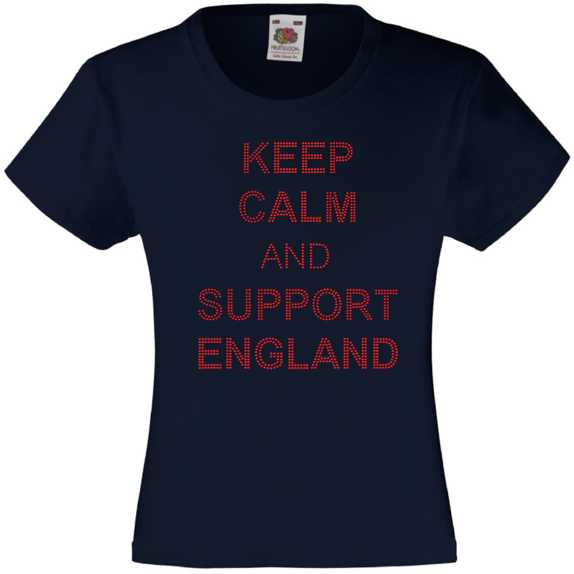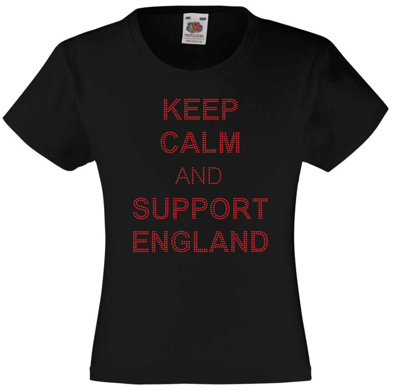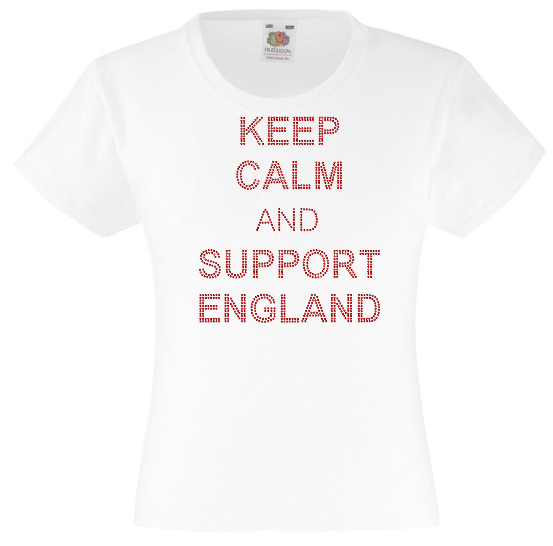KEEP CALM AND SUPPPORT ENGLAND RHINESTONE EMBELLISHED T-SHIRT ELEGANT GIFT FOR GIRLS