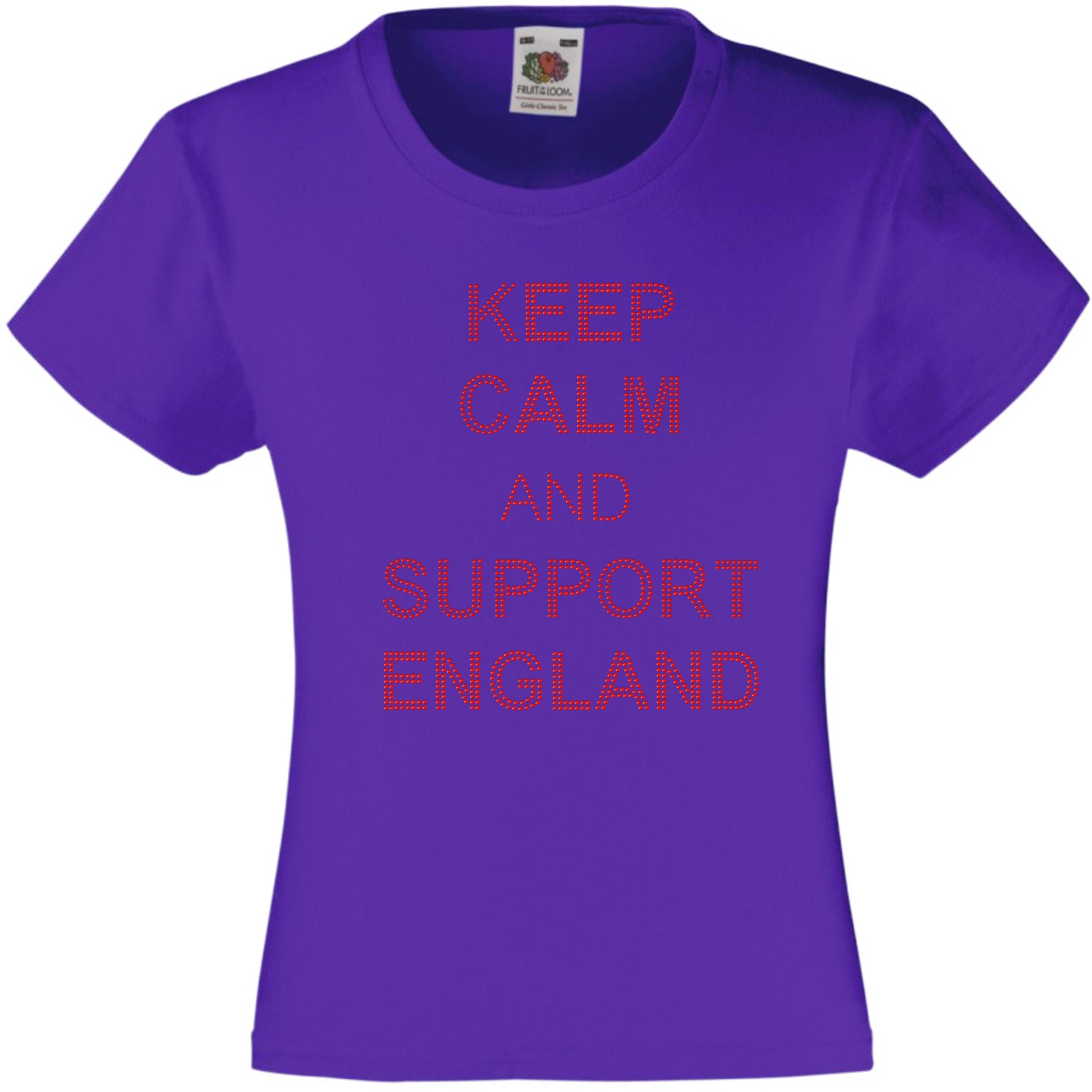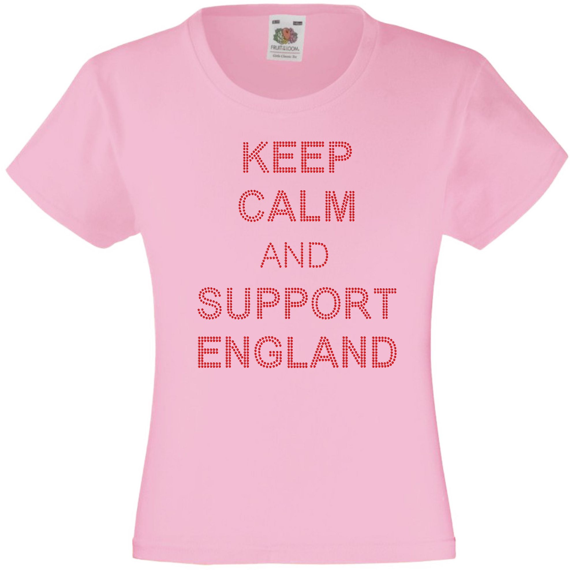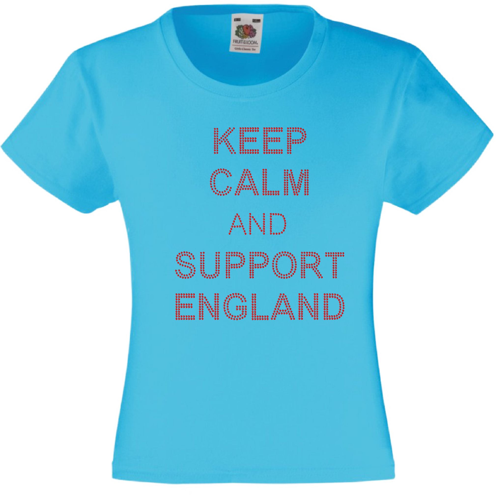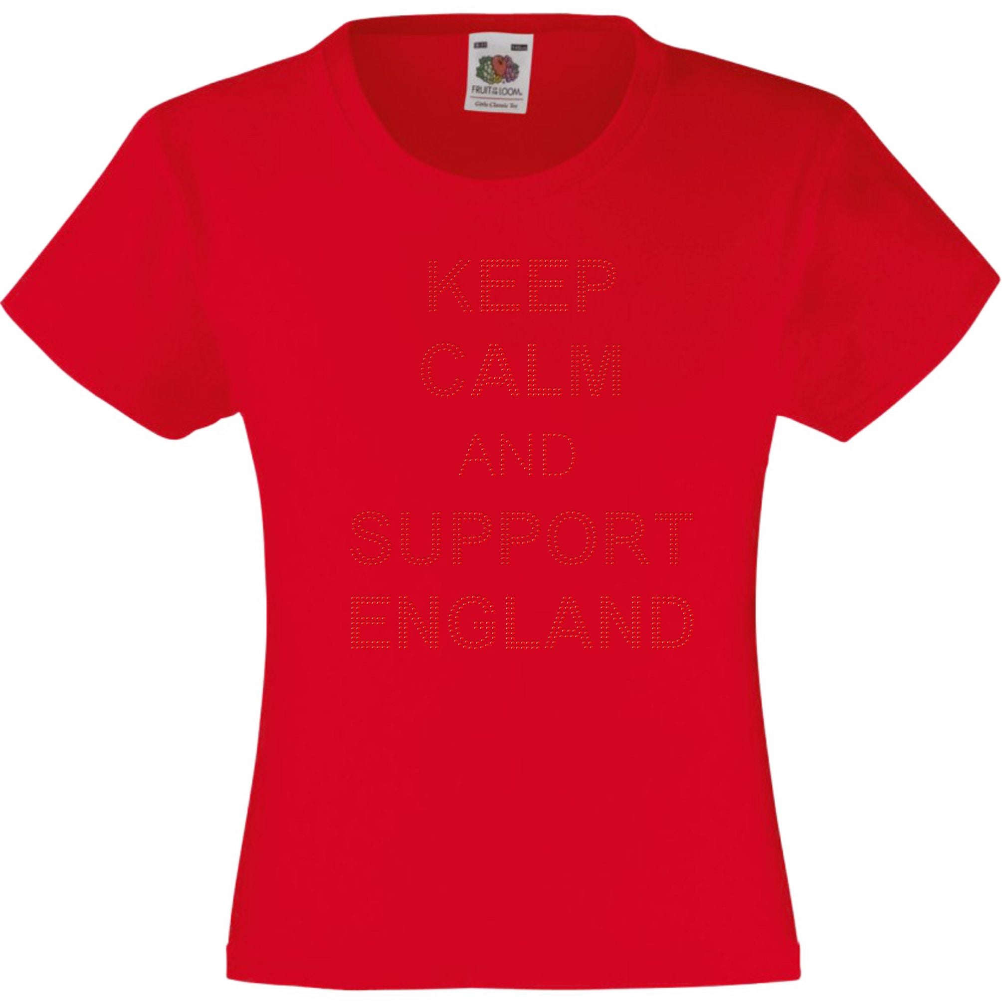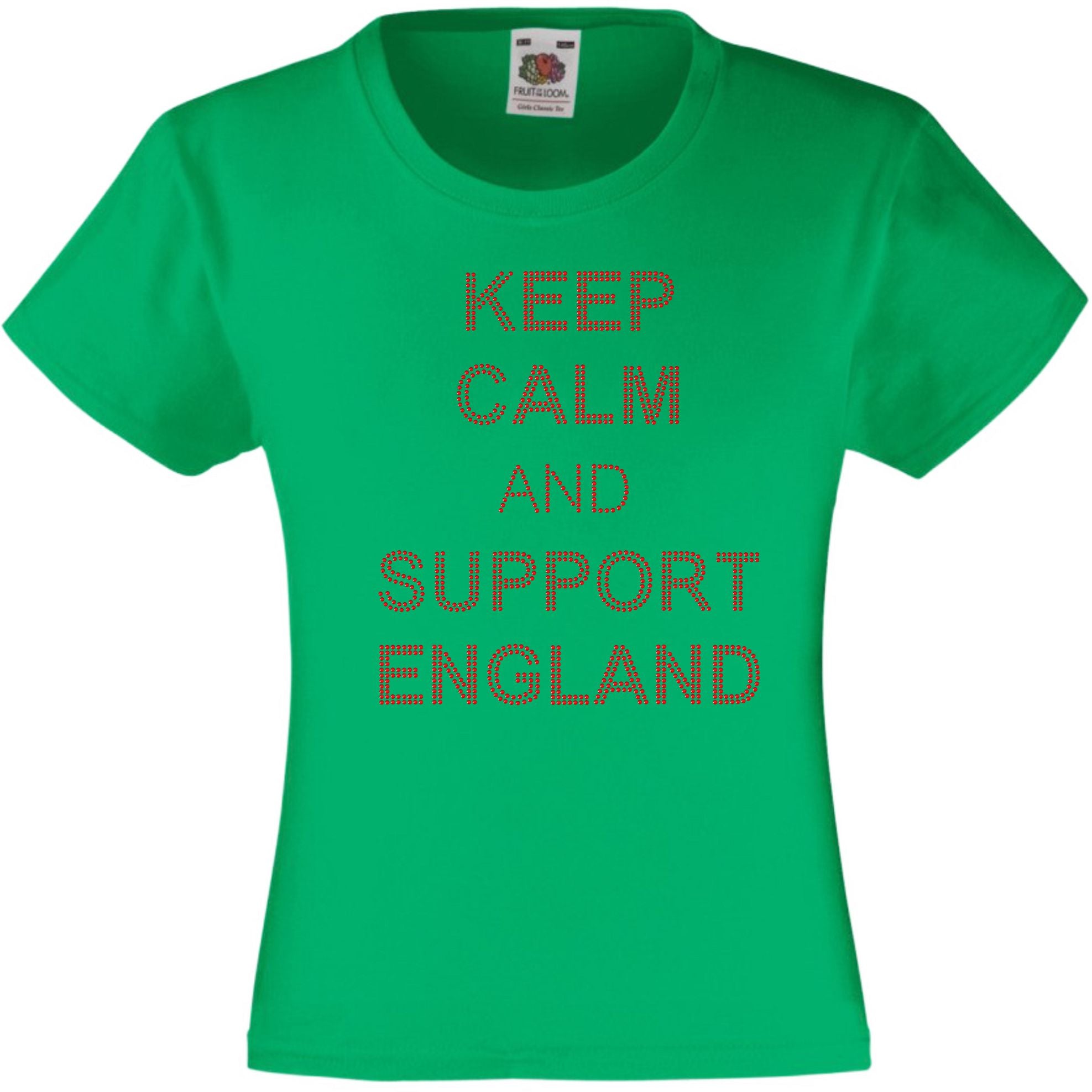 KEEP CALM AND SUPPPORT ENGLAND RHINESTONE EMBELLISHED T-SHIRT ELEGANT GIFT FOR GIRLS