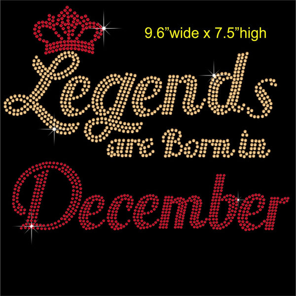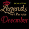 Legends are Born in December Hotfix Rhinestone Transfer Diamante Motif, Iron on Applique
