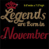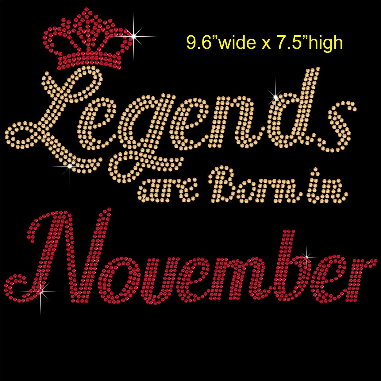 Legends are Born in November Hotfix Rhinestone Transfer Diamante Motif, Iron on Applique