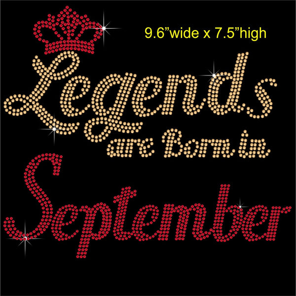Legends are Born in September Hotfix Rhinestone Transfer Diamante Motif, Iron on Applique
