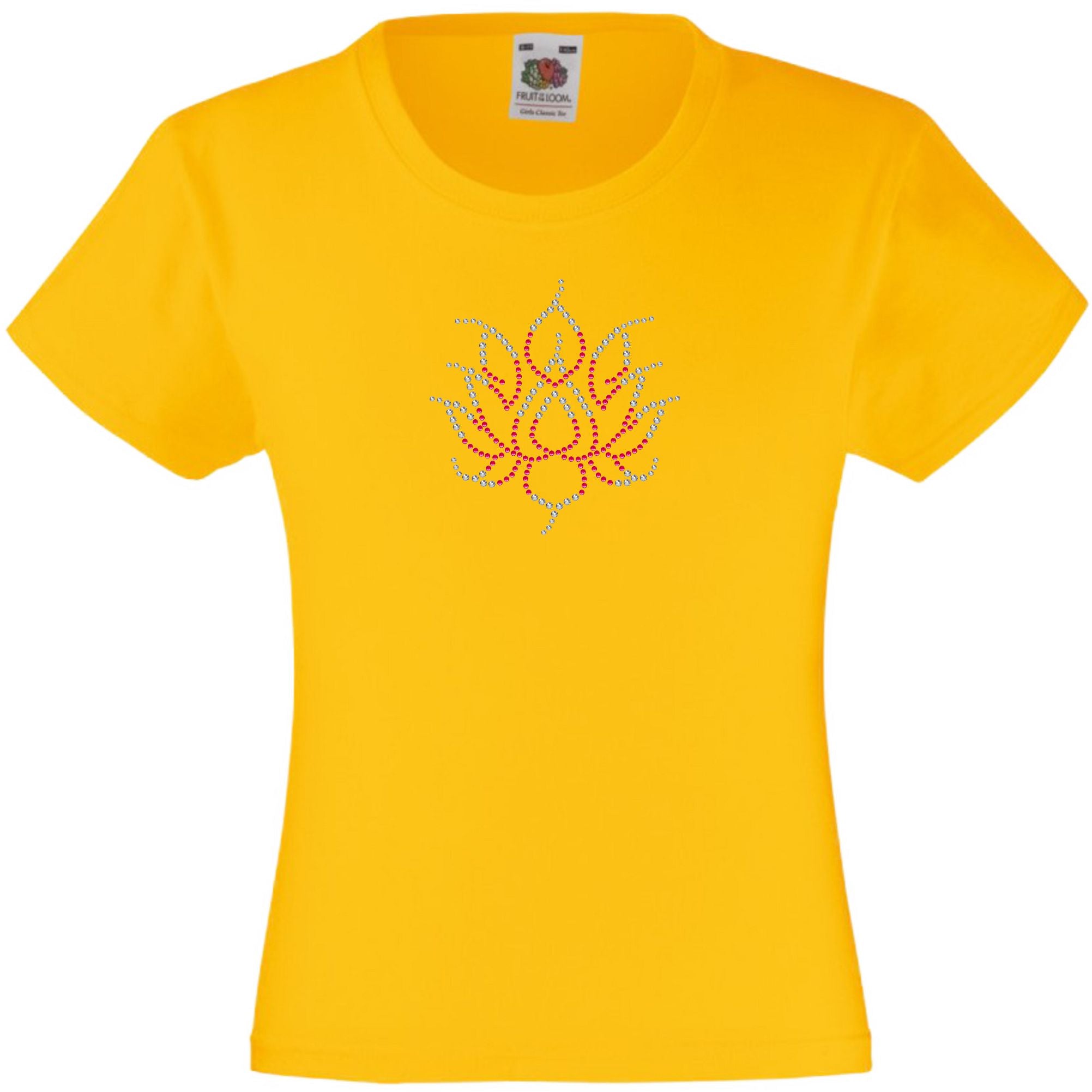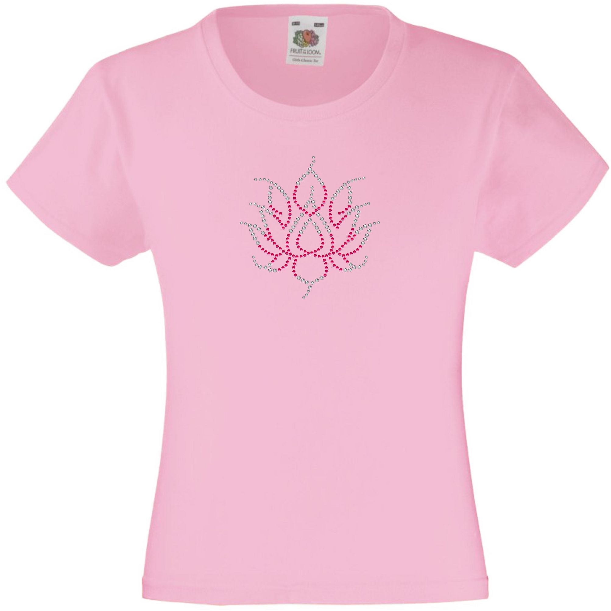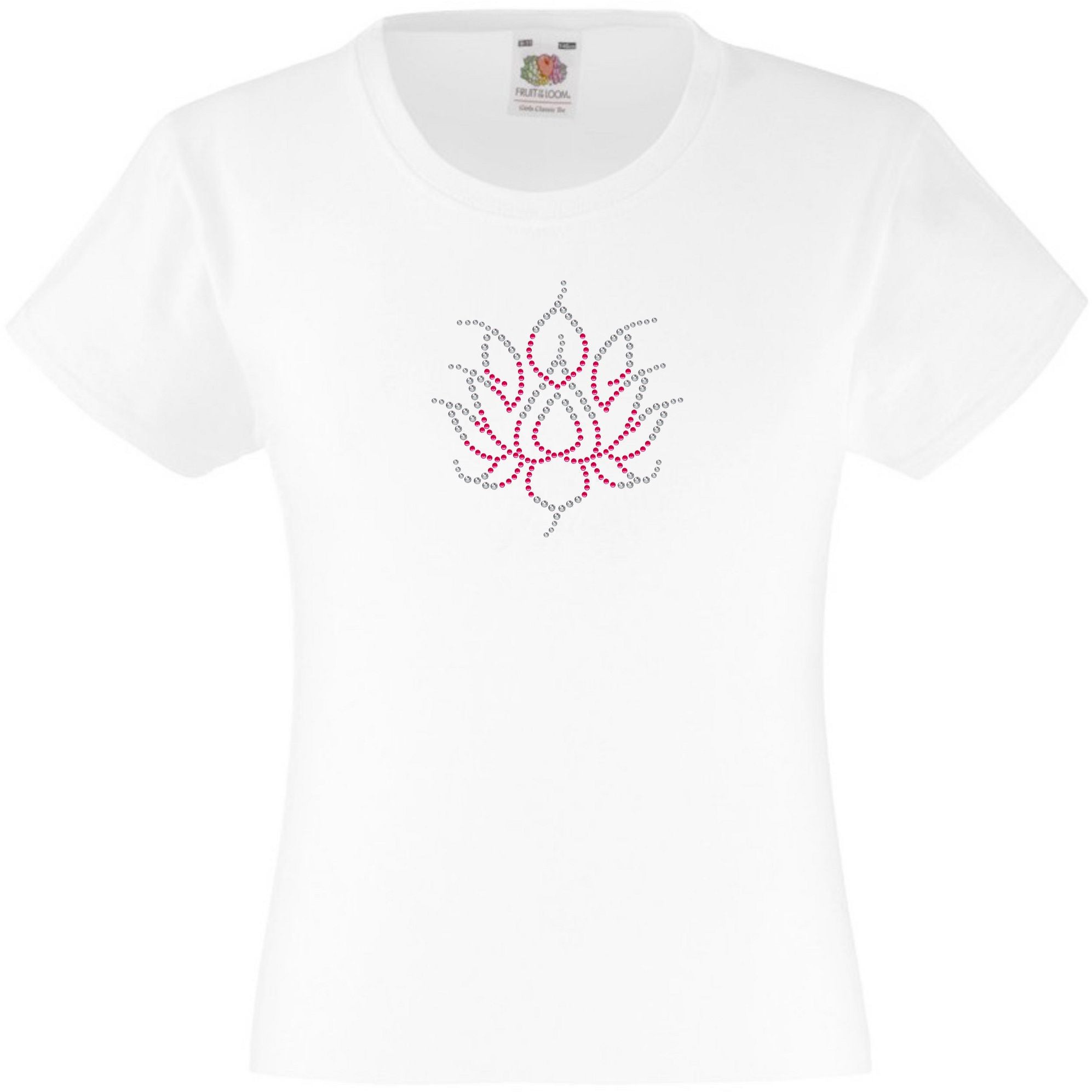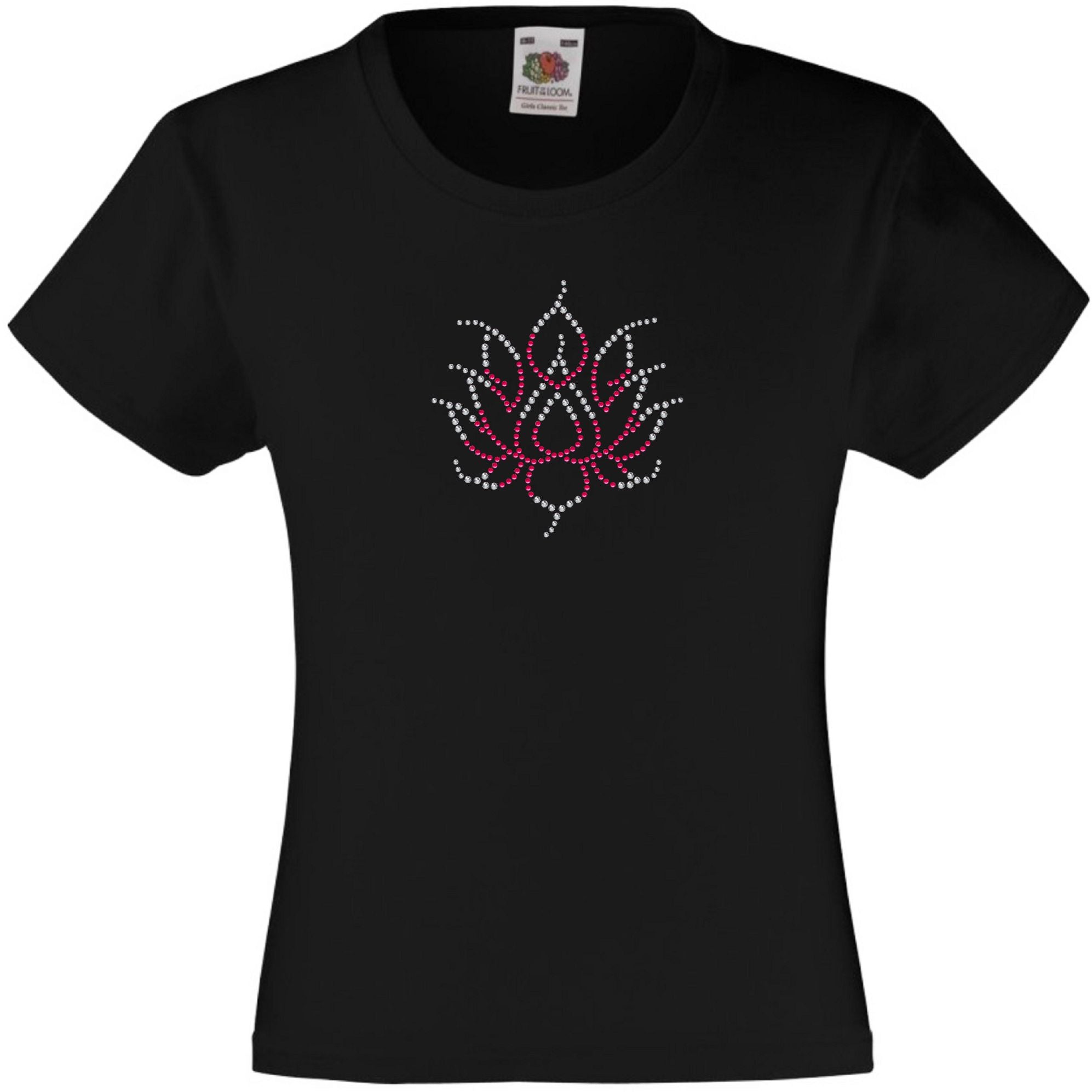 LOTUS FLOWER RHINESTONE EMBELLISHED T-SHIRT ELEGANT GIFT FOR GIRLS