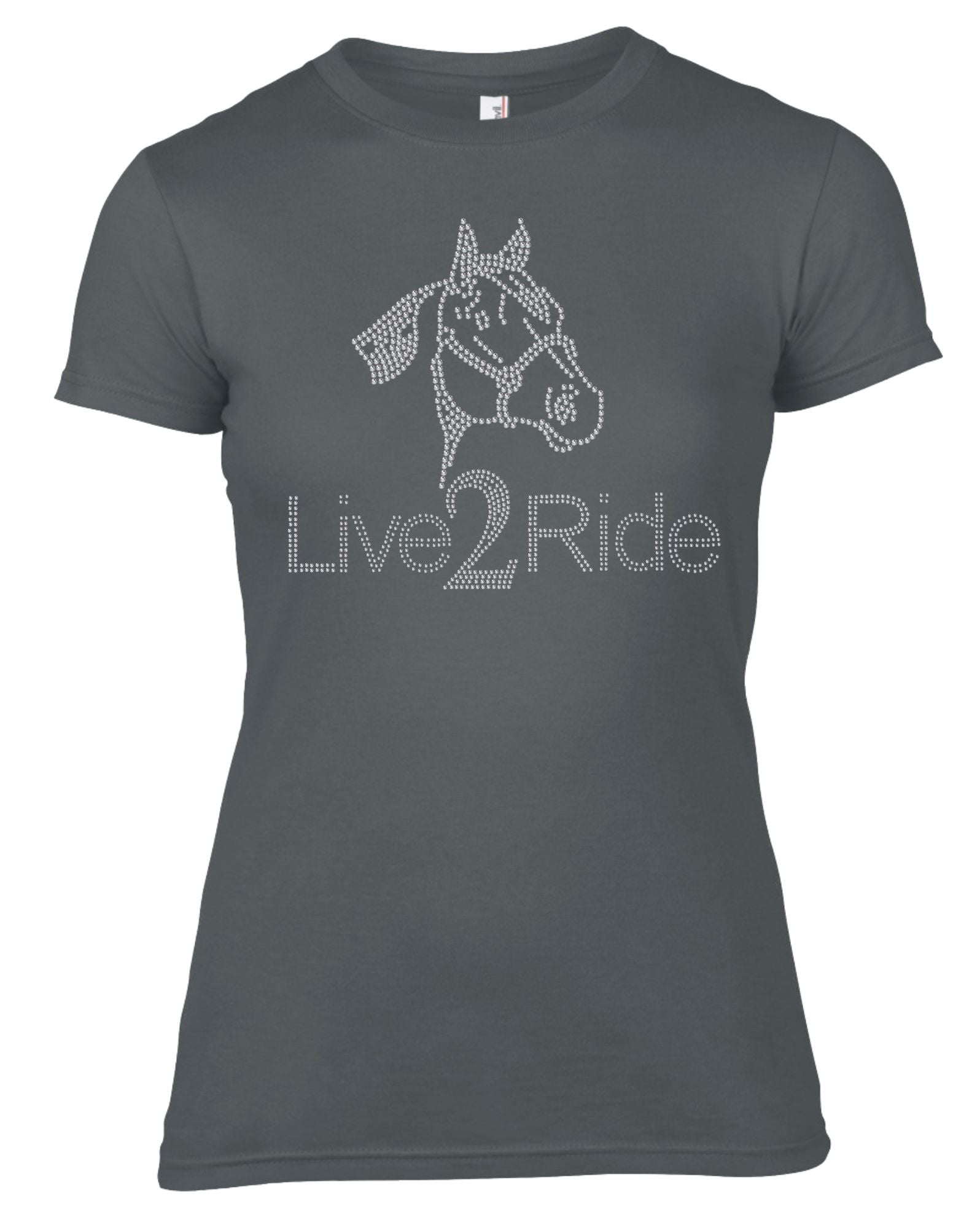LOVE 2 RIDE HORSE RHINESTONE EMBELLISHED T-SHIRT FOR LADIES