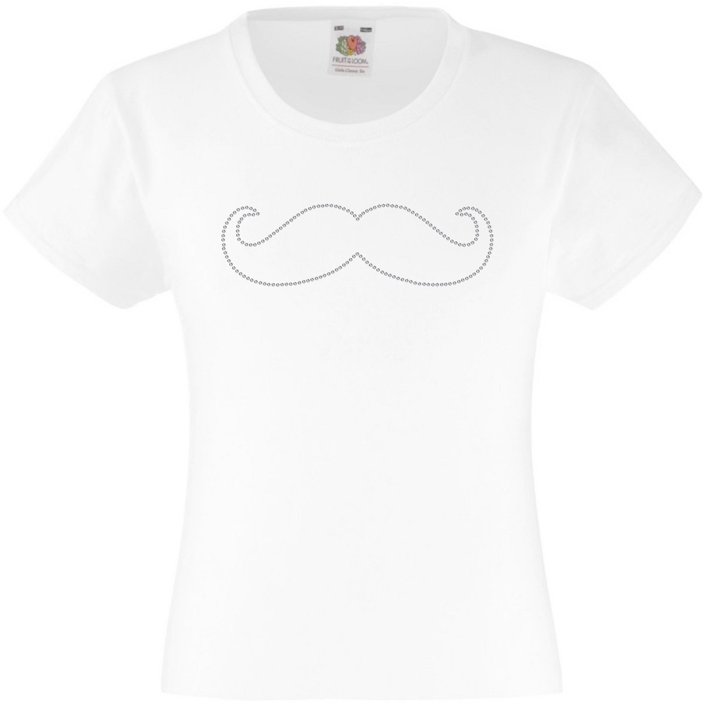 MOUSTACHE RHINESTONE EMBELLISHED T-SHIRT ELEGANT GIFT FOR GIRLS