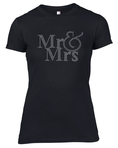 MR & MRS RHINESTONE EMBELLISHED HEN DO PARTY T SHIRT FOR LADIES