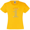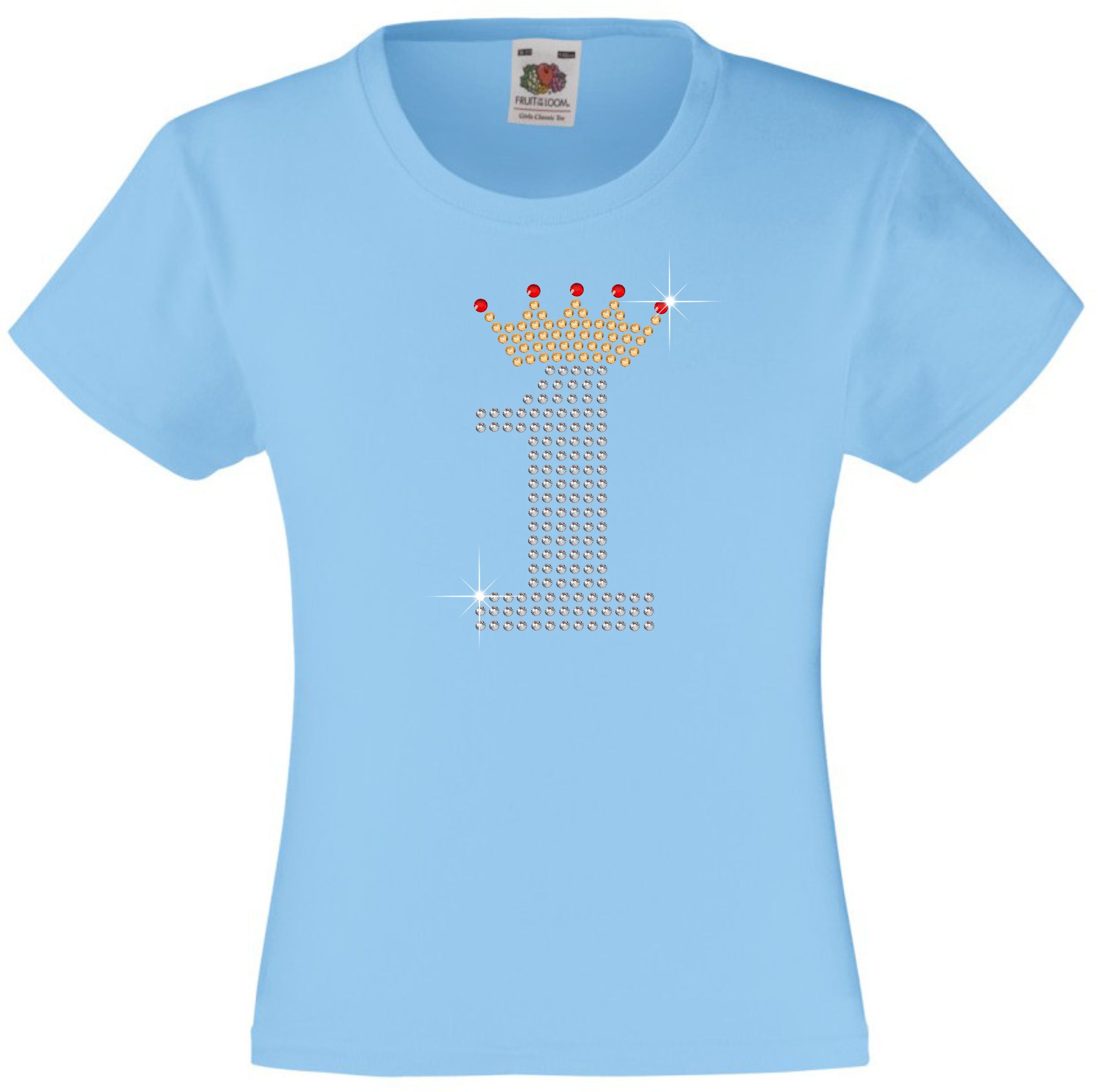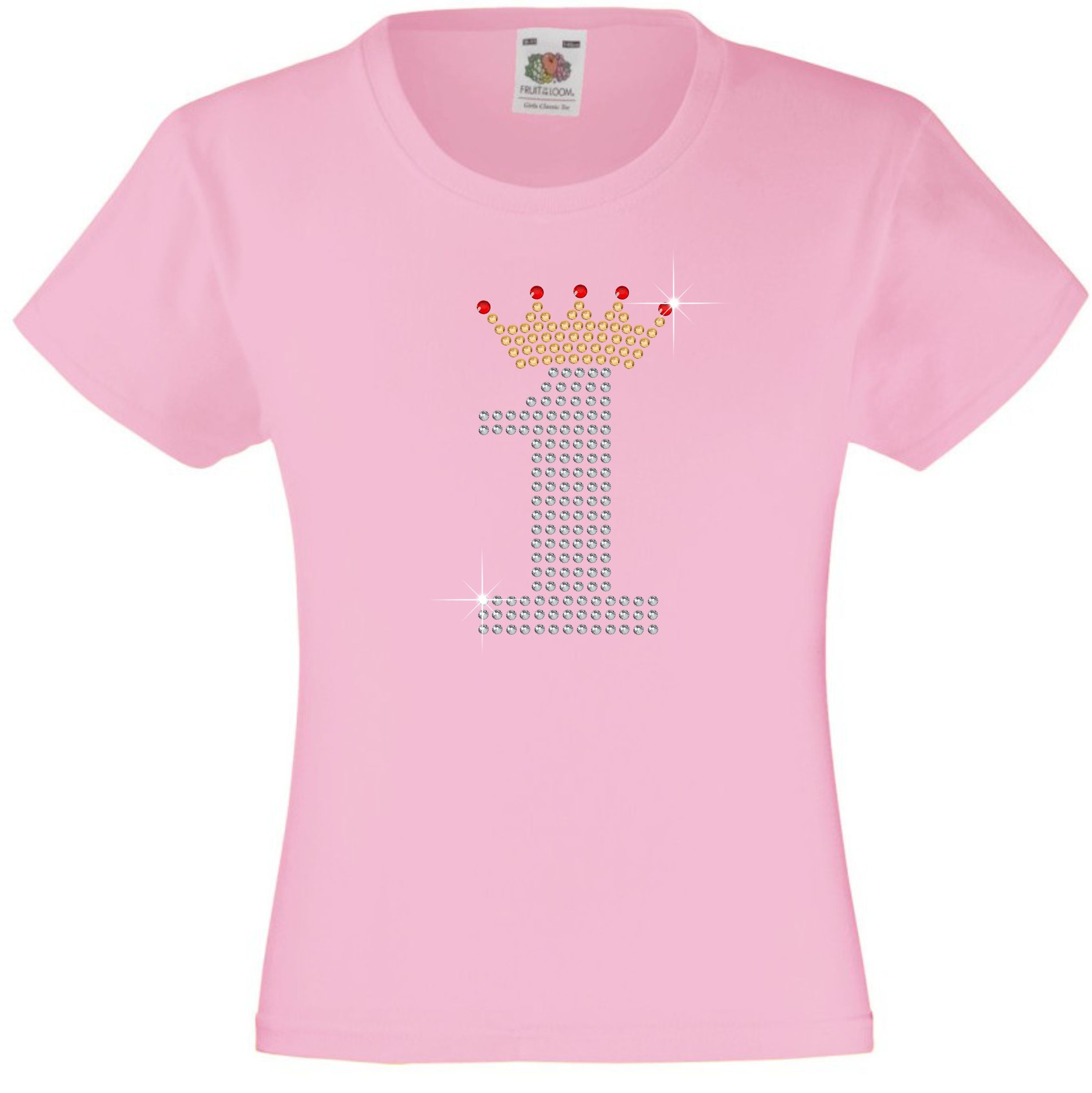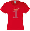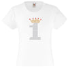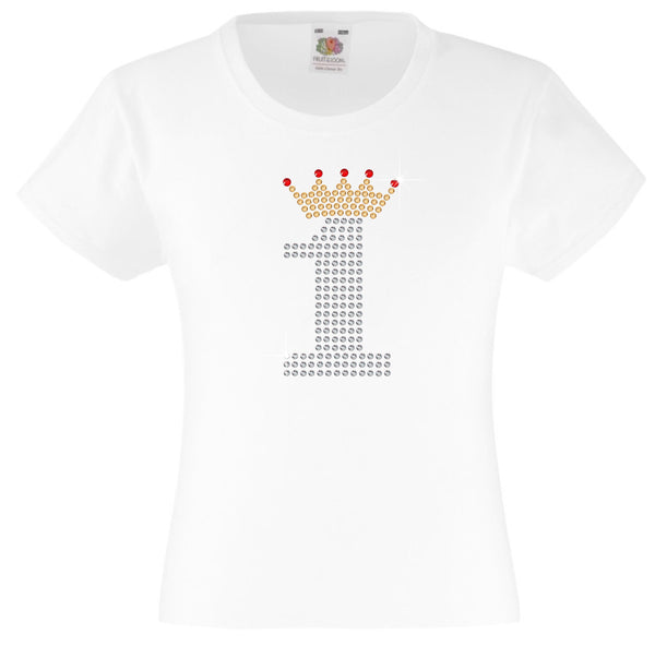 NUMBER 1 IN CRYSTAL COLOUR WITH TIARA GIRLS T SHIRT, RHINESTONE EMBELLISHED BIRTHDAY T SHIRT, ELEGANT GIFT FOR THEIR BIG DAY