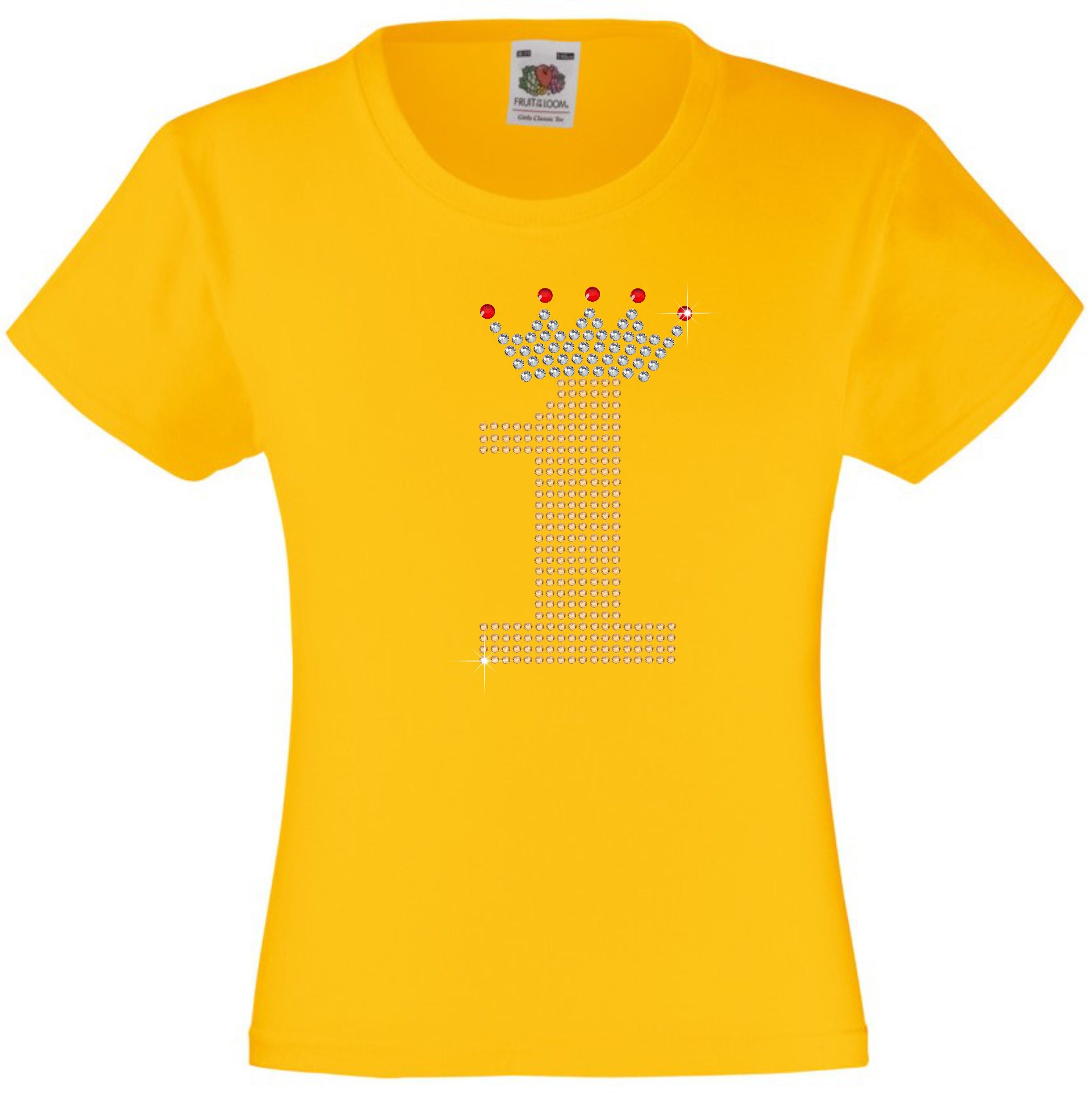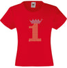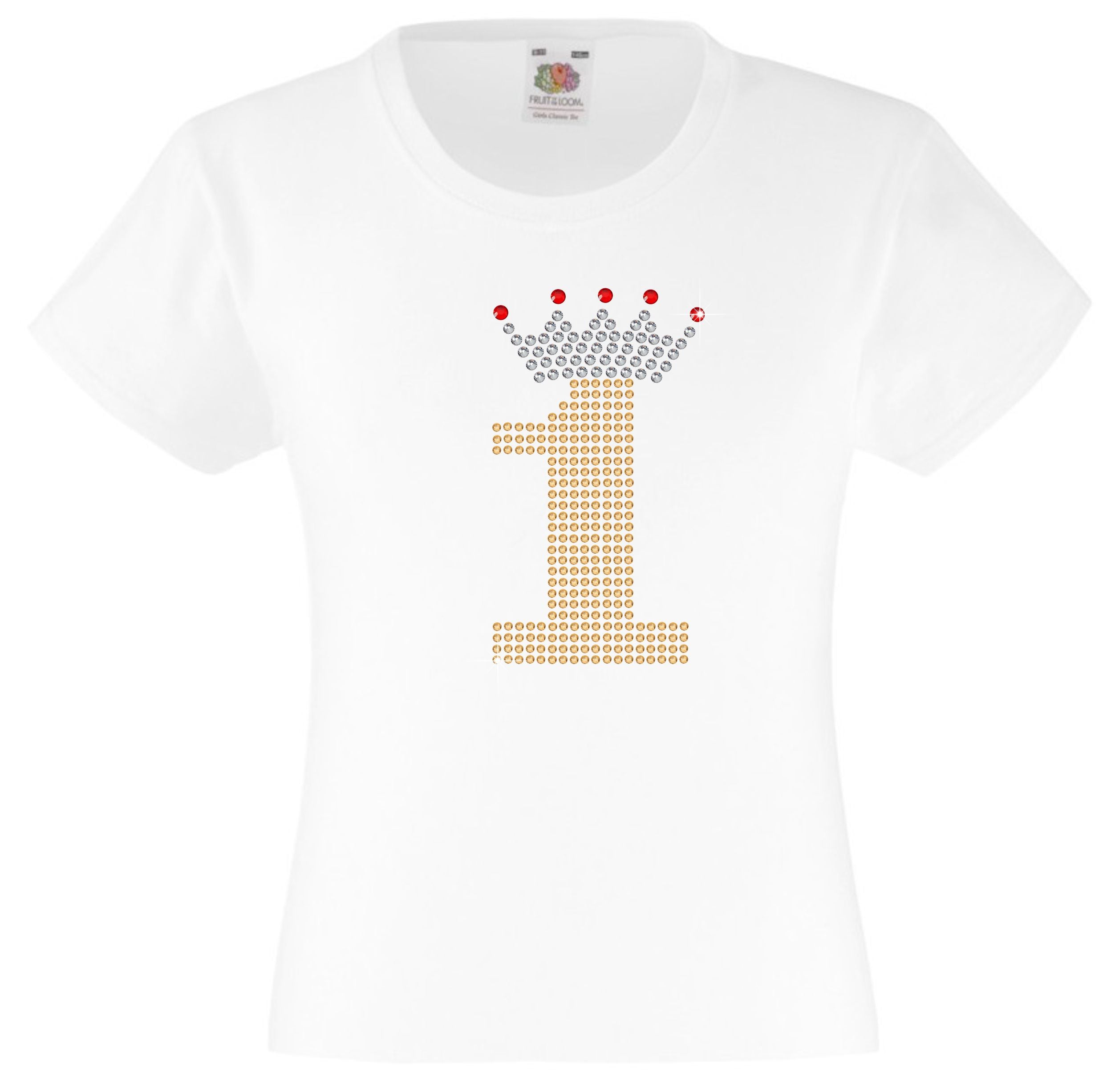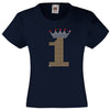NUMBER 1 IN GOLD COLOUR WITH TIARA GIRLS T SHIRT, RHINESTONE EMBELLISHED BIRTHDAY T SHIRT, ELEGANT GIFT FOR THEIR BIG DAY