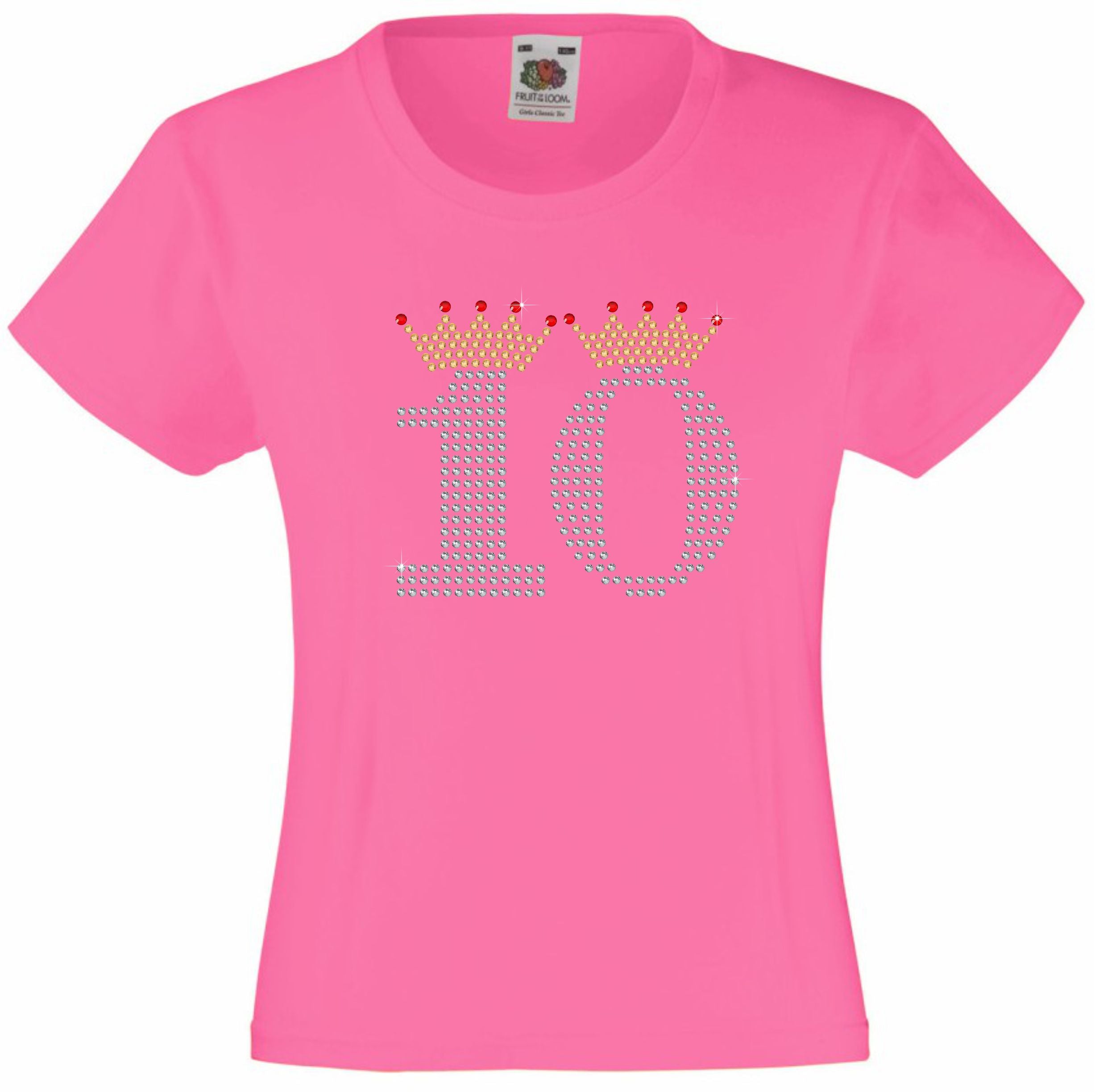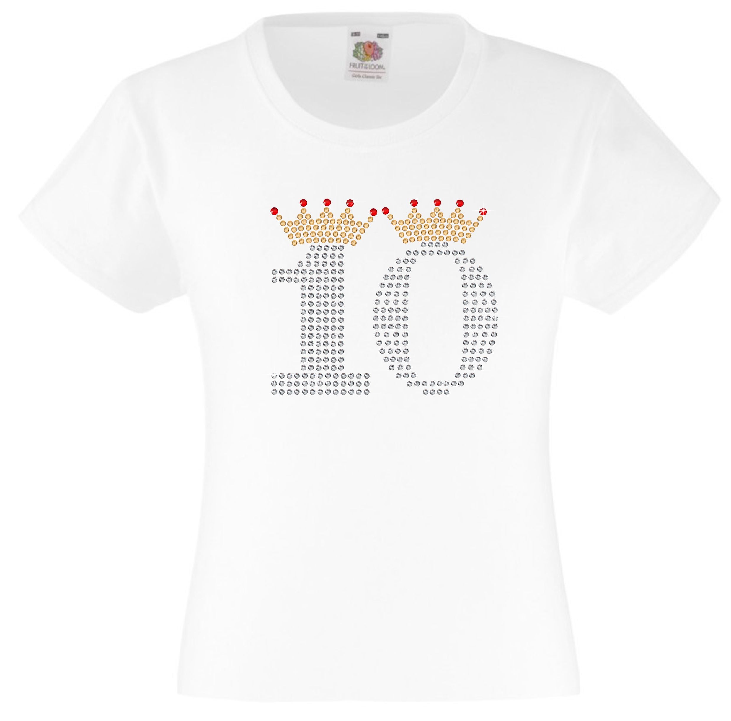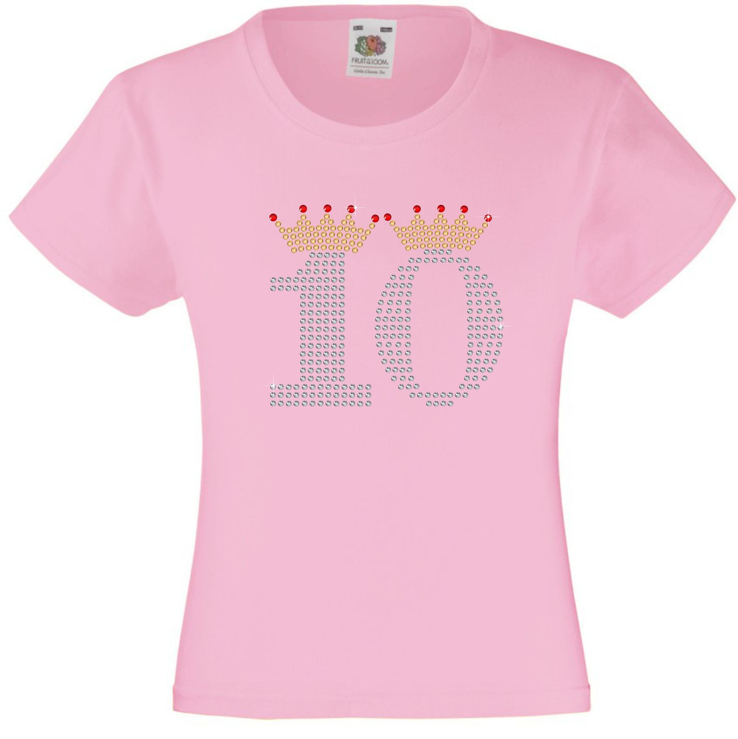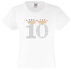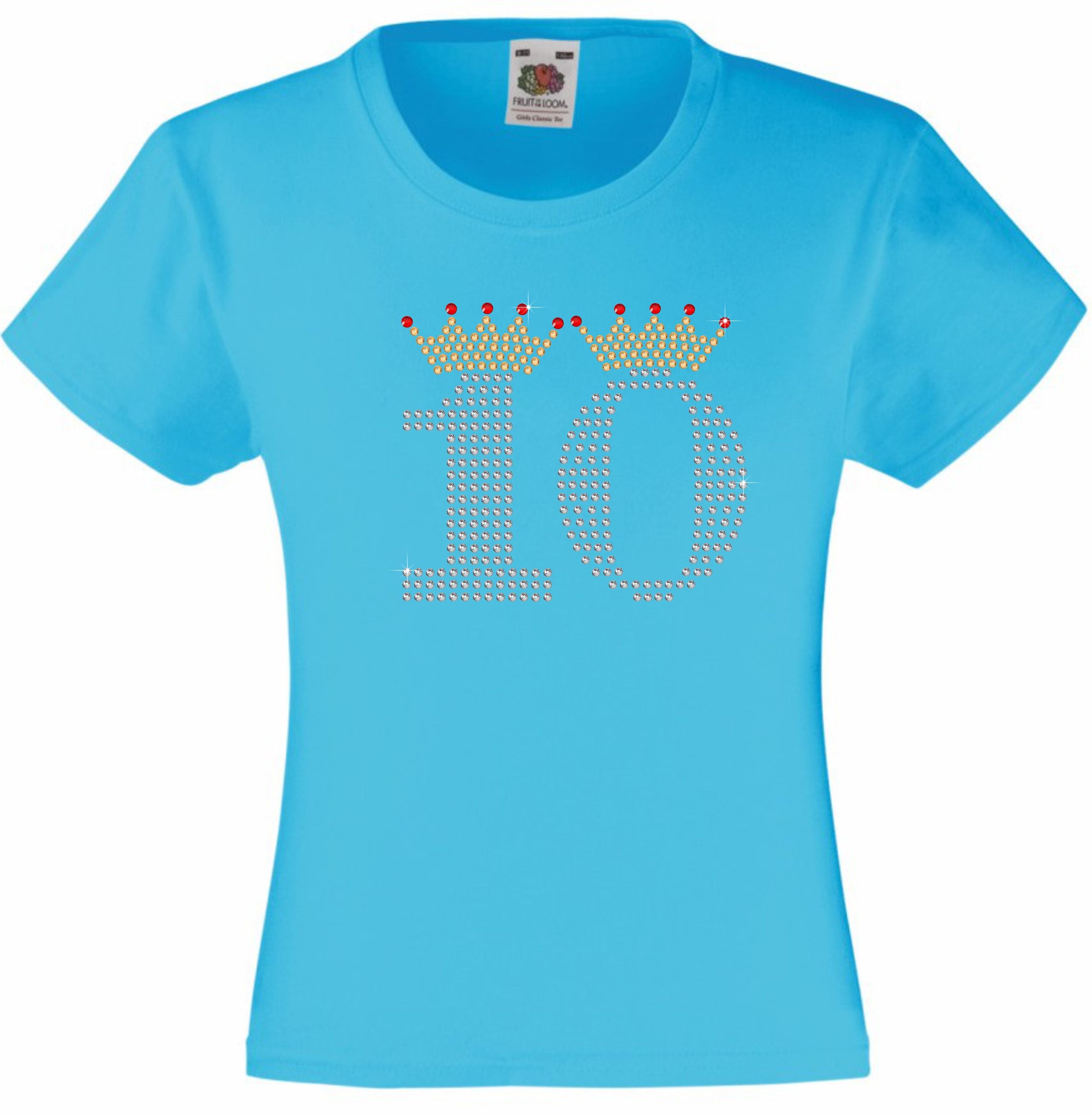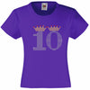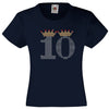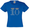 NUMBER 10 IN CRYSTAL COLOUR WITH TIARA GIRLS T SHIRT, RHINESTONE EMBELLISHED BIRTHDAY T SHIRT, ELEGANT GIFT FOR THEIR BIG DAY